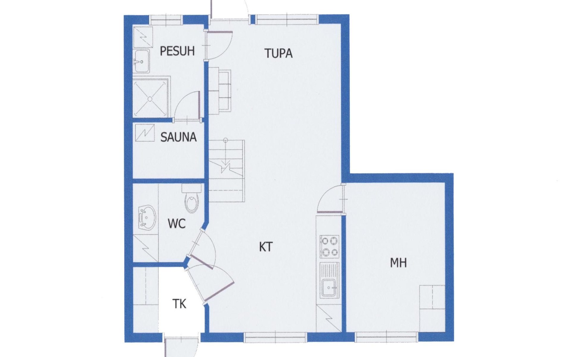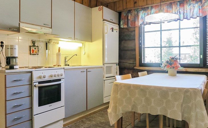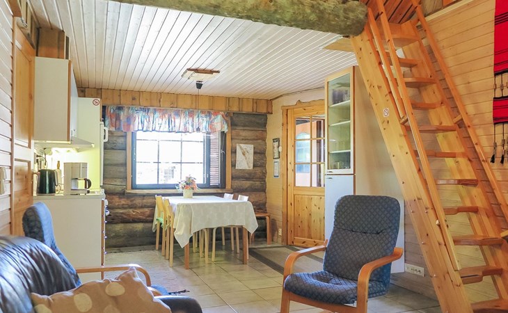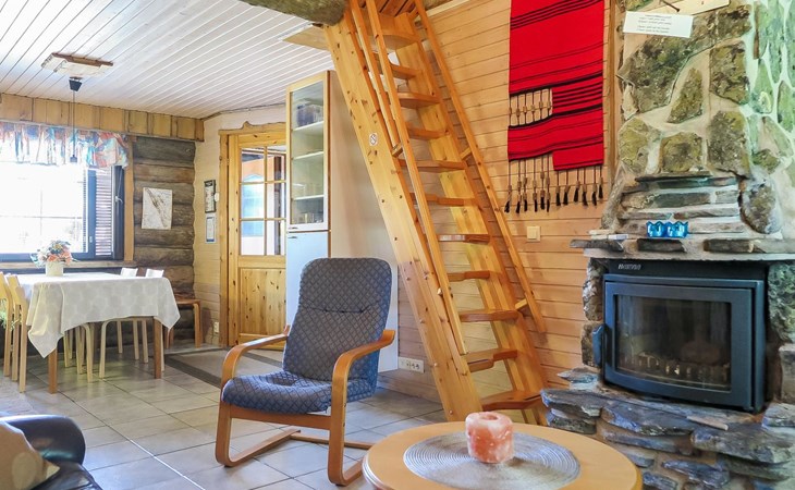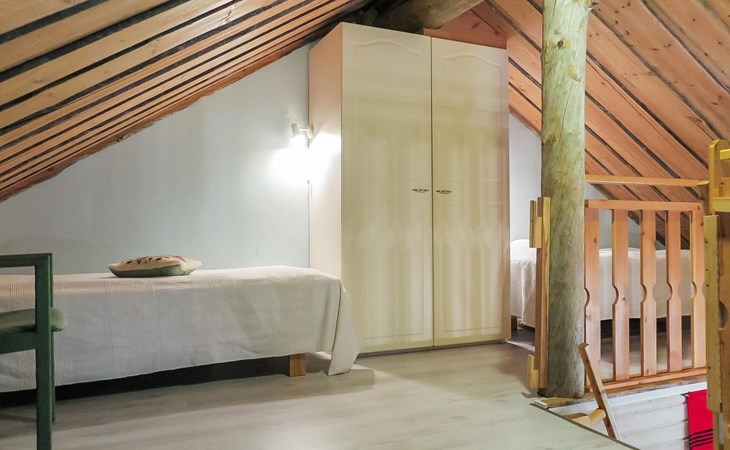 Silverlog apartment, built in 2002. Kitchen-living room, bedroom with 2 beds, upstairs bedroom with 2 beds, loft with two beds, steep staircase to loft. Sauna (electric stove), bathroom and toilet. Small covered terrace. Ski maintenance room and grill hut in shared use. Apartment Kantapää D2 is located within walking distance from Luosto services, activities and restaurants 300-500 m away. Amethyst spa 300 m, amethyst mine 5 km. To the border of Pyhä-Luosto National Park 2.6 km.