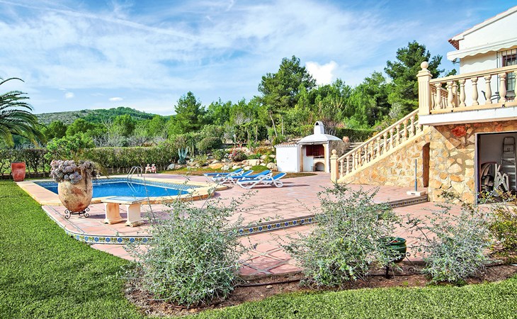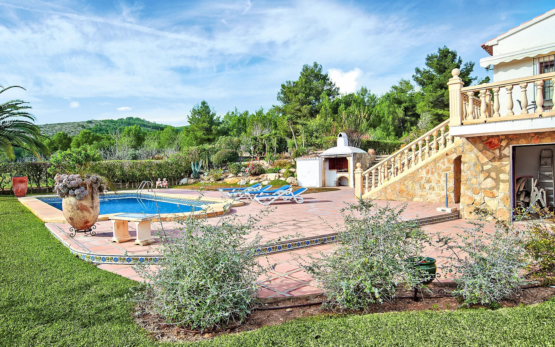 Mooi, comfortabele villa "Tarraula". In de wijk Tarraula, rustige, zonnige ligging, 8 km van zee, aan een doodlopende weg. Voor alleengebruik: tuin 2.000 m2 (omheind) met gazon en bomen, openluchtzwembad geen inkijk (5 x 10 m, seizoensgebonden beschikbaarheid: 01.Jan. - 31.Dec.) met trap. In het huis: centrale verwarming. Levensmiddelenwinkel 3 km, supermarkt 3 km, restaurant 1 km, bushalte "Mas y Mas carretera del Pla" 6.7 km, zandstrand "Arenal" 8 km. Golfterrein (9 holes) 1.5 km. Groepen jongeren uitsluitend op aanvraag.