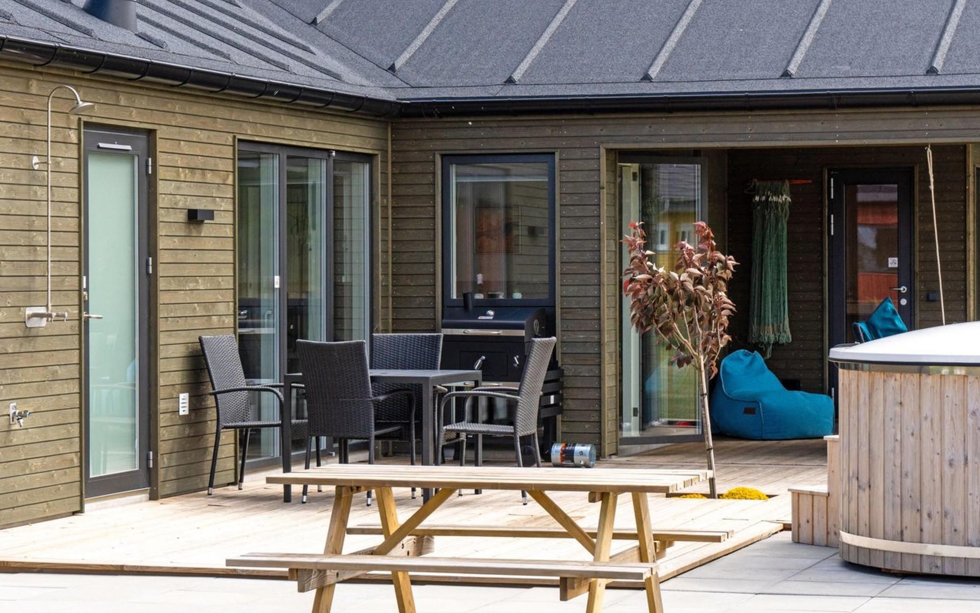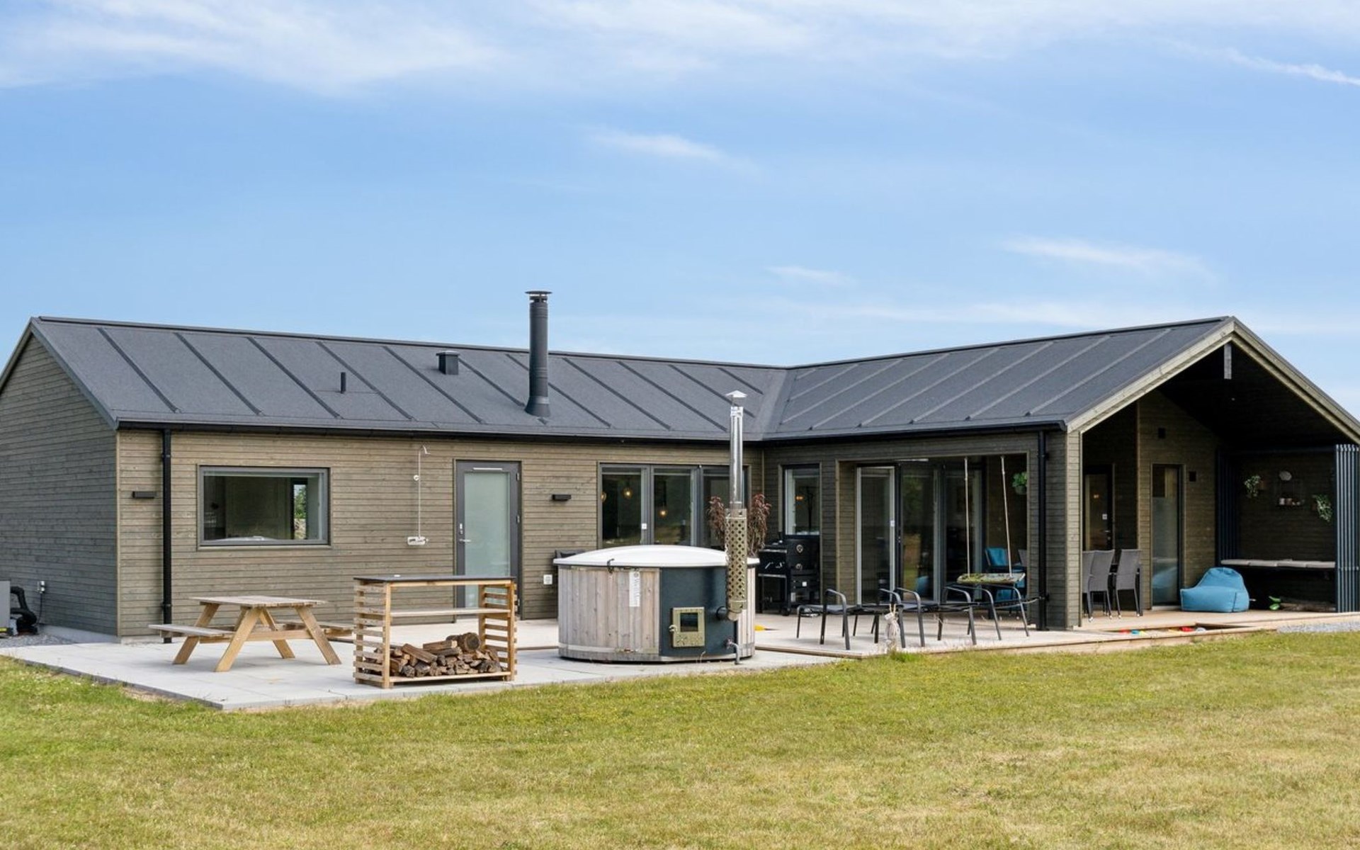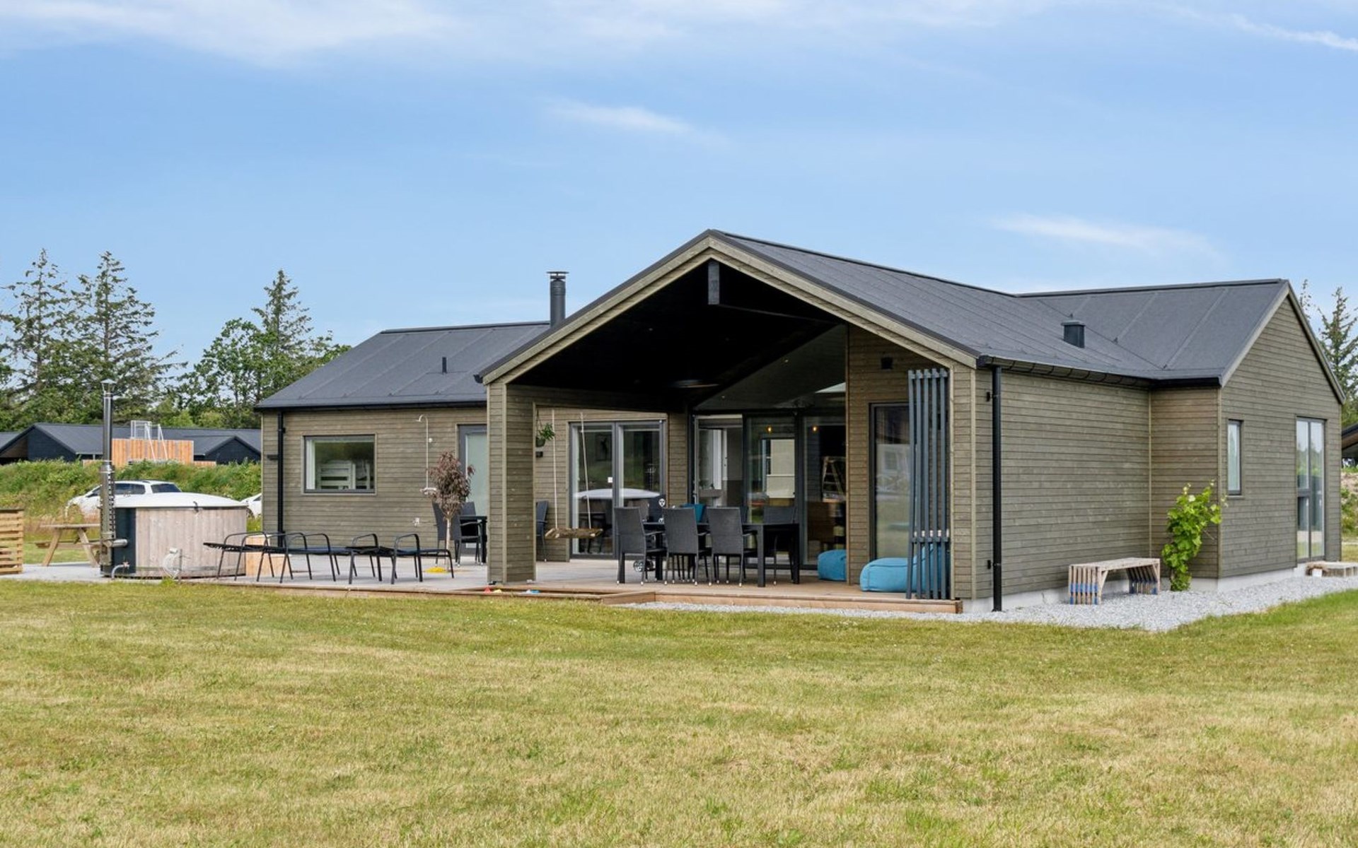 Eengezinswoning, bouwjaar 2023. 475 m van zee. Voor alleengebruik: wild terrein 1.833 m2. Buitendouche, barbecue. In het huis: wasmachine, droger. Oplaadstation. Levensmiddelenwinkel 1.7 km. Golfterrein 5 km. De eigenaar accepteert geen jeugdgroepen.