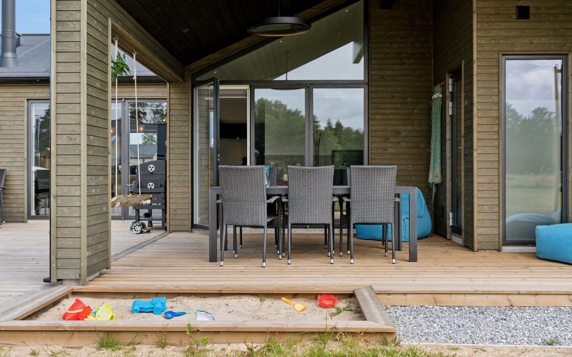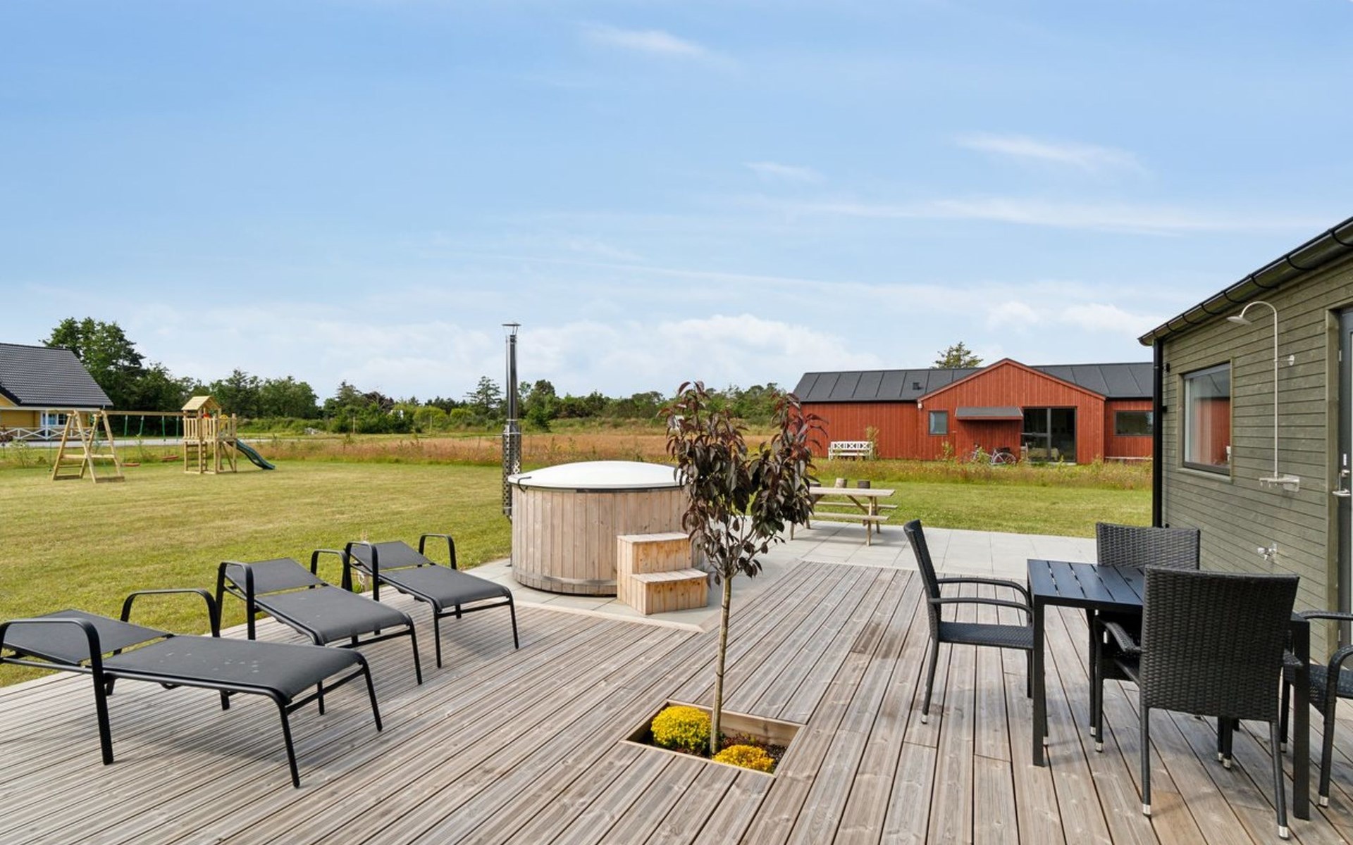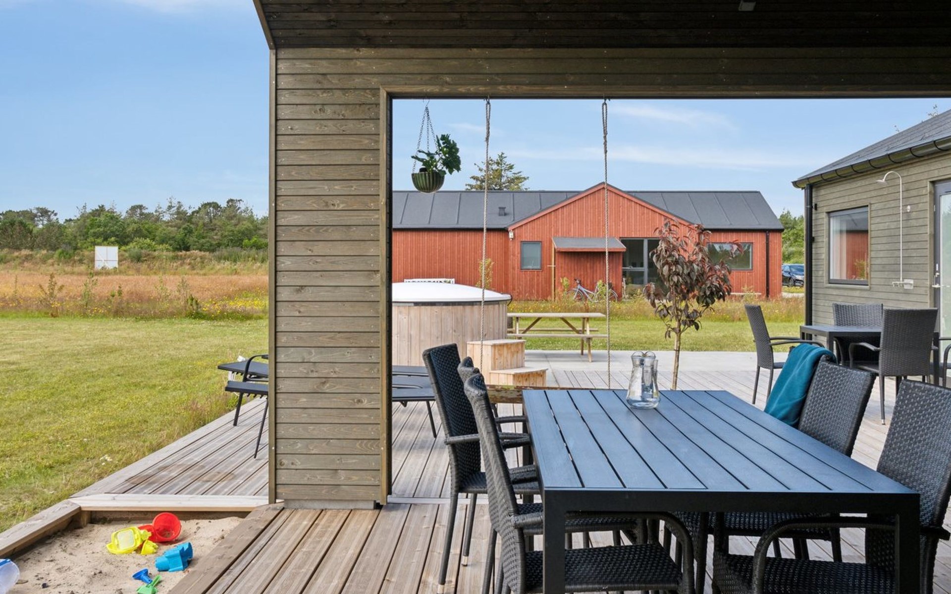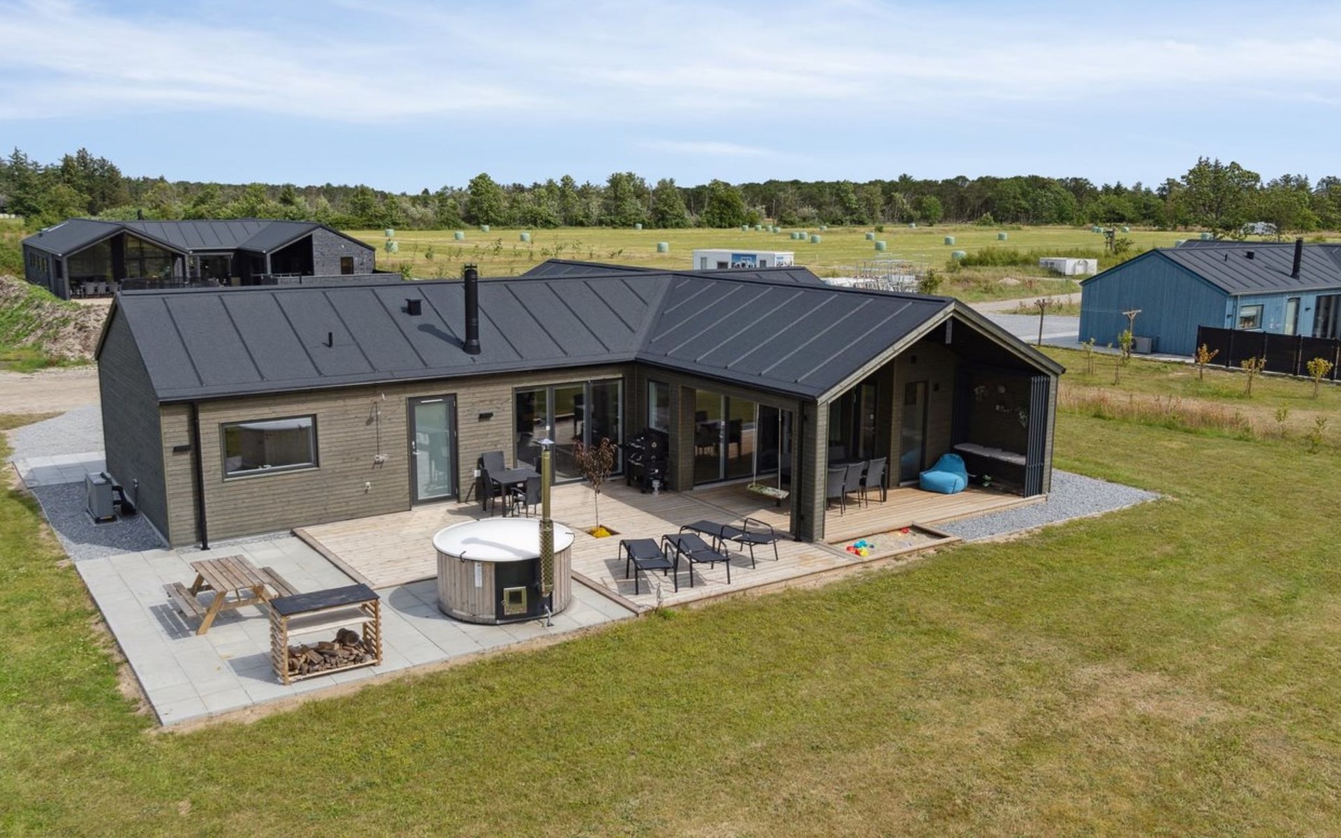 Eengezinswoning, bouwjaar 2023. 475 m van zee. Voor alleengebruik: wild terrein 1.833 m2. Buitendouche, barbecue. In het huis: wasmachine, droger. Oplaadstation. Levensmiddelenwinkel 1.7 km. Golfterrein 5 km. De eigenaar accepteert geen jeugdgroepen.