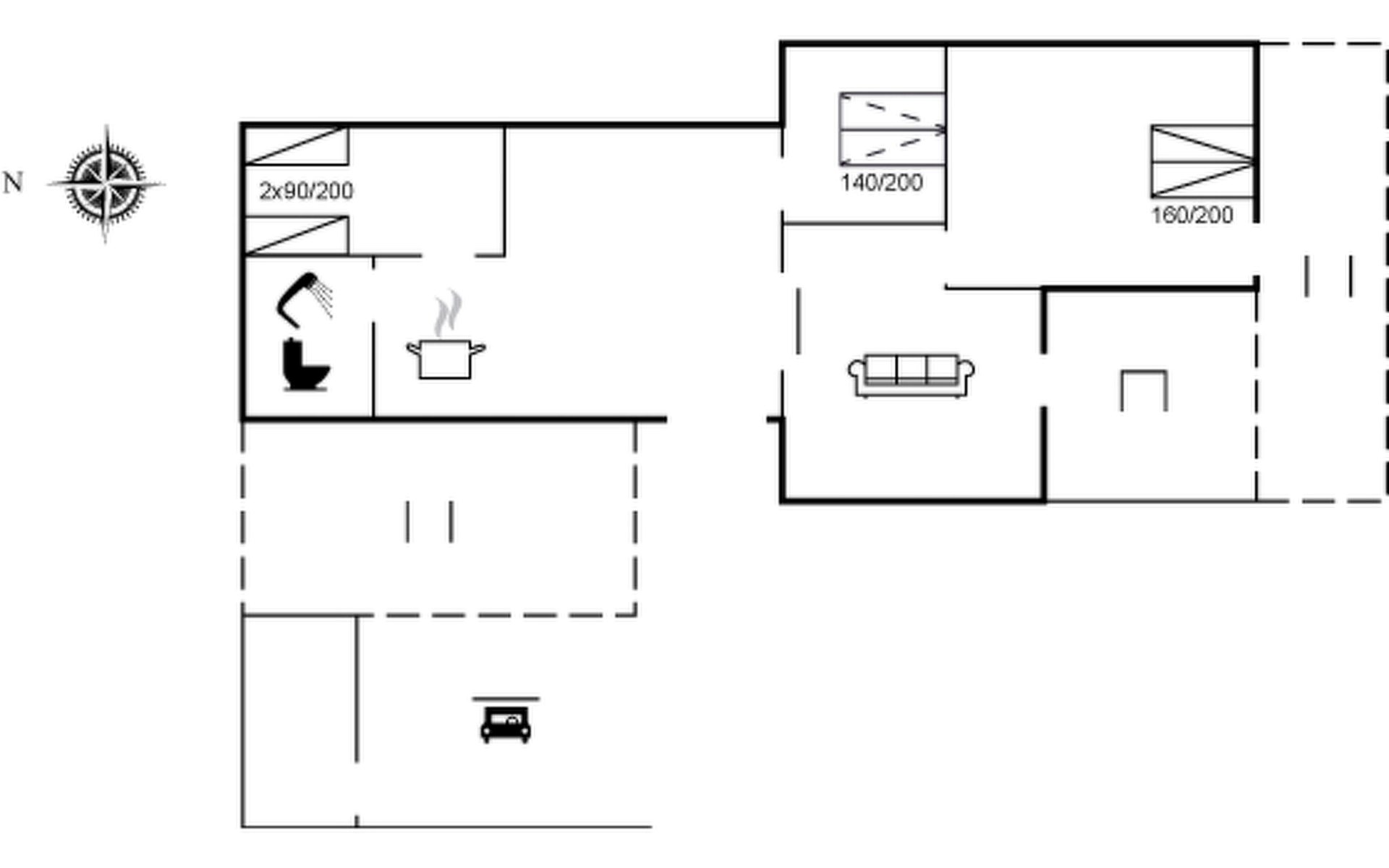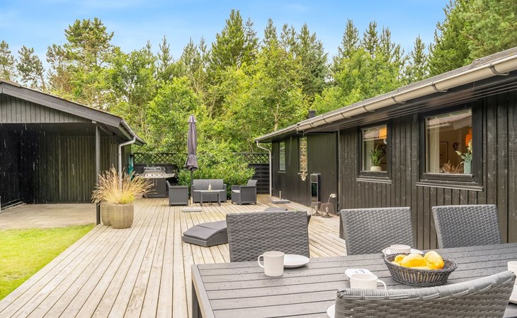 Eengezinswoning, bouwjaar 1984. 400 m van zee. Voor alleengebruik: wild terrein 3.384 m2. Barbecue, kinderspeelplaats (glijbaan, schommel). In het huis: wasmachine. Parkeerplaats bij het huis. Carport. Levensmiddelenwinkel 800 m. De eigenaar accepteert geen jeugdgroepen.