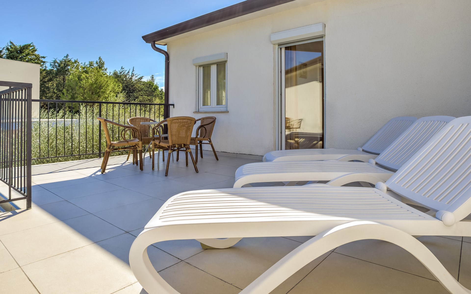 Appartementencomplex "File". In de wijk Zambratija, 3 km van het centrum van Umag, 300 m van zee, 300 m van het strand, aan een doodlopende weg. Voor medegebruik: terrein 1.000 m2 (omheind) met gazon 100 m2, planten, openluchtzwembad (7 x 4 m, 140 cm diepte, seizoensgebonden beschikbaarheid: 01.Mei. - 15.Sep.). Buitendouche, terras (50 m2), tuinmeubelen, barbecue. In het huis: Internet (WiFi). Parkeerplaats bij het huis. Winkel 500 m, restaurant 100 m, bushalte 5.1 km, kiezelstrand 600 m, stenenstrand, rotsstrand 300 m, strandbad 600 m. Sportcentrum 600 m, kinderspeelplaats 50 m. De eigenaar woont op hetzelfde terrein. Vergelijkbare accommodaties kunnen worden geboekt. WIFI limited speed. Strand met zandbodem, vlak aflopend 600 m. Station van de mini-spoorbaan naar Umag 600 m.