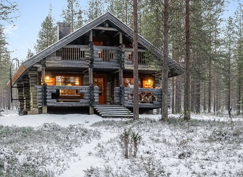 Log cottage, built in 2006. Living room-kitchen with wooden sofa bed, bedroom with double bed, second bedroom with 2 single beds, loft with 2 mattresses (loft is low and stairs steep), sauna with wood stove, shower in the steam room, separate toilet and large covered terrace on the river side.