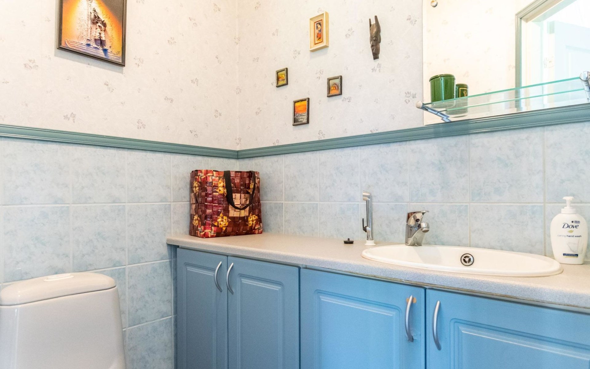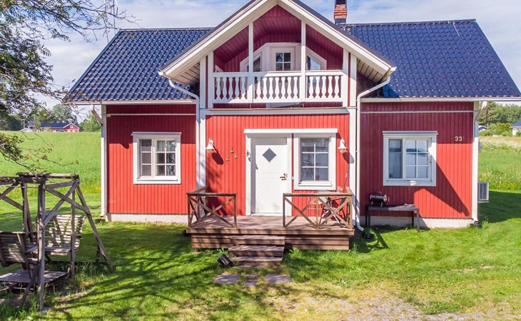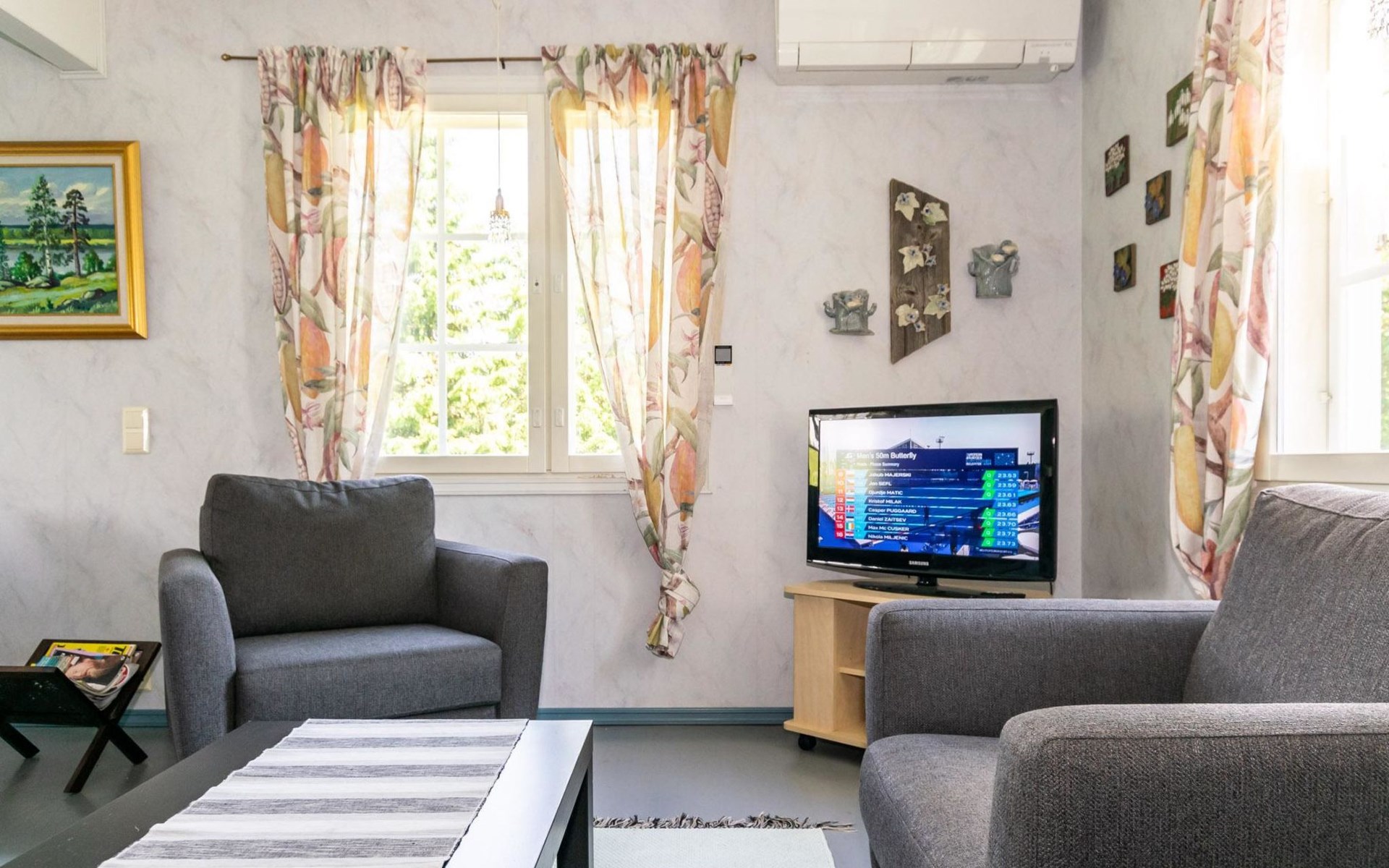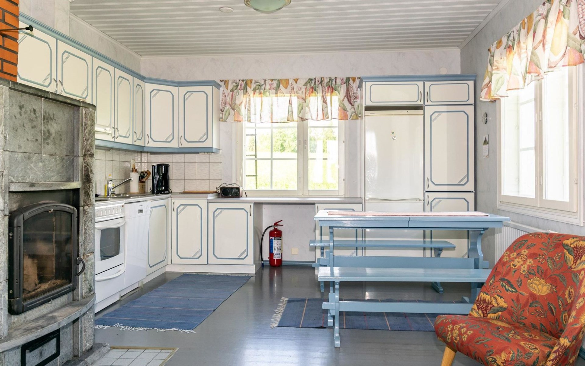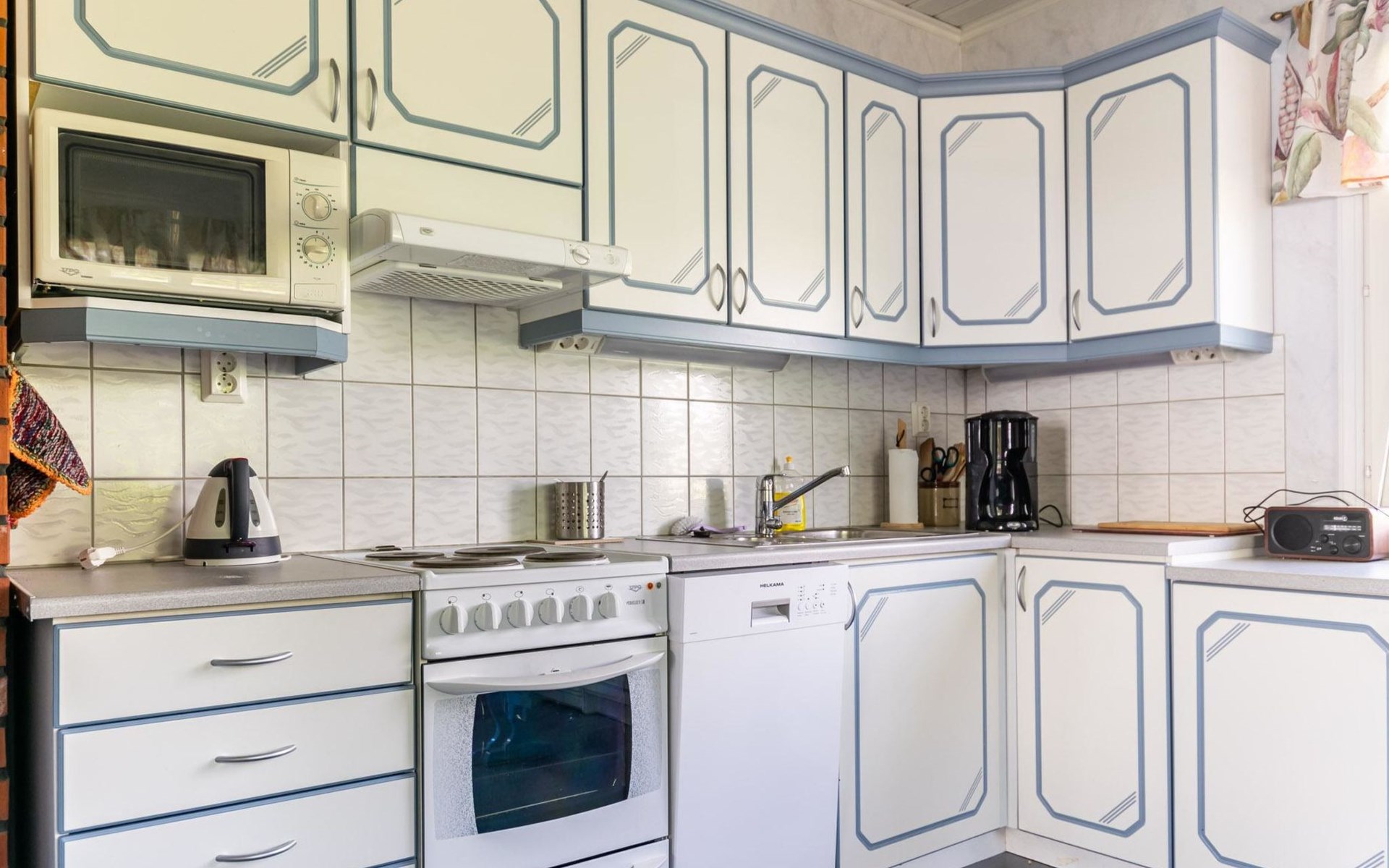 The wooden cabin (2000) features a living room, kitchen, entrance hall, and two bedrooms, each with a double bed. The living room has a sofa bed that converts into a double bed (140 x 200 cm). There is a separate WC, bathroom, and sauna (electric stove). In the yard, there is also a lakeside sauna with a wood-burning stove. The lakesauna is only available from May to September, is not available during the winter. The water for the beach sauna is supplied from a water hose located on the wall of the cottage, which receives cold water from the municipal network.
