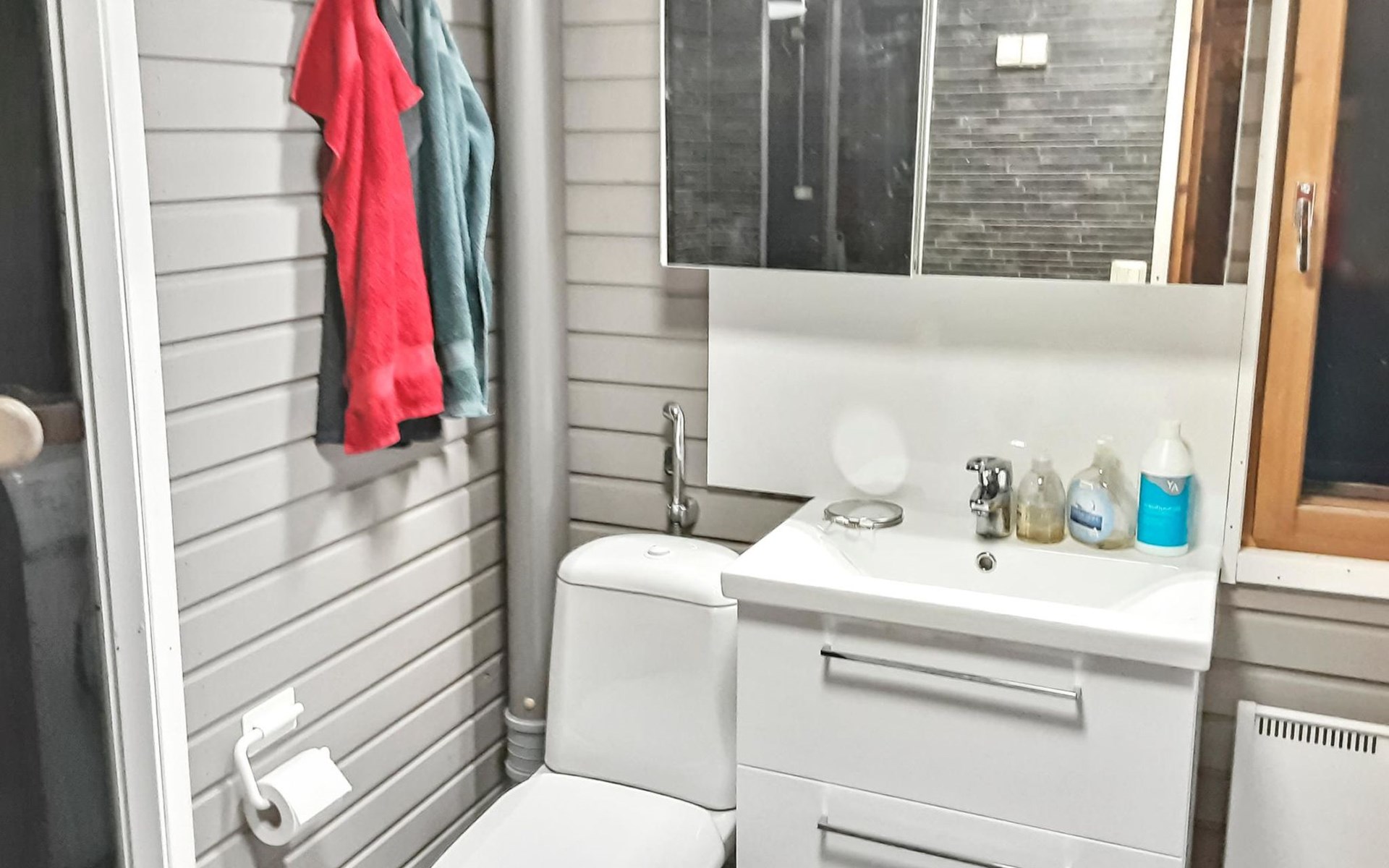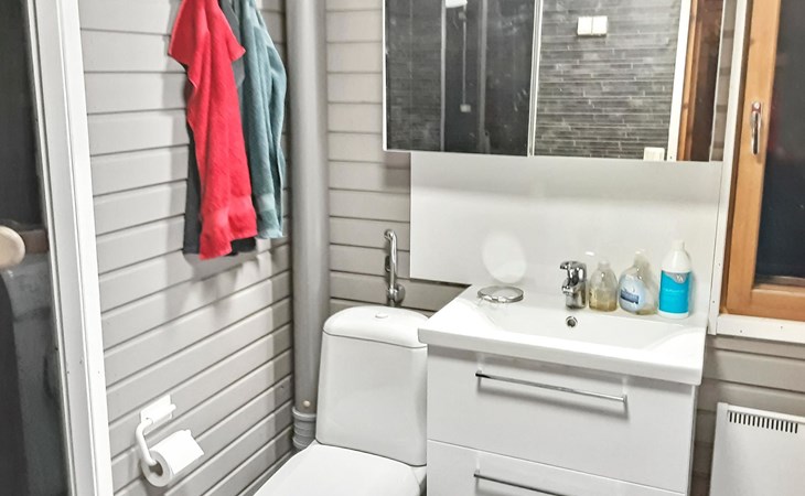 Wooden cottage, built in 1999. Kitchen-living room, dining area, bedroom with a double bed, upstairs bedroom with 2 beds (entrance to the balcony is from the bedroom), upstairs lobby with two sofa beds, sauna, washroom/toilet (the washroom was renovated in 11/2020). Two covered terraces (one is facing to the lake).