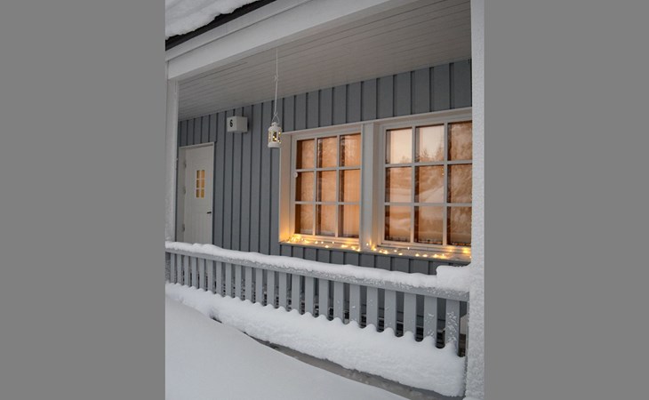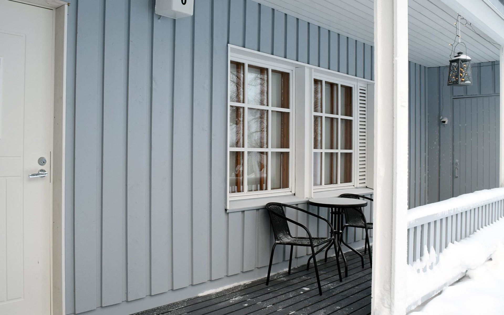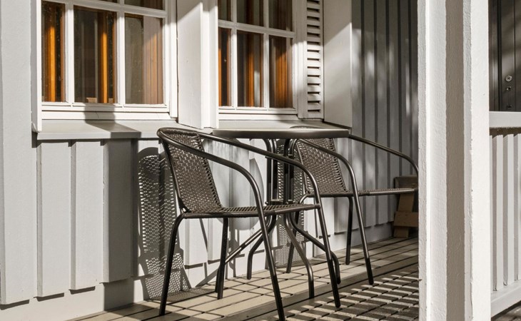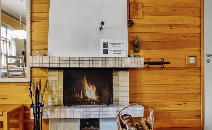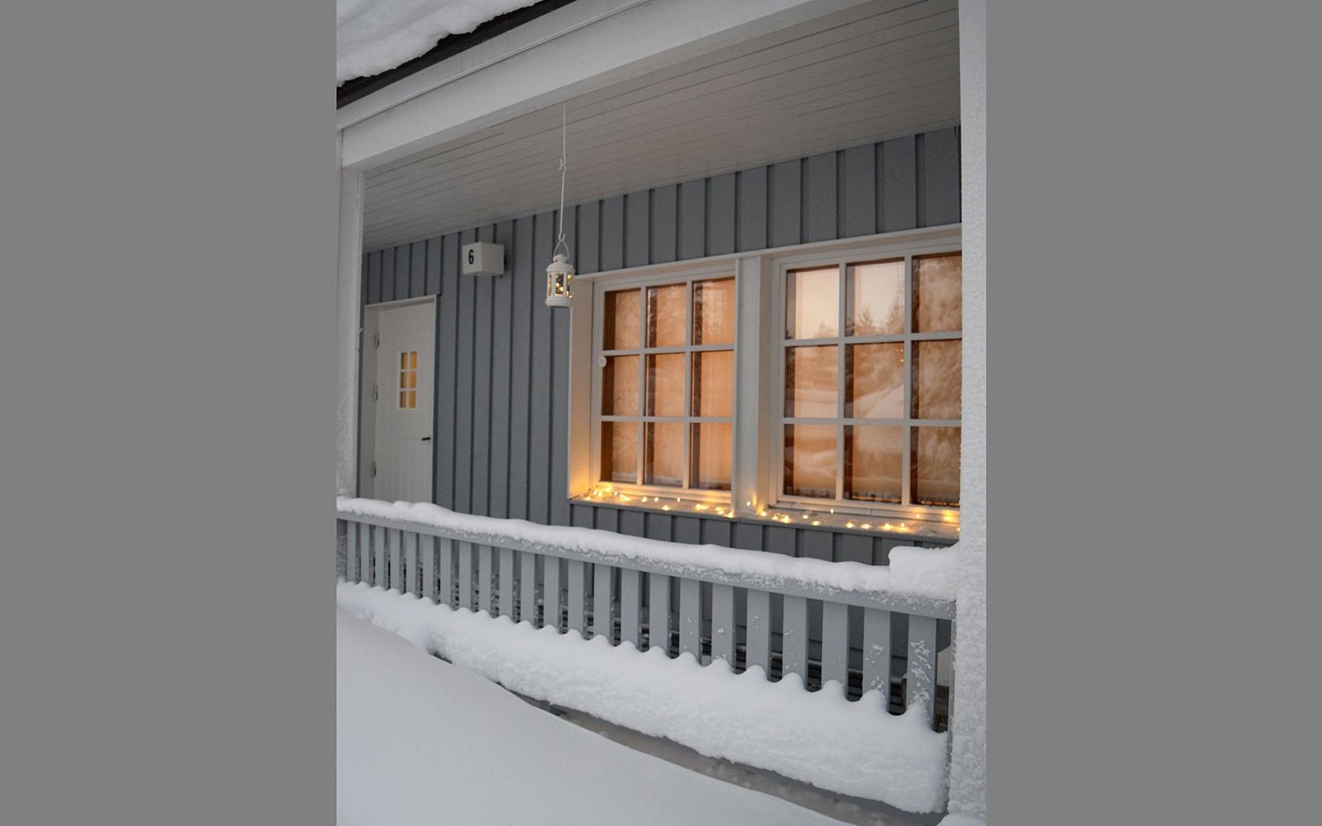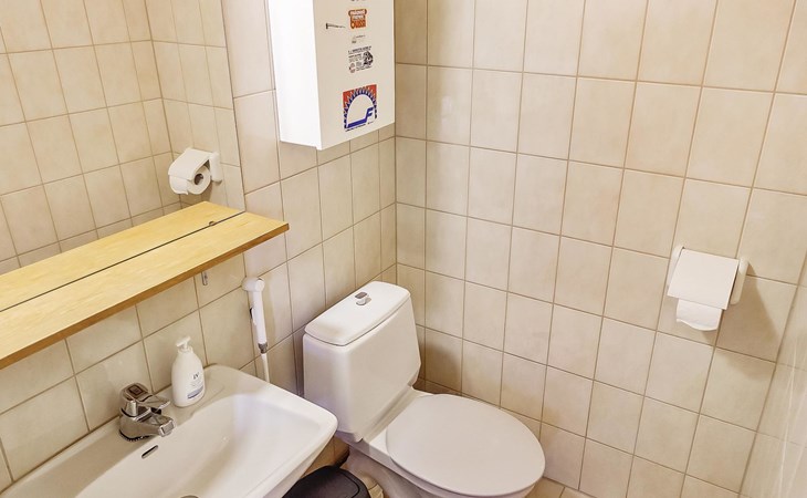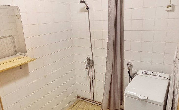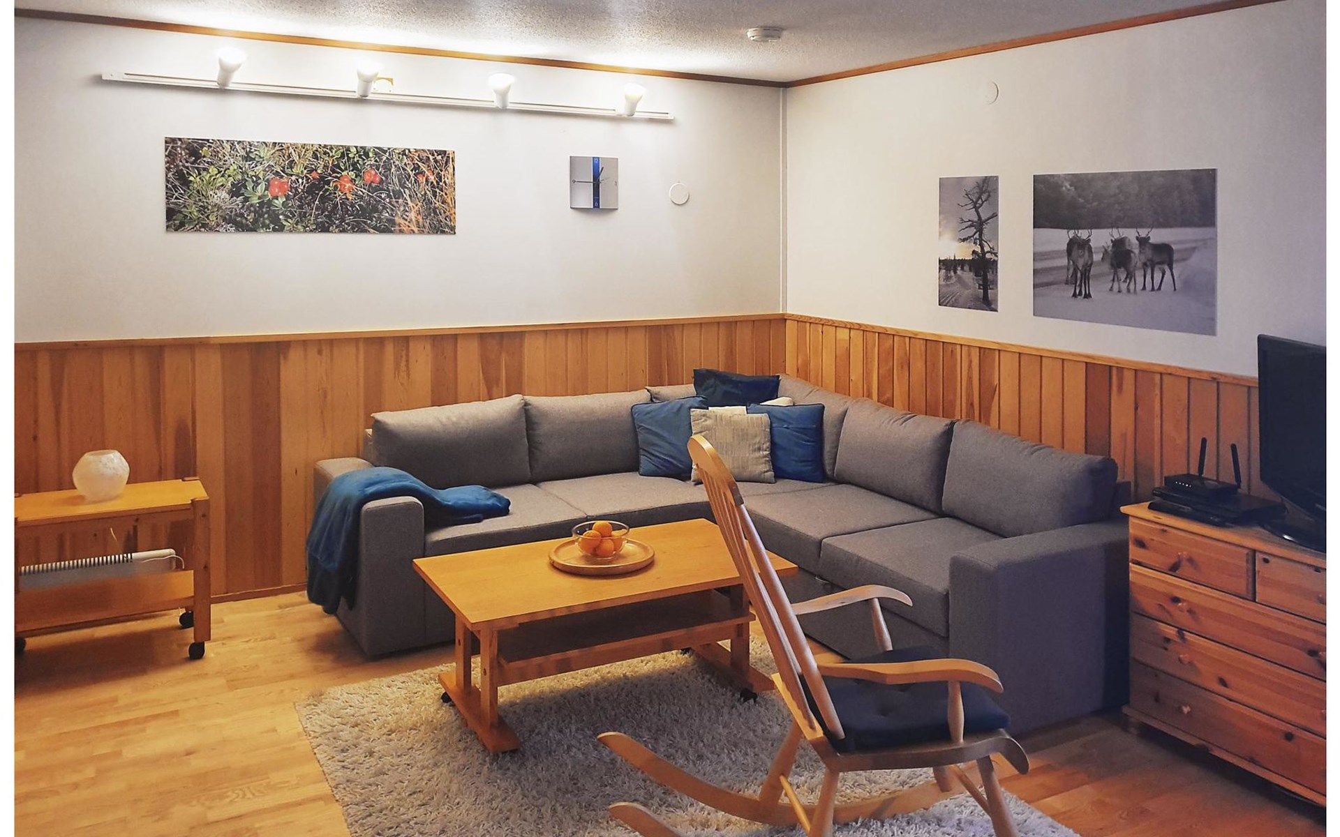 Living room with sofa bed, kitchenette, bedroom with 2 beds, another bedroom with bunk bed, sauna, washroom, separate WC and covered terrace.