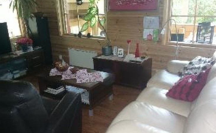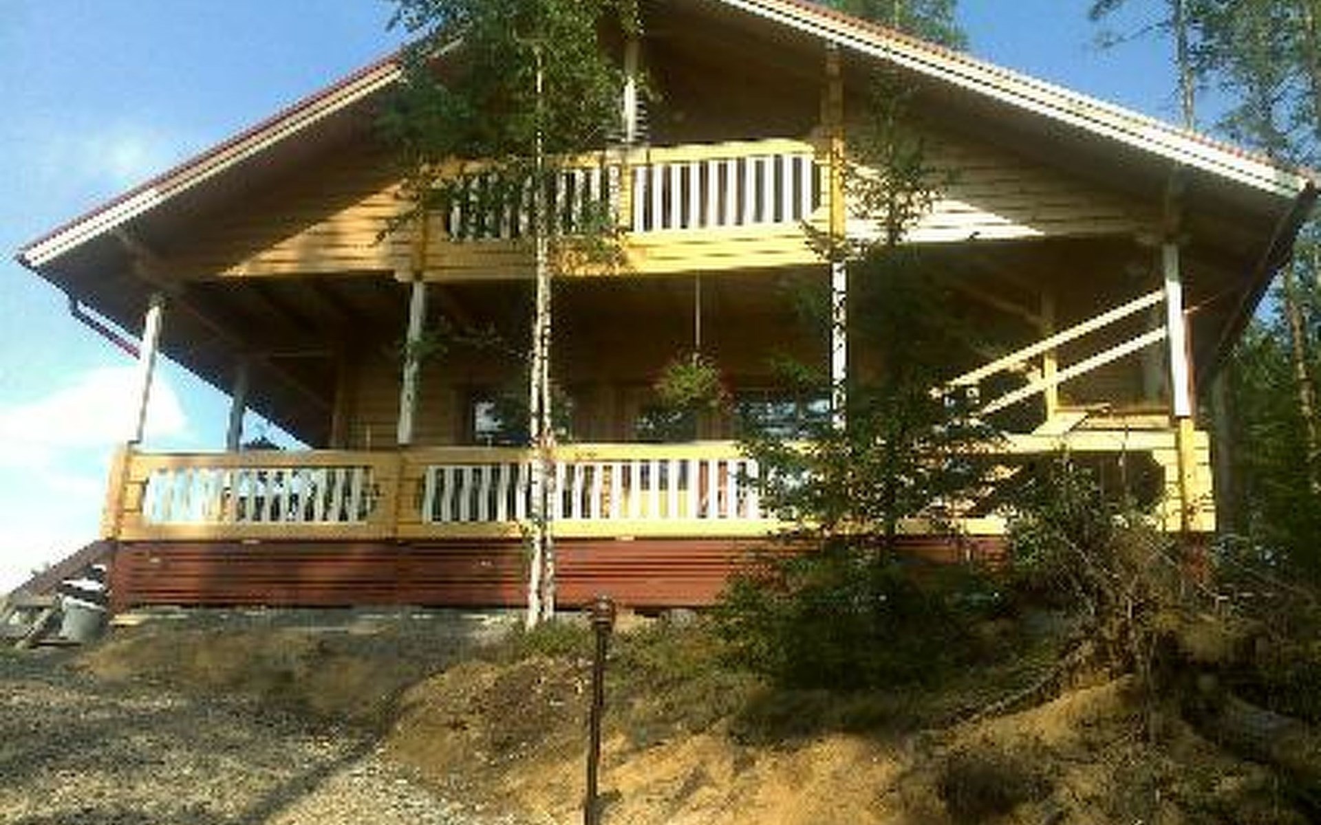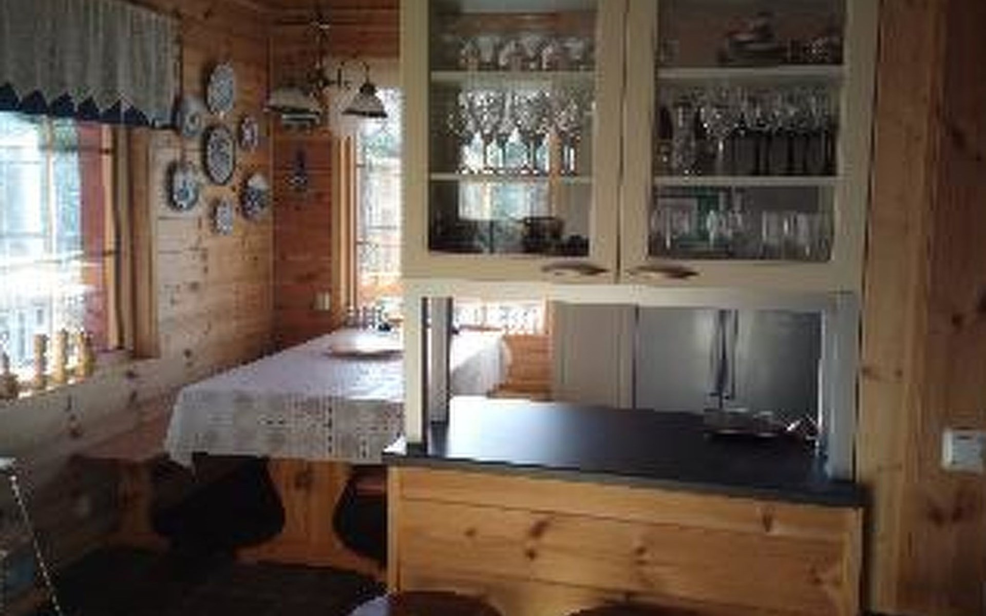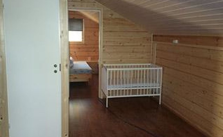 Log cabin 2013, kitchen-living room, bedroom with double bed, sauna (electric), shower room, terrace (28 m²).