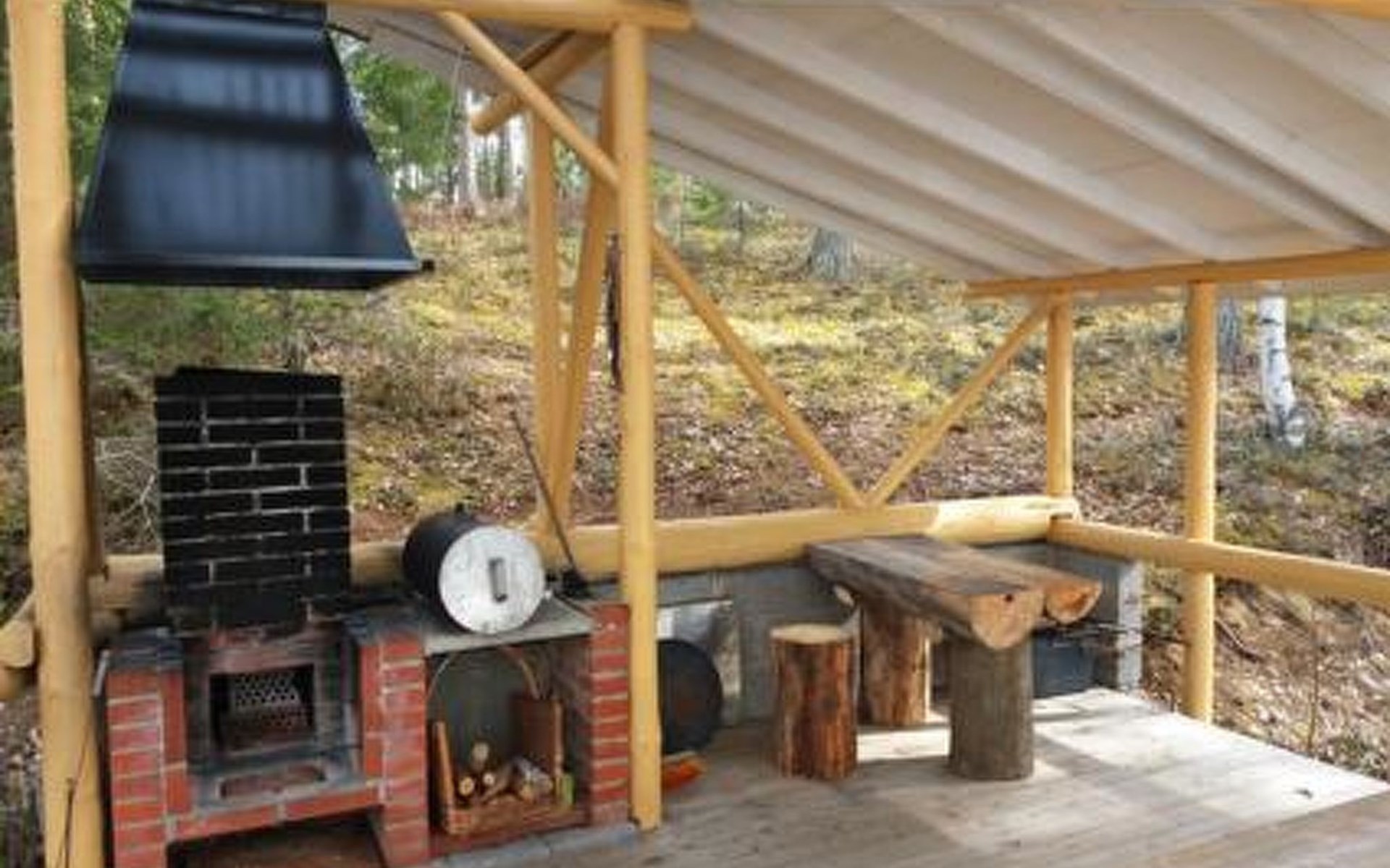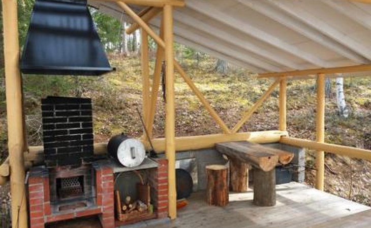 A barbecue terrace, wood grill, fish smoking possibility, electrical socket.