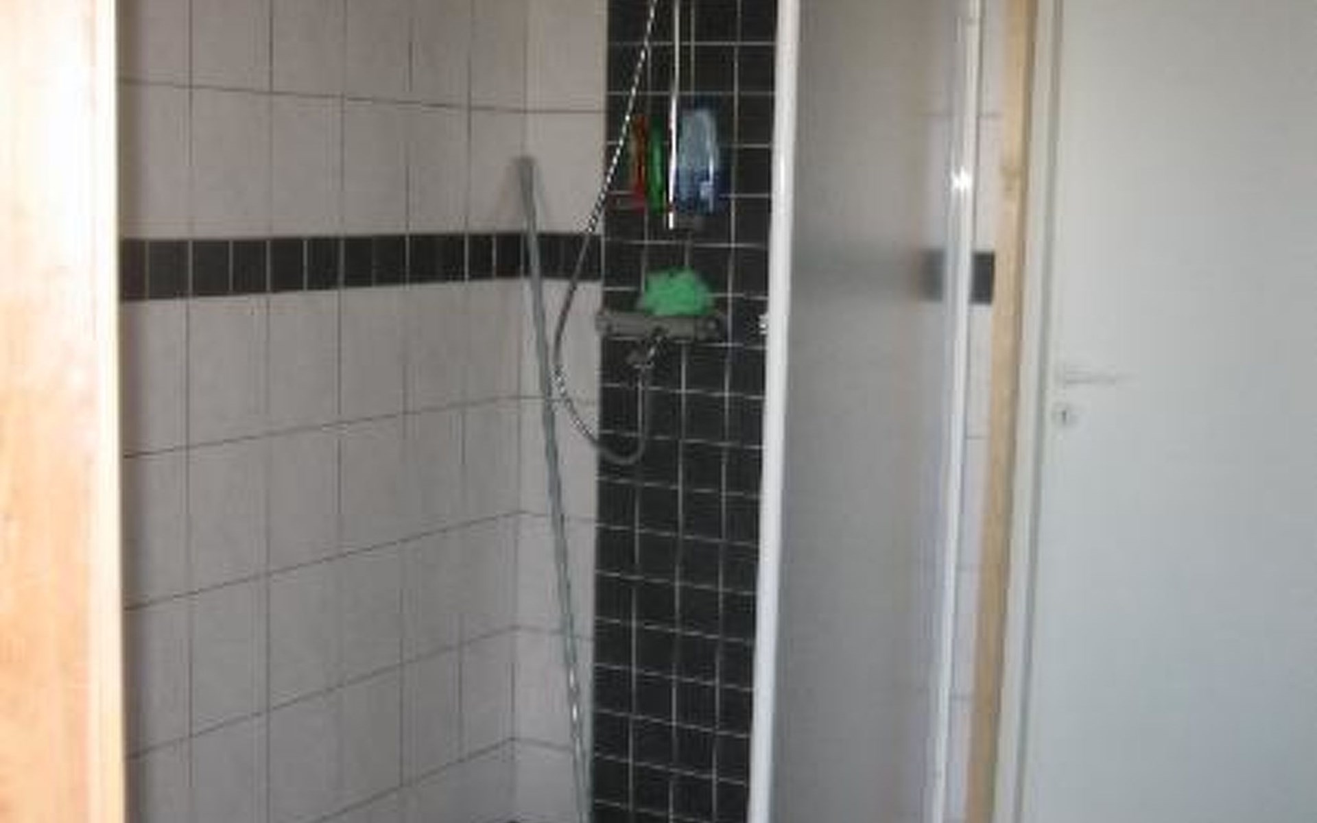 Access to the upper floor from outdoor terrace. In upstairs: living room, bedroom (7m ²) with 2 beds, bedroom (7m ²) with 2 beds, balcony.