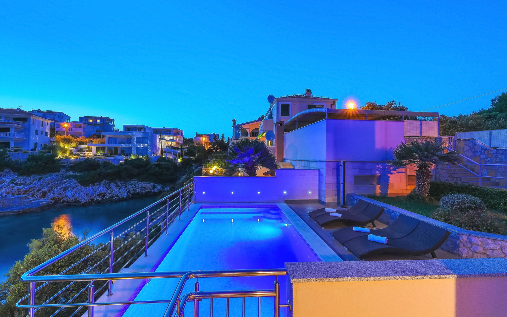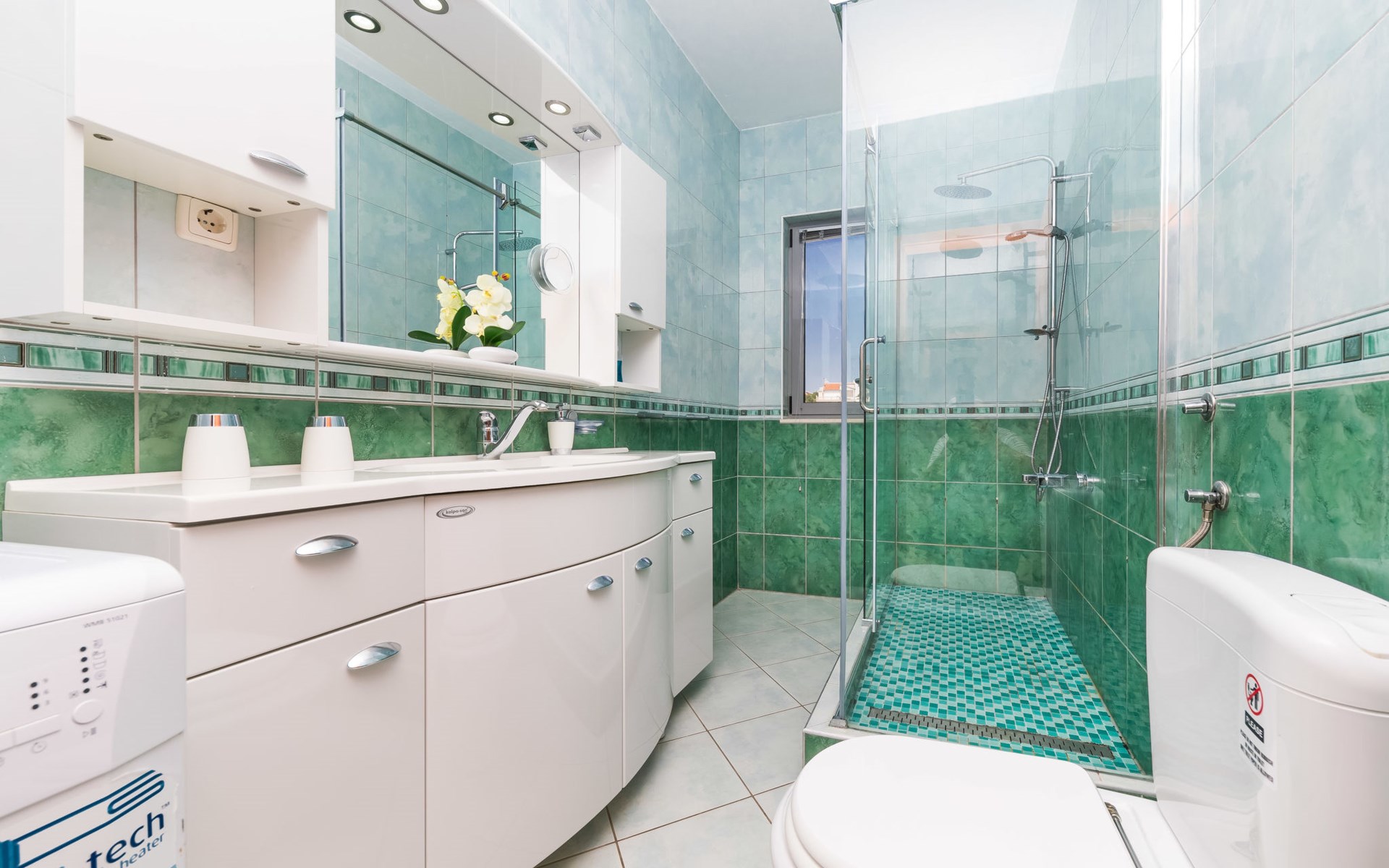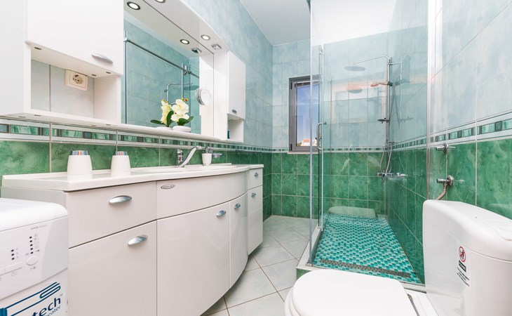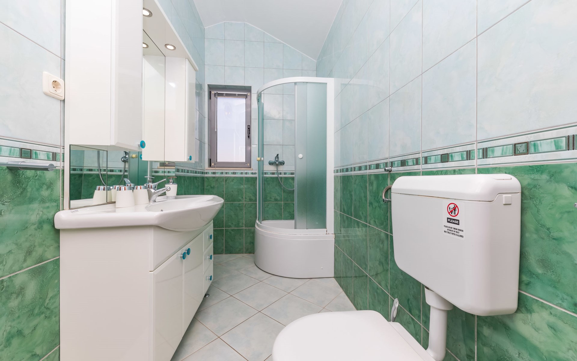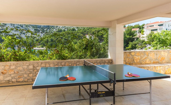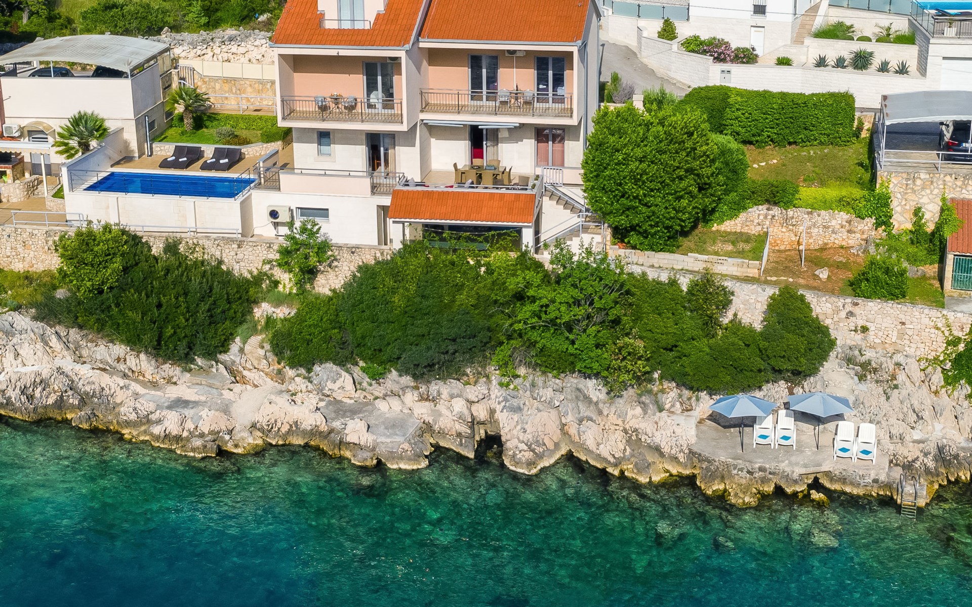 Ražanj 10 km van Rogoznica: Mooi eengezinswoning "Villa Silvana", van 3 verdiepingen. Rustige, zonnige ligging, direct aan zee, direct aan het strand, directe toegang tot het strand. Voor alleengebruik: terrein 300 m2 (omheind), tuin op verschillende niveaus, openluchtzwembad hoekig, verwarmd (8 x 3 m, 100 - 180 cm diepte, seizoensgebonden beschikbaarheid: 01.Jan. - 31.Dec.). Barbecue. In het huis: internetaansluiting. Overdekte parkeerplaats bij het huis op het terrein. Winkel, restaurant 500 m, bushalte 6.1 km, rotsstrand 10 m.