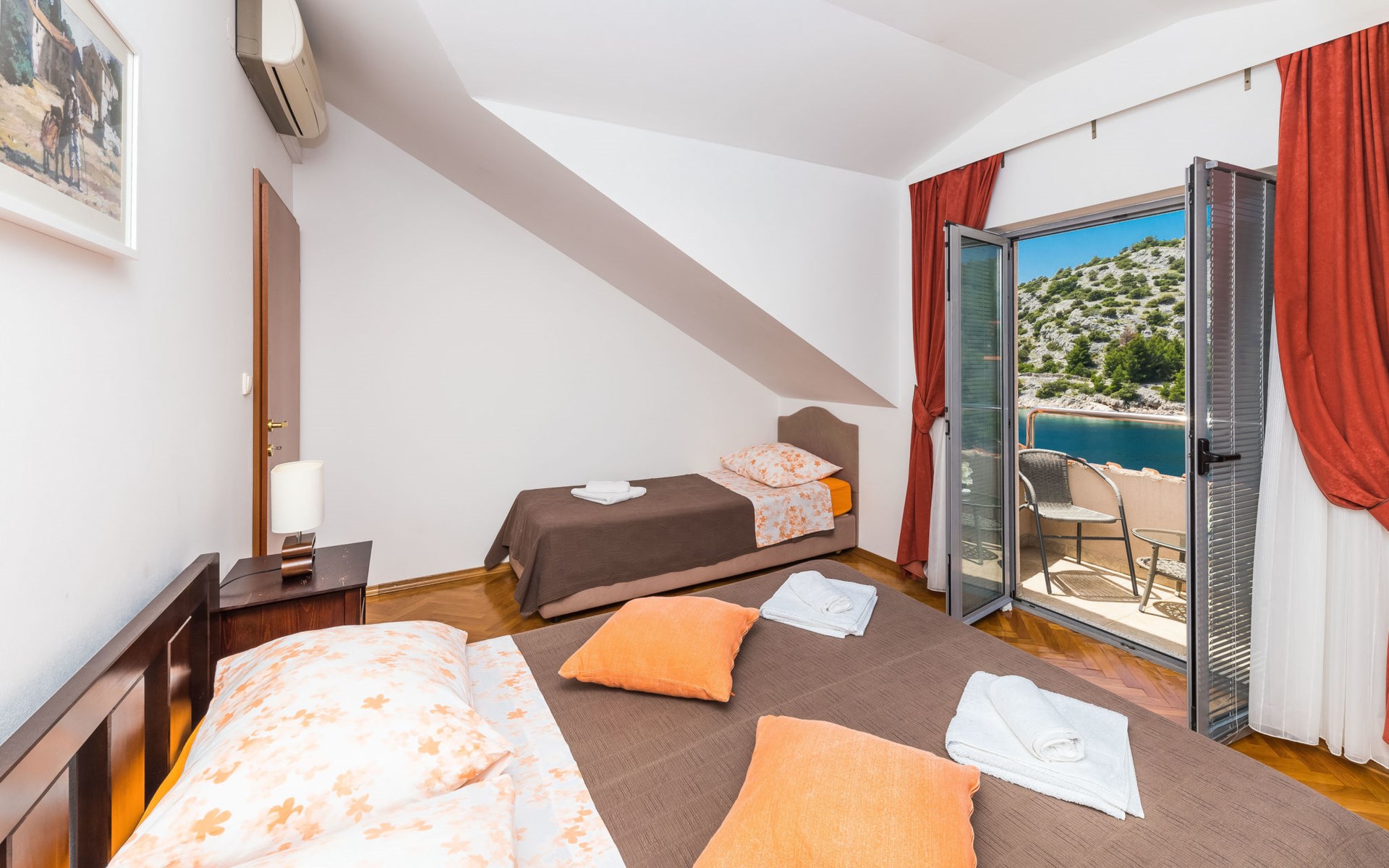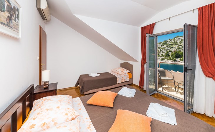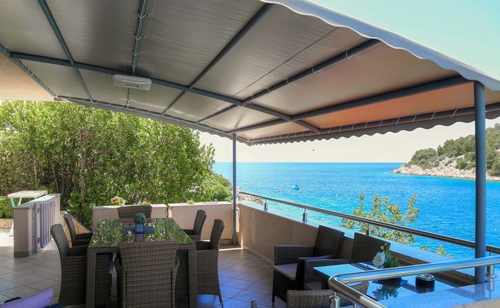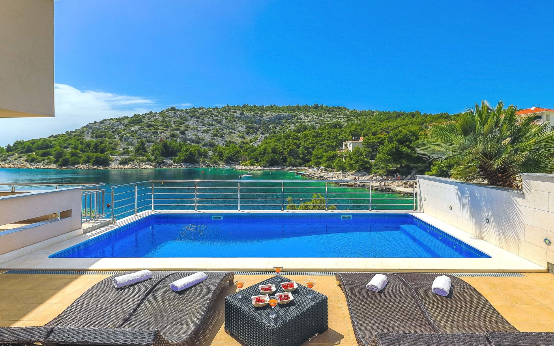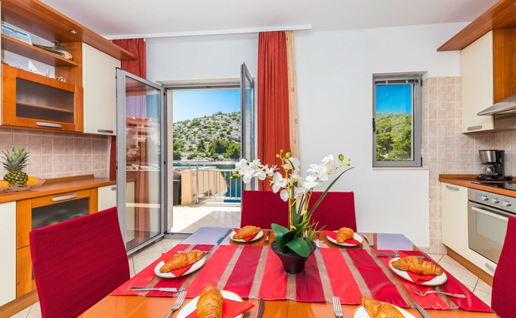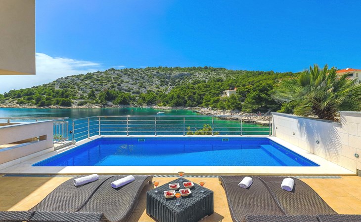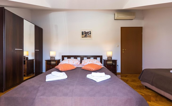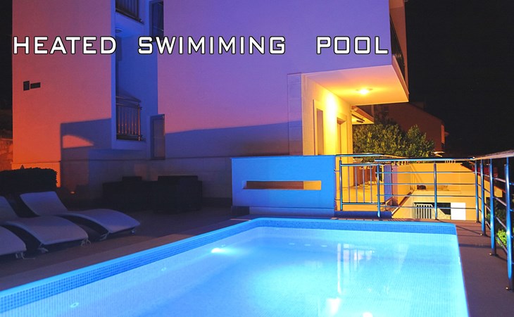 Ražanj 10 km van Rogoznica: Mooi eengezinswoning "Villa Silvana", van 3 verdiepingen. Rustige, zonnige ligging, direct aan zee, direct aan het strand, directe toegang tot het strand. Voor alleengebruik: terrein 300 m2 (omheind), tuin op verschillende niveaus, openluchtzwembad hoekig, verwarmd (8 x 3 m, 100 - 180 cm diepte, seizoensgebonden beschikbaarheid: 01.Jan. - 31.Dec.). Barbecue. In het huis: internetaansluiting. Overdekte parkeerplaats bij het huis op het terrein. Winkel, restaurant 500 m, bushalte 6.1 km, rotsstrand 10 m.