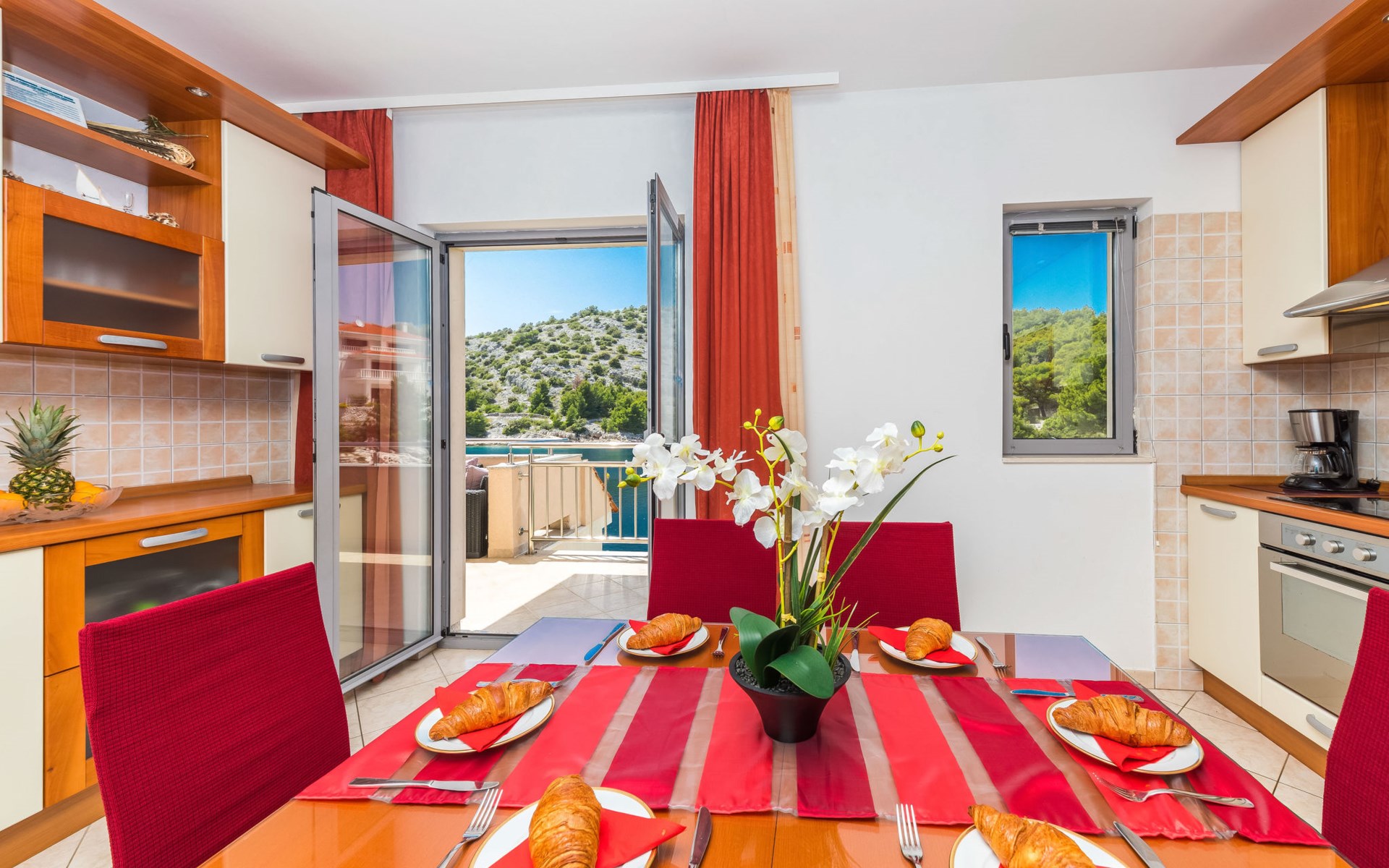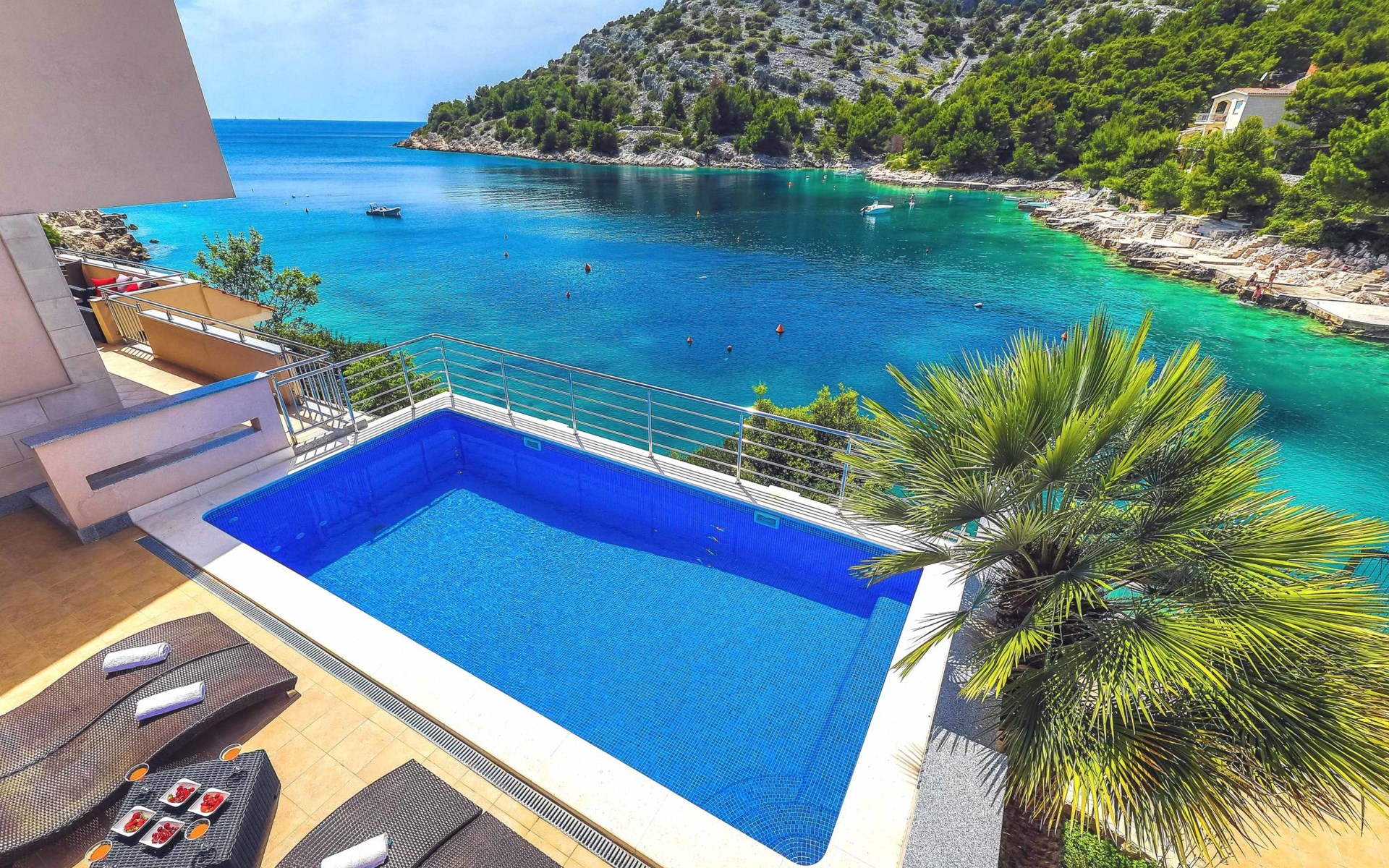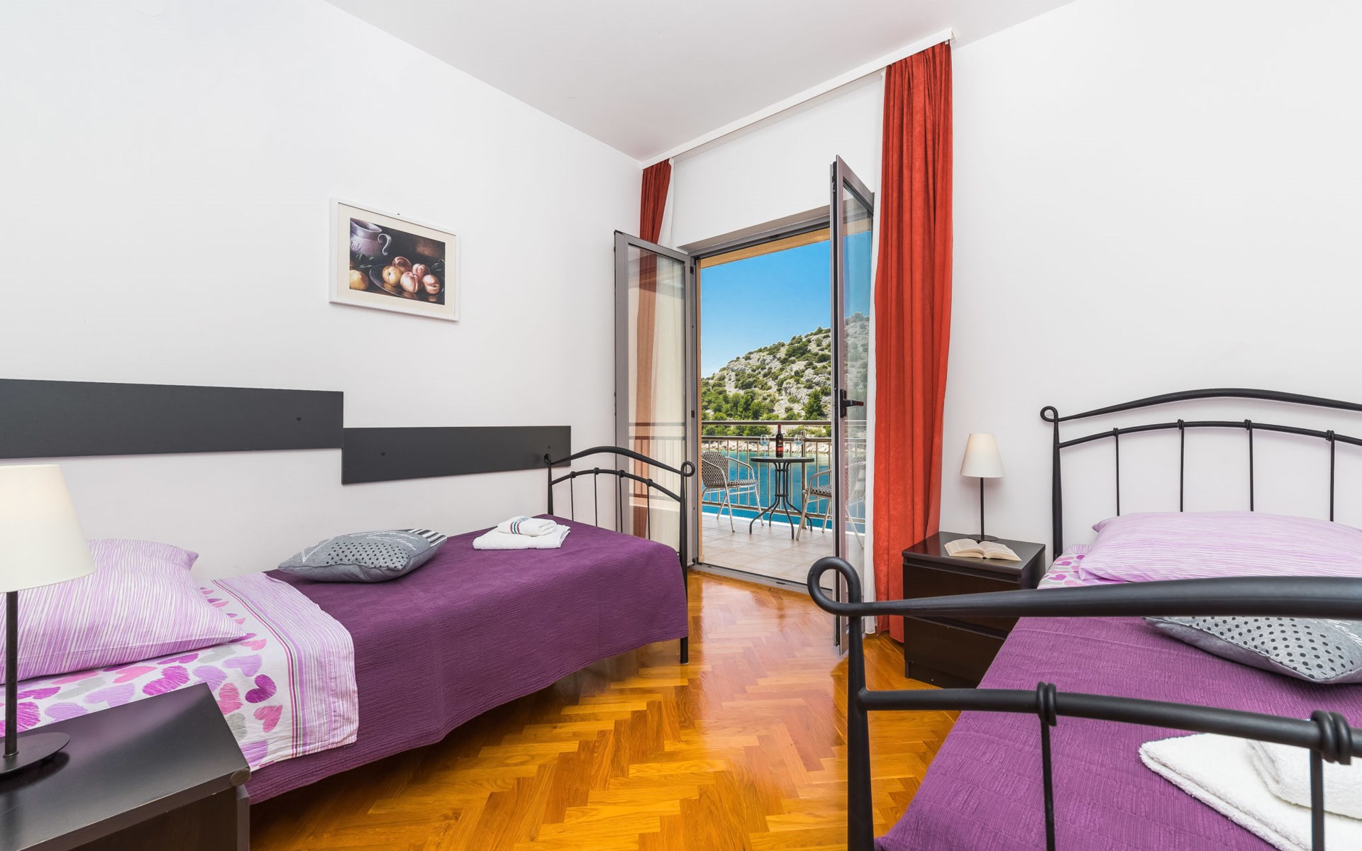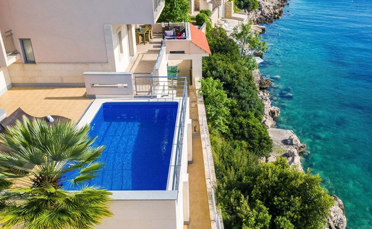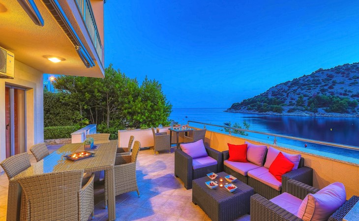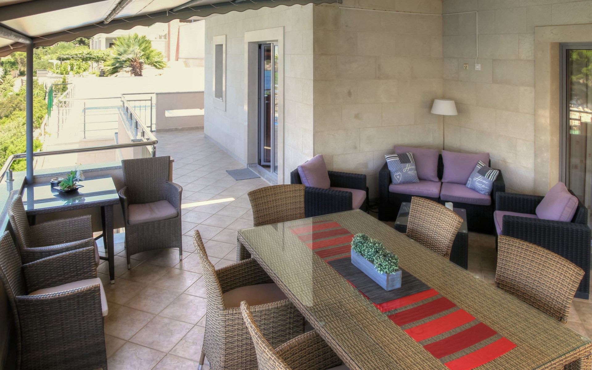 Ražanj 10 km van Rogoznica: Mooi eengezinswoning "Villa Silvana", van 3 verdiepingen. Rustige, zonnige ligging, direct aan zee, direct aan het strand, directe toegang tot het strand. Voor alleengebruik: terrein 300 m2 (omheind), tuin op verschillende niveaus, openluchtzwembad hoekig, verwarmd (8 x 3 m, 100 - 180 cm diepte, seizoensgebonden beschikbaarheid: 01.Jan. - 31.Dec.). Barbecue. In het huis: internetaansluiting. Overdekte parkeerplaats bij het huis op het terrein. Winkel, restaurant 500 m, bushalte 6.1 km, rotsstrand 10 m.