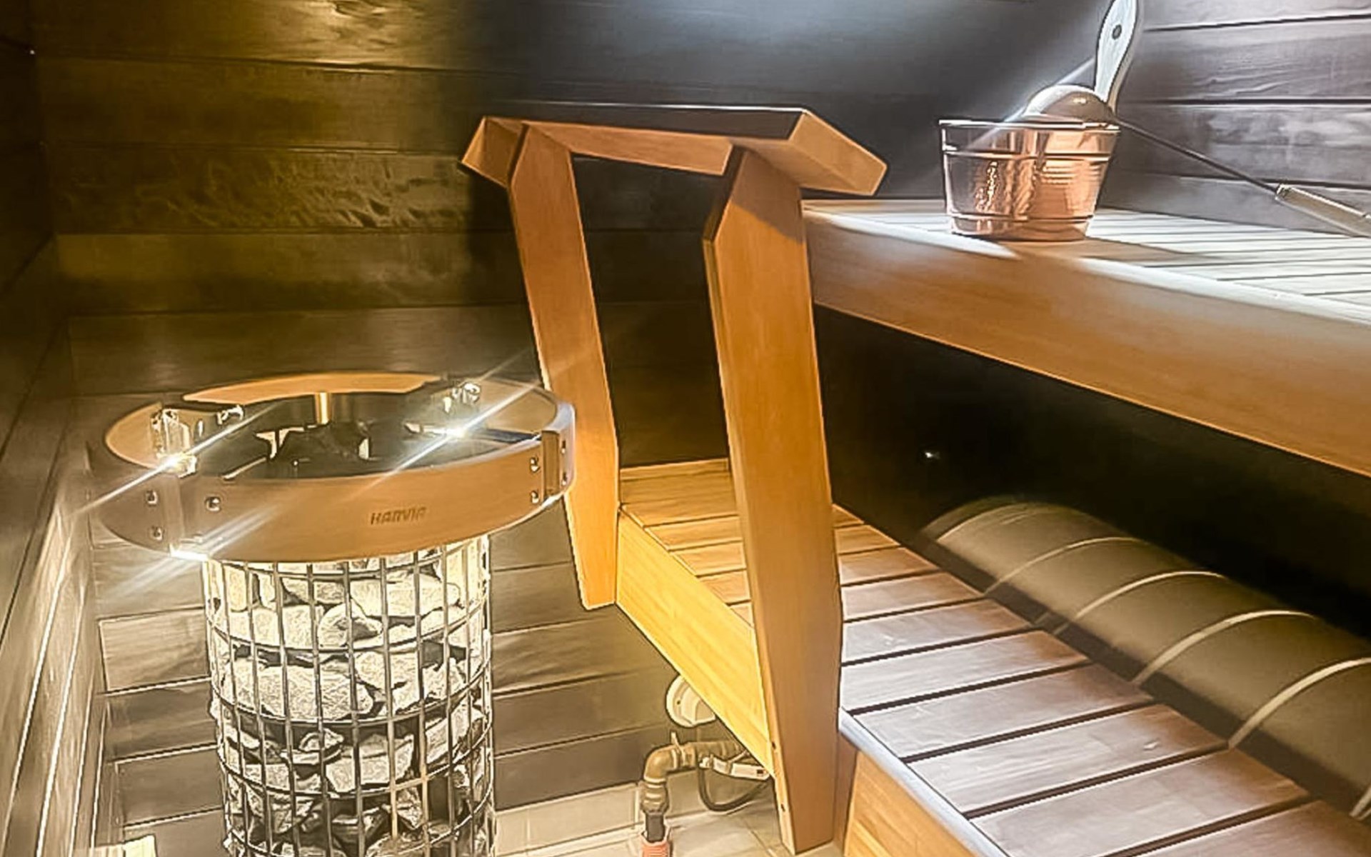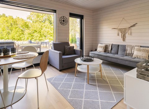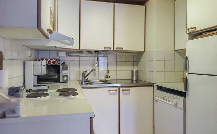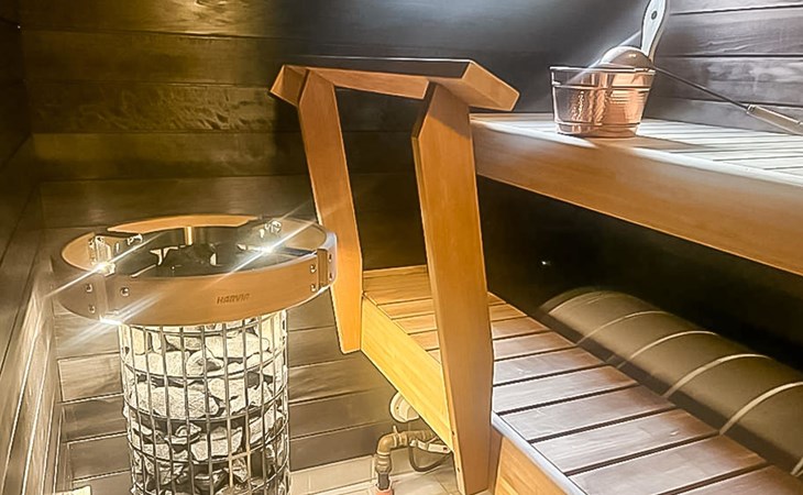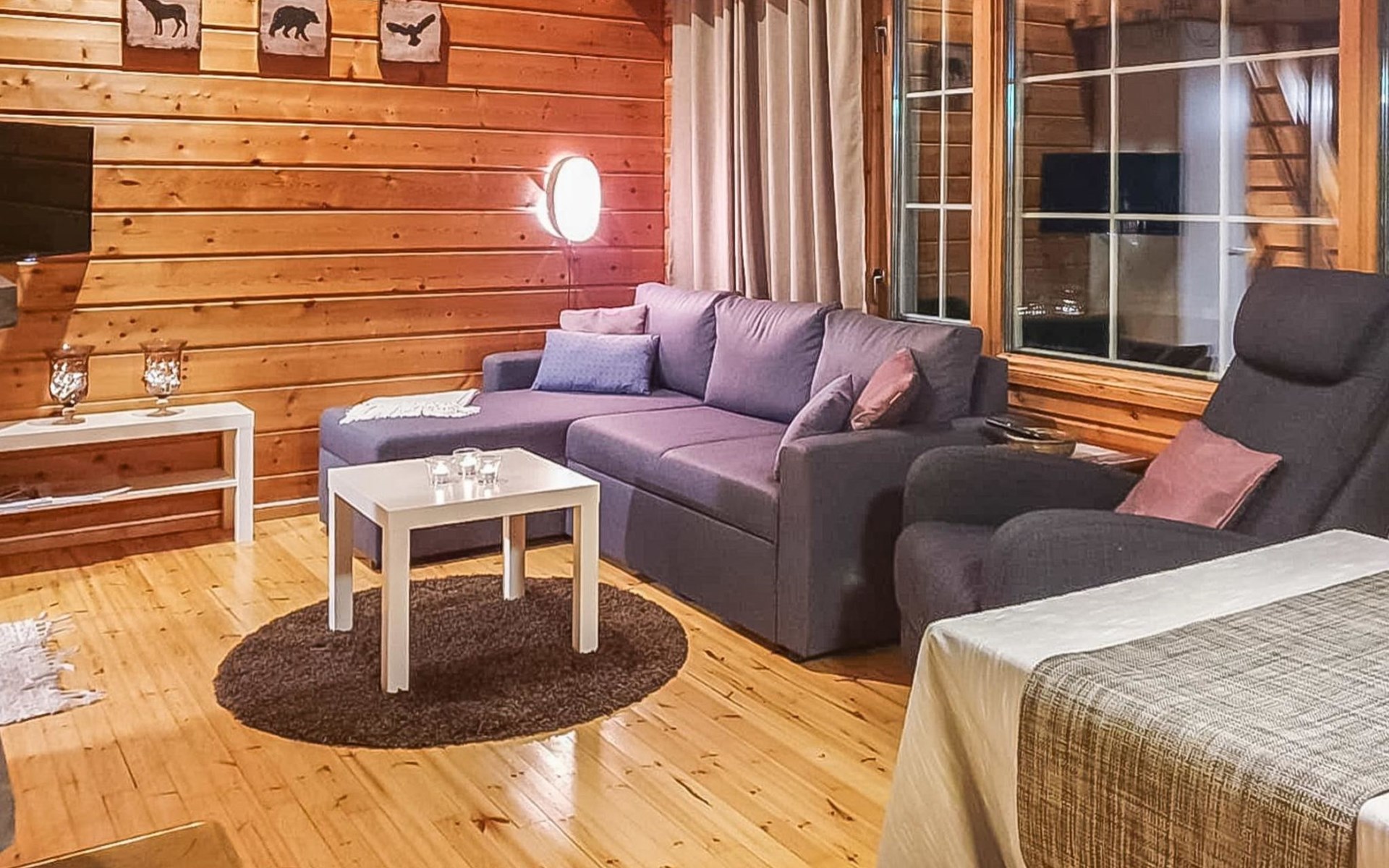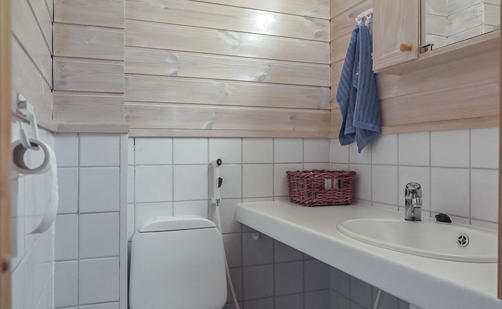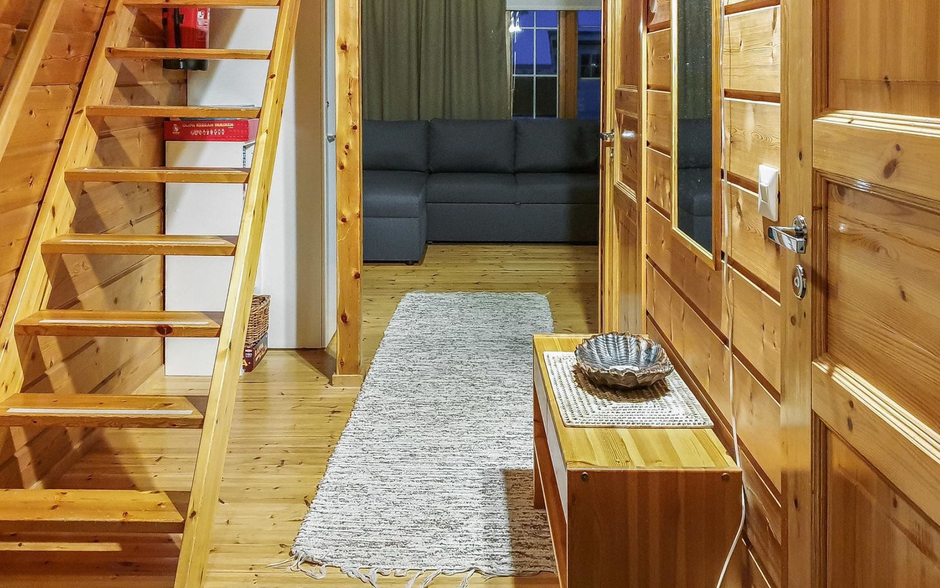 Living room with sofa bed, kitchenette, loft divided to compartments, 2 beds in both departments, sloped ceiling, sauna, washroom, separate WC, open veranda, storeroom.