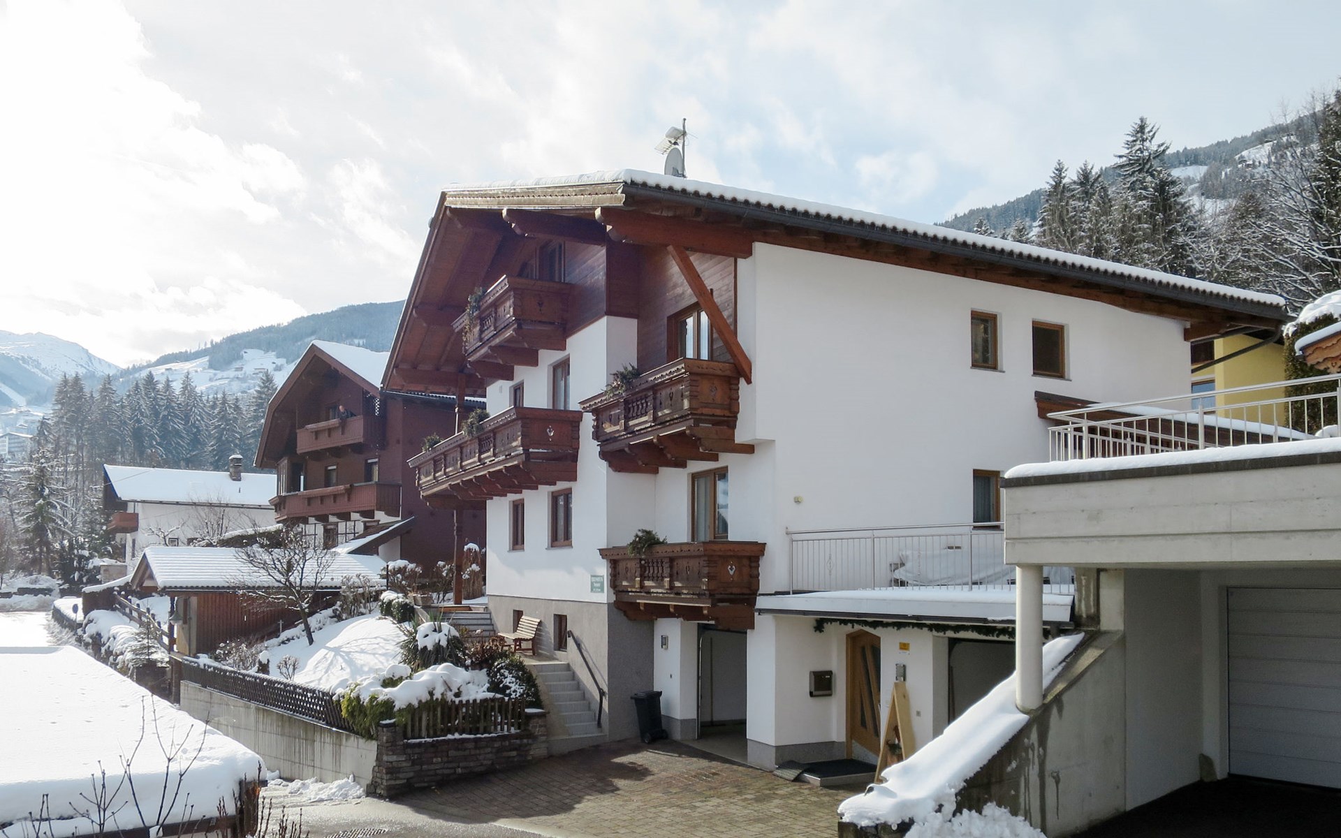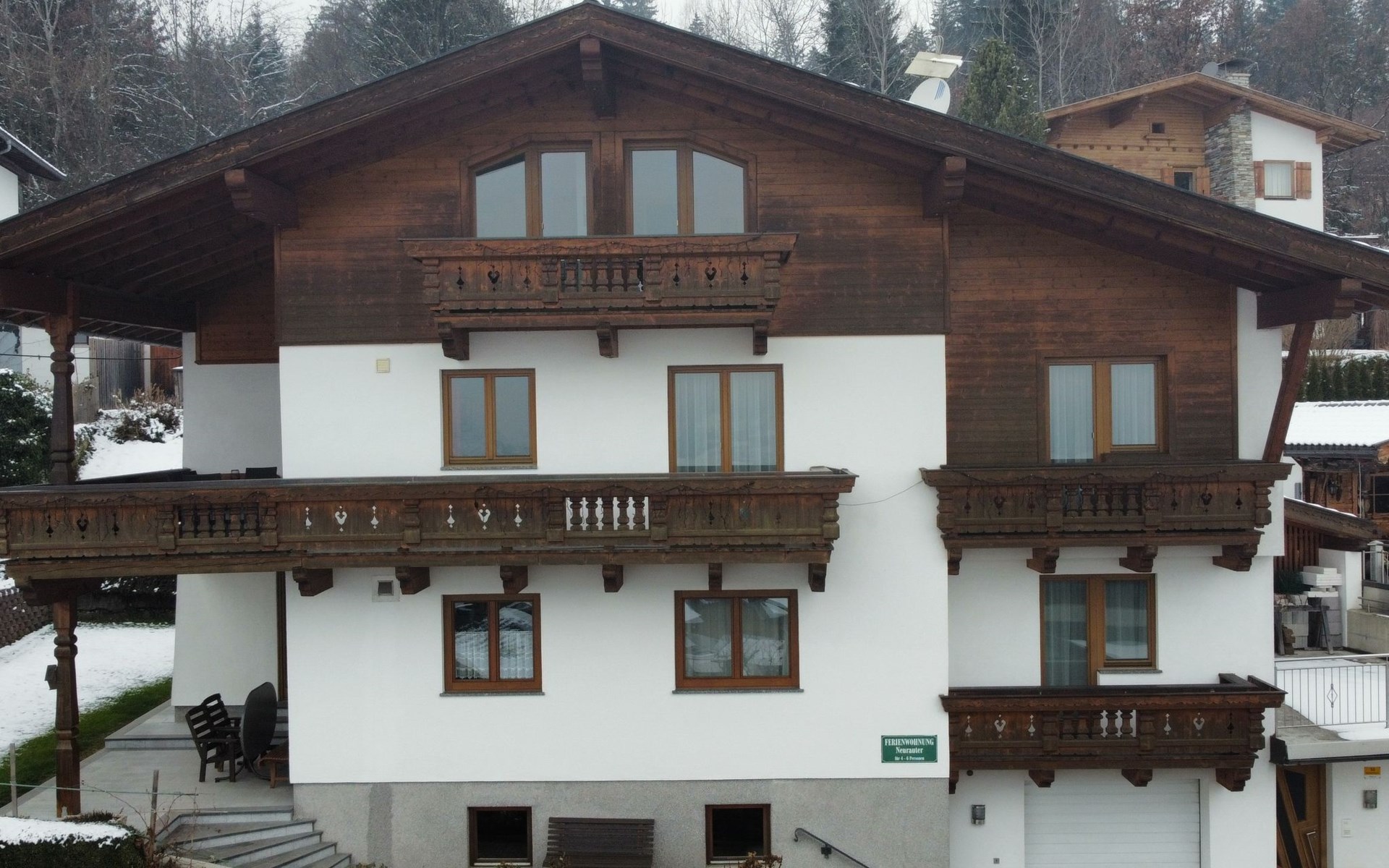 Mooi appartementencomplex "Neurauter", van 3 verdiepingen. In de wijk Marienberg, 800 m van het centrum van Fügen, aan de rand van de plaats, 7.5 km van het centrum van Kaltenbach, 46 km van het centrum van Innsbruck, 200 m van de bosrand. In het huis: berging voor ski's, skischoendroger. Parkeerplaats bij het huis. Winkel 800 m, bushalte "Fügen Schloss" 850 m, treinstation "Fügen-Hart i.Z. Bahnhof" 1.2 km, overdekt zwembad 1.7 km. Wandelroutes 10 m vanaf het huis, bergtrein, skilift 800 m, skibushalte 500 m.