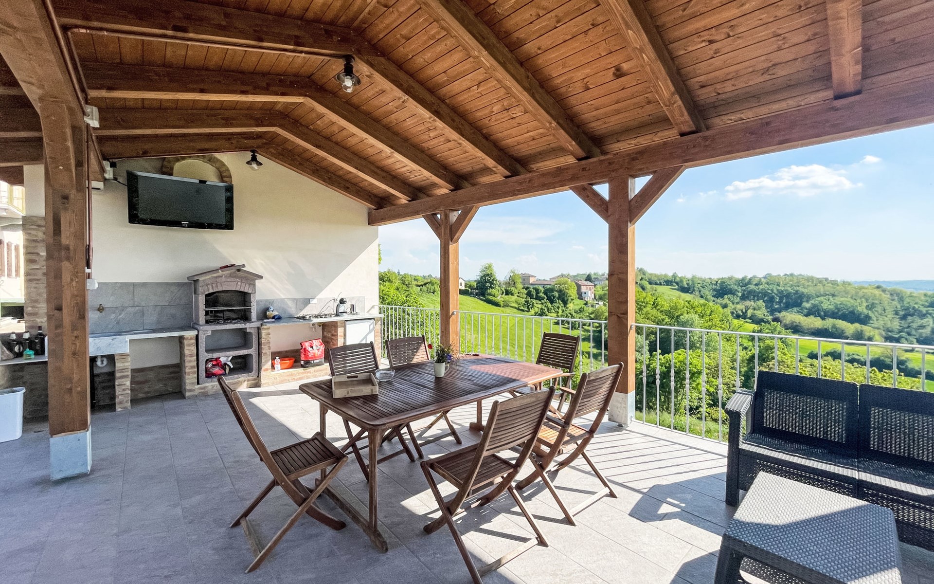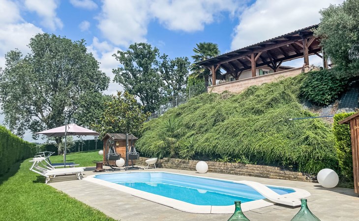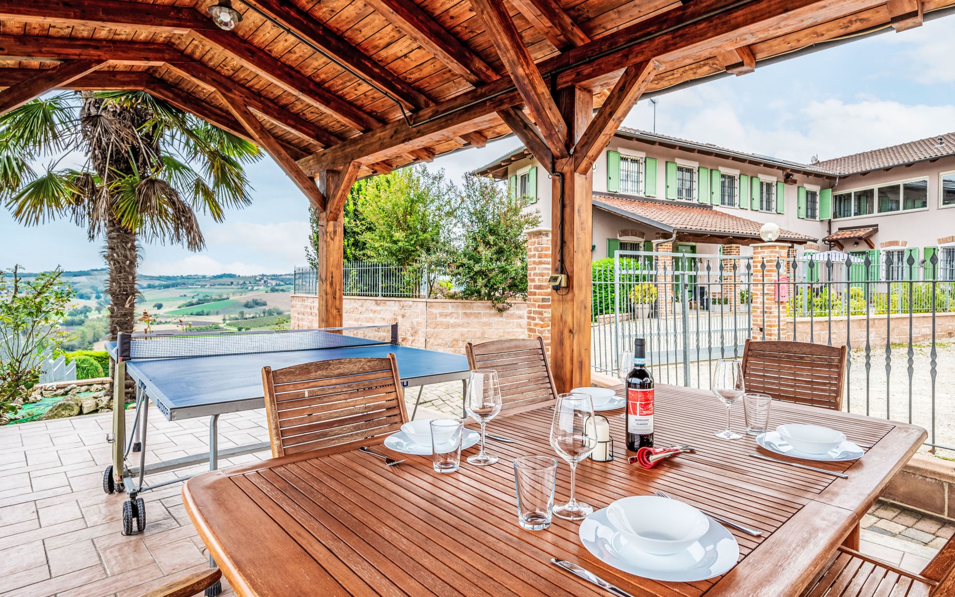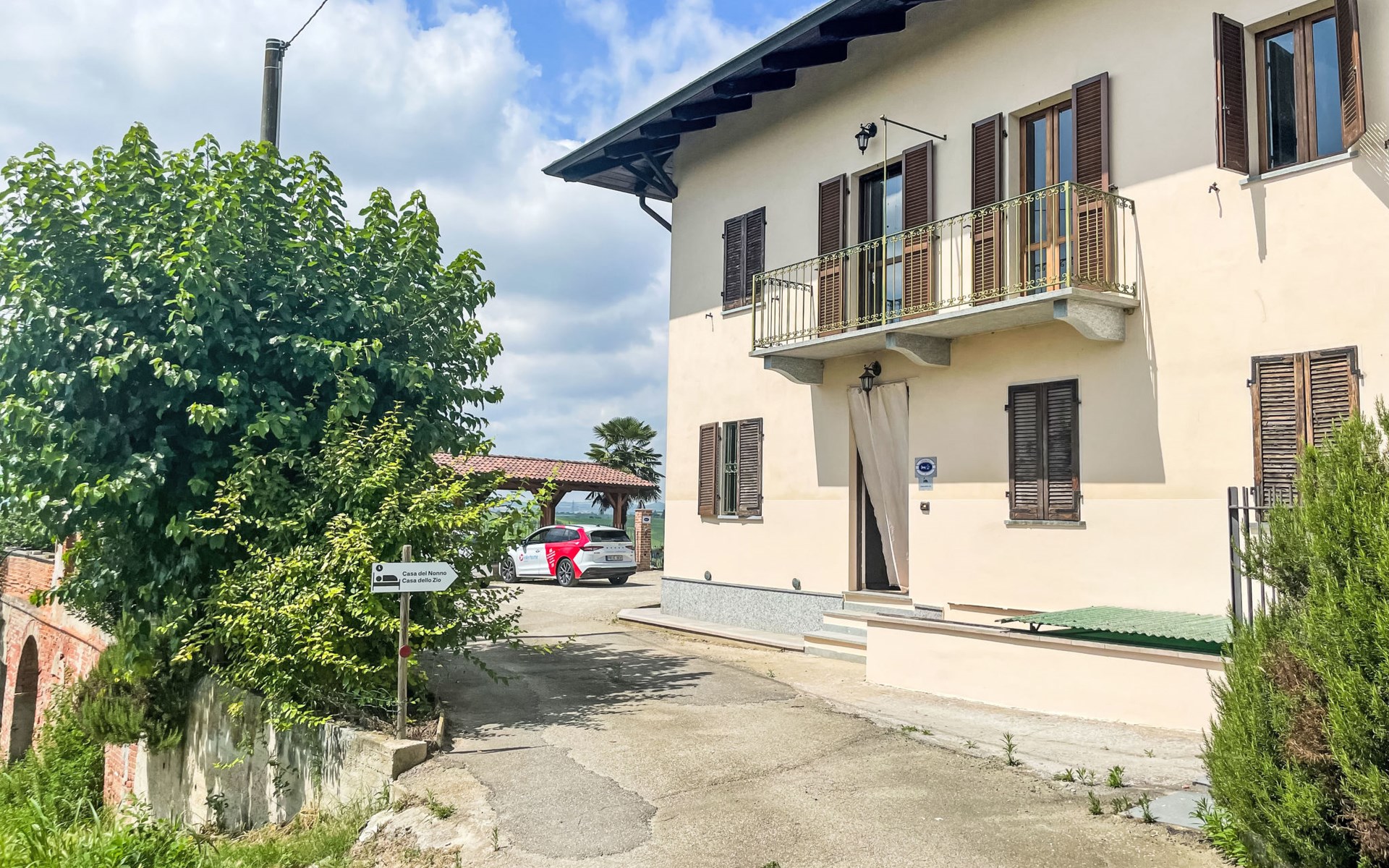 Gezellig Huis met 3 woningen van 2 verdiepingen, omgeven door velden en wijngaarden. Buiten de plaats, 2 km van het centrum van Portacomaro, rustige, zonnige ligging op een heuvel. Voor medegebruik: wild terrein 1.500 m2 (omheind) met gazon en bomen, openluchtzwembad (11 x 4 m, 150 cm diepte, seizoensgebonden beschikbaarheid: 01.Mei. - 15.Okt.). Buitendouche, terras, tuinmeubelen, parkeerplaats bij het huis op het terrein. Levensmiddelenwinkel 2 km, supermarkt 5 km, restaurant 1 km, bakkerij 2 km, bushalte 1.6 km. Attracties in de buurt: Asti 12 km, Turin 50 km, Alba 35 km. Auto noodzakelijk. Eigenaar woont in apart huisgedeelte. De eigenaar heeft een hond.