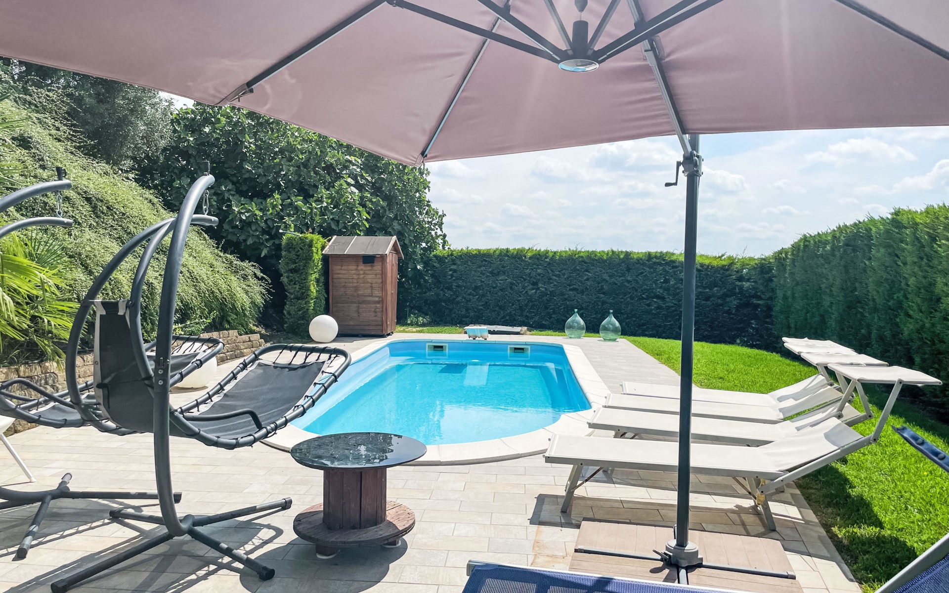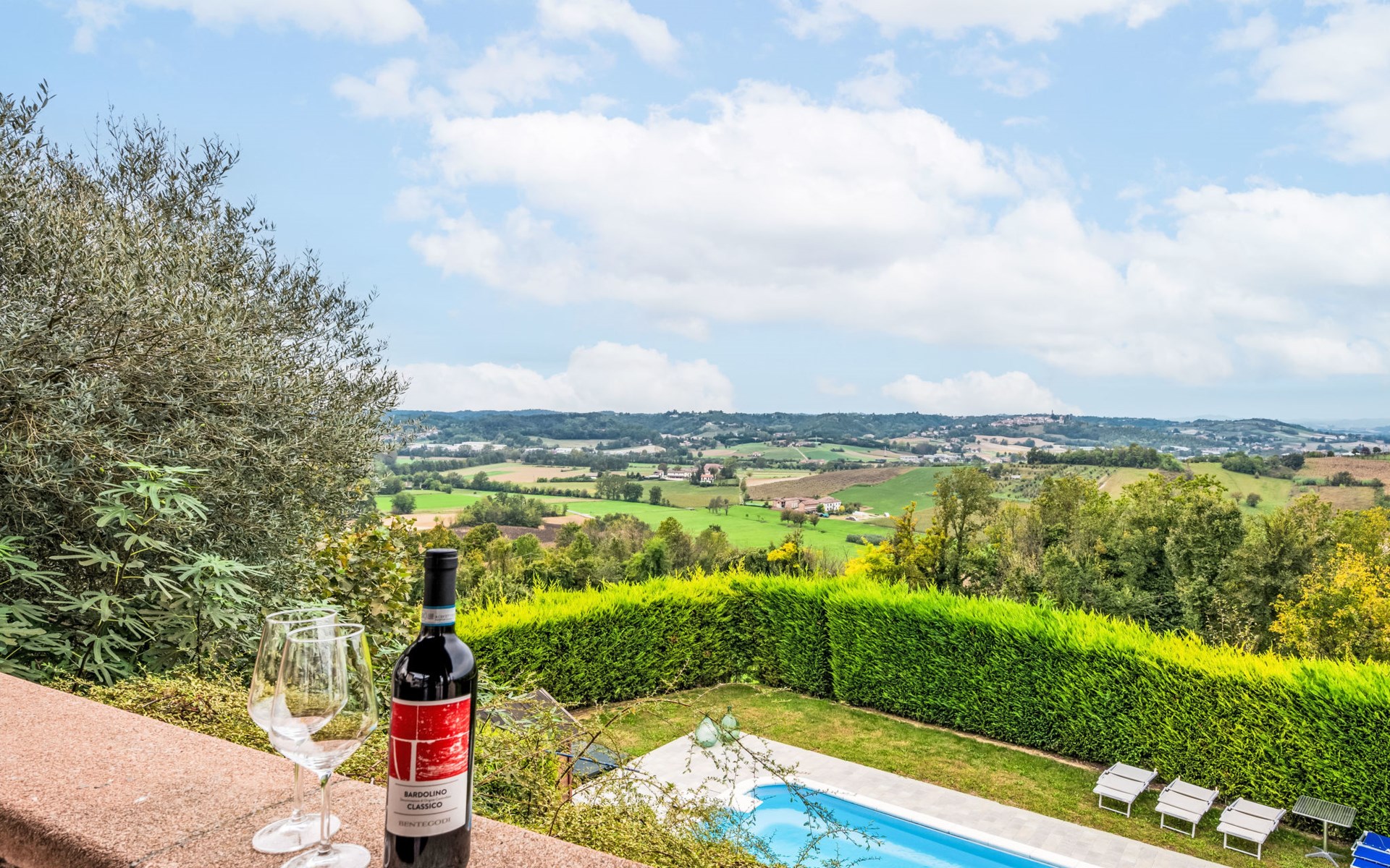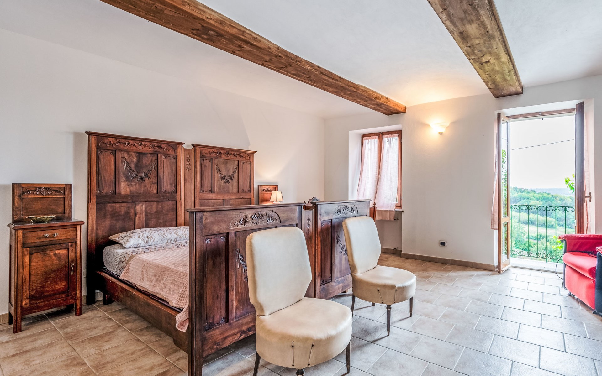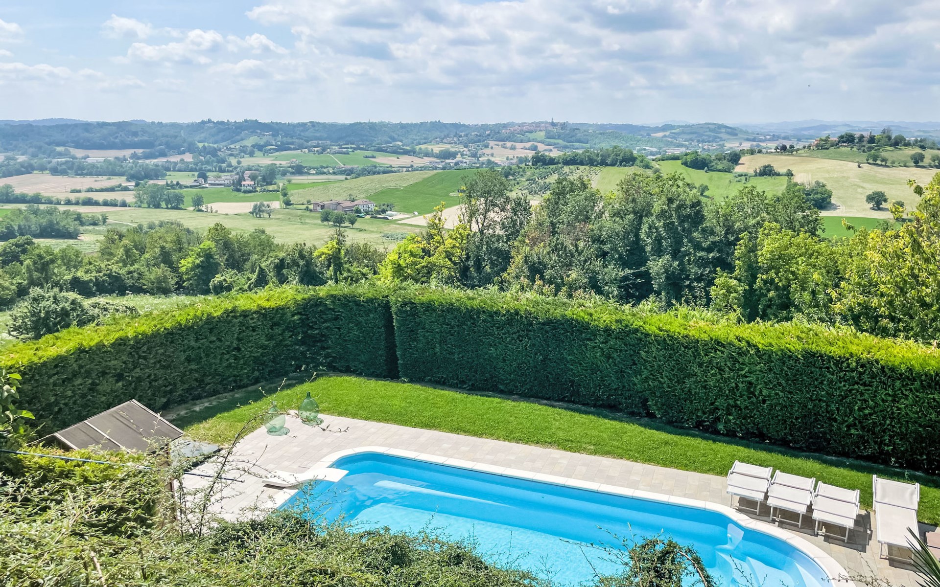 Gezellig Huis met 3 woningen van 2 verdiepingen, omgeven door velden en wijngaarden. Buiten de plaats, 2 km van het centrum van Portacomaro, rustige, zonnige ligging op een heuvel. Voor medegebruik: wild terrein 1.500 m2 (omheind) met gazon en bomen, openluchtzwembad (11 x 4 m, 150 cm diepte, seizoensgebonden beschikbaarheid: 01.Mei. - 15.Okt.). Buitendouche, terras, tuinmeubelen, parkeerplaats bij het huis op het terrein. Levensmiddelenwinkel 2 km, supermarkt 5 km, restaurant 1 km, bakkerij 2 km, bushalte 1.6 km. Attracties in de buurt: Asti 12 km, Turin 50 km, Alba 35 km. Auto noodzakelijk. Eigenaar woont in apart huisgedeelte. De eigenaar heeft een hond.