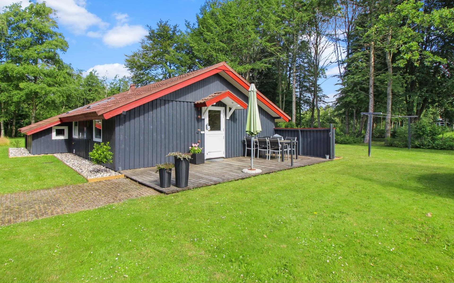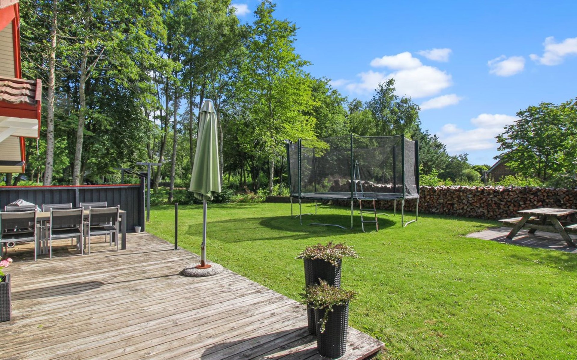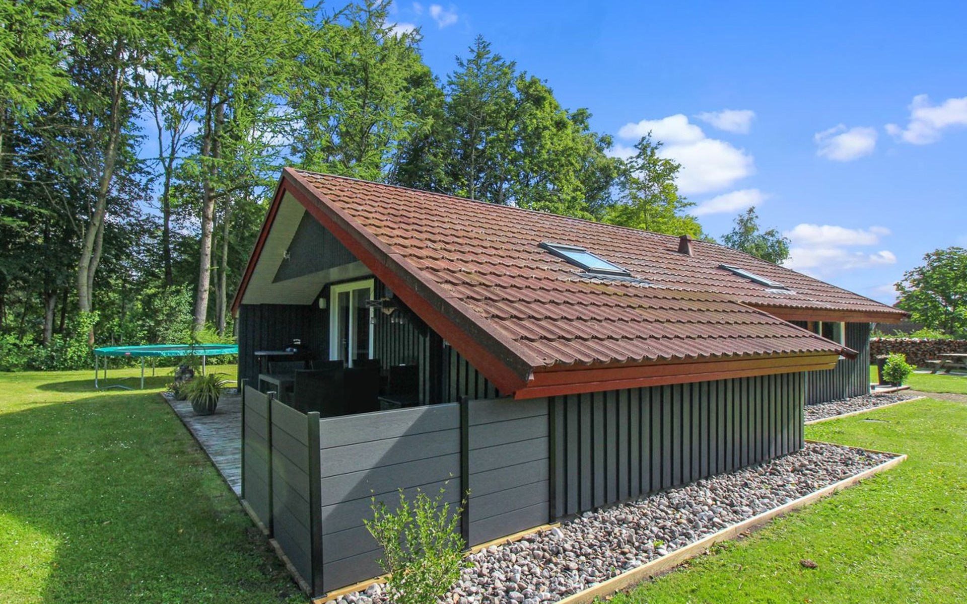 Eengezinswoning, bouwjaar 1981. 10 km van zee. Voor alleengebruik: wild terrein 1.500 m2. Terras (40 m2), barbecue, kinderspeelplaats. In het huis: trampoline, wasmachine, droger. Parkeerplaats bij het huis. Carport. Levensmiddelenwinkel 500 m. De eigenaar accepteert geen jeugdgroepen.