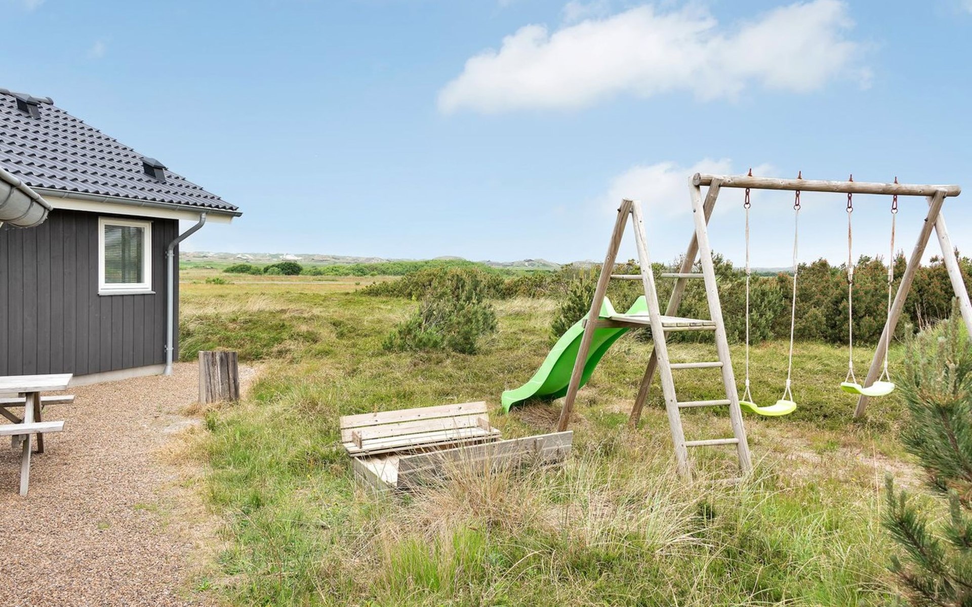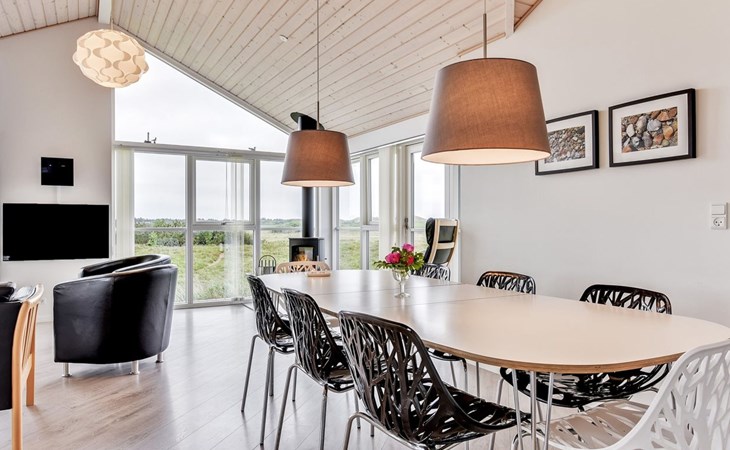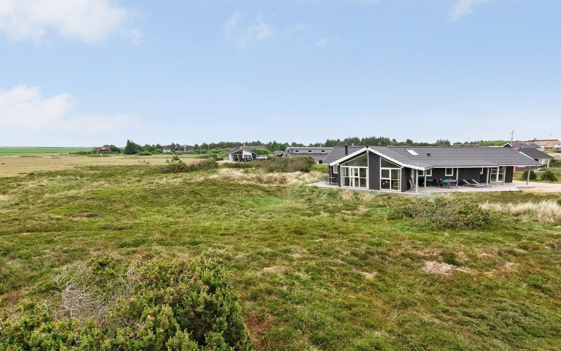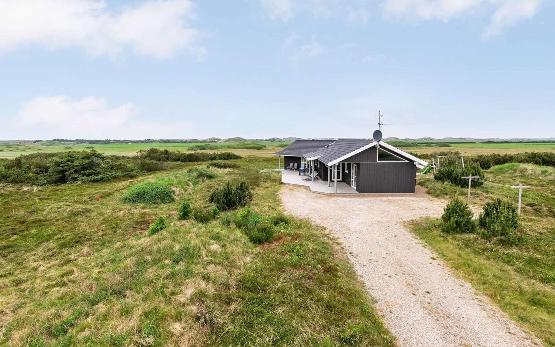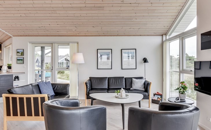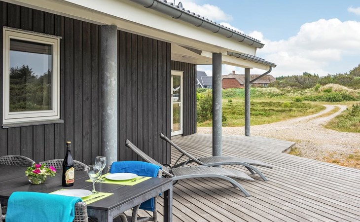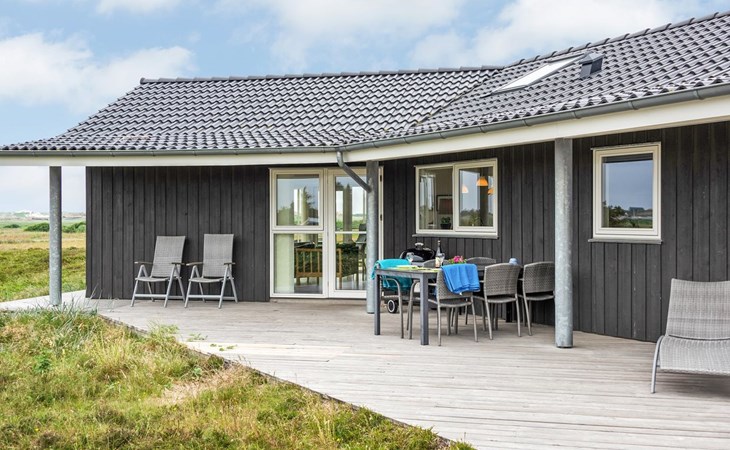 Eengezinswoning, bouwjaar 2012. 1.2 km van zee. Voor alleengebruik: wild terrein 2.050 m2. Terras (60 m2), kinderspeelplaats (schommel). In het huis: sauna, tafelvoetbal, wasmachine, droger. Parkeerplaats bij het huis. Oplaadstation. Levensmiddelenwinkel 1.8 km. Golfterrein 2 km. De eigenaar accepteert geen jeugdgroepen.