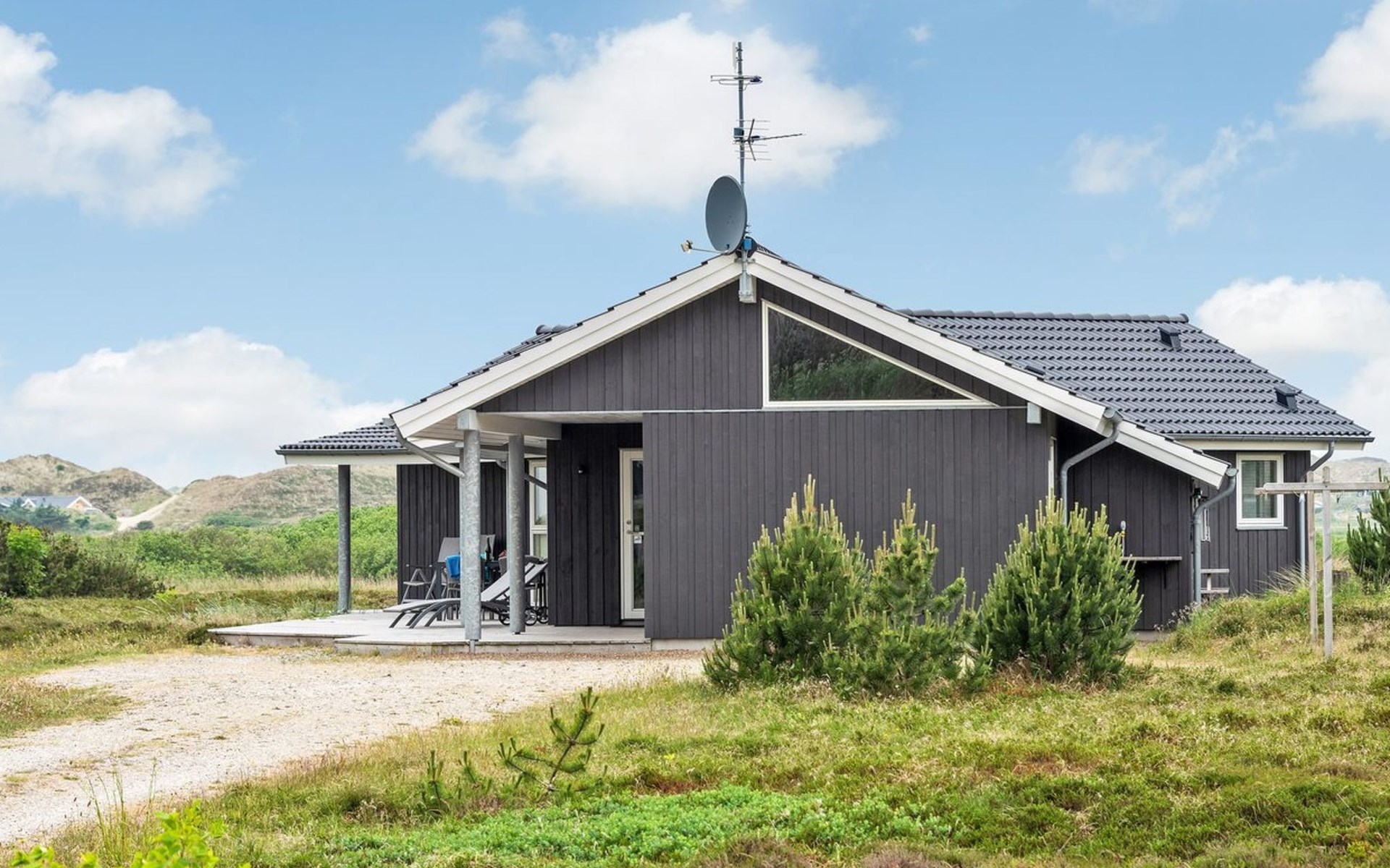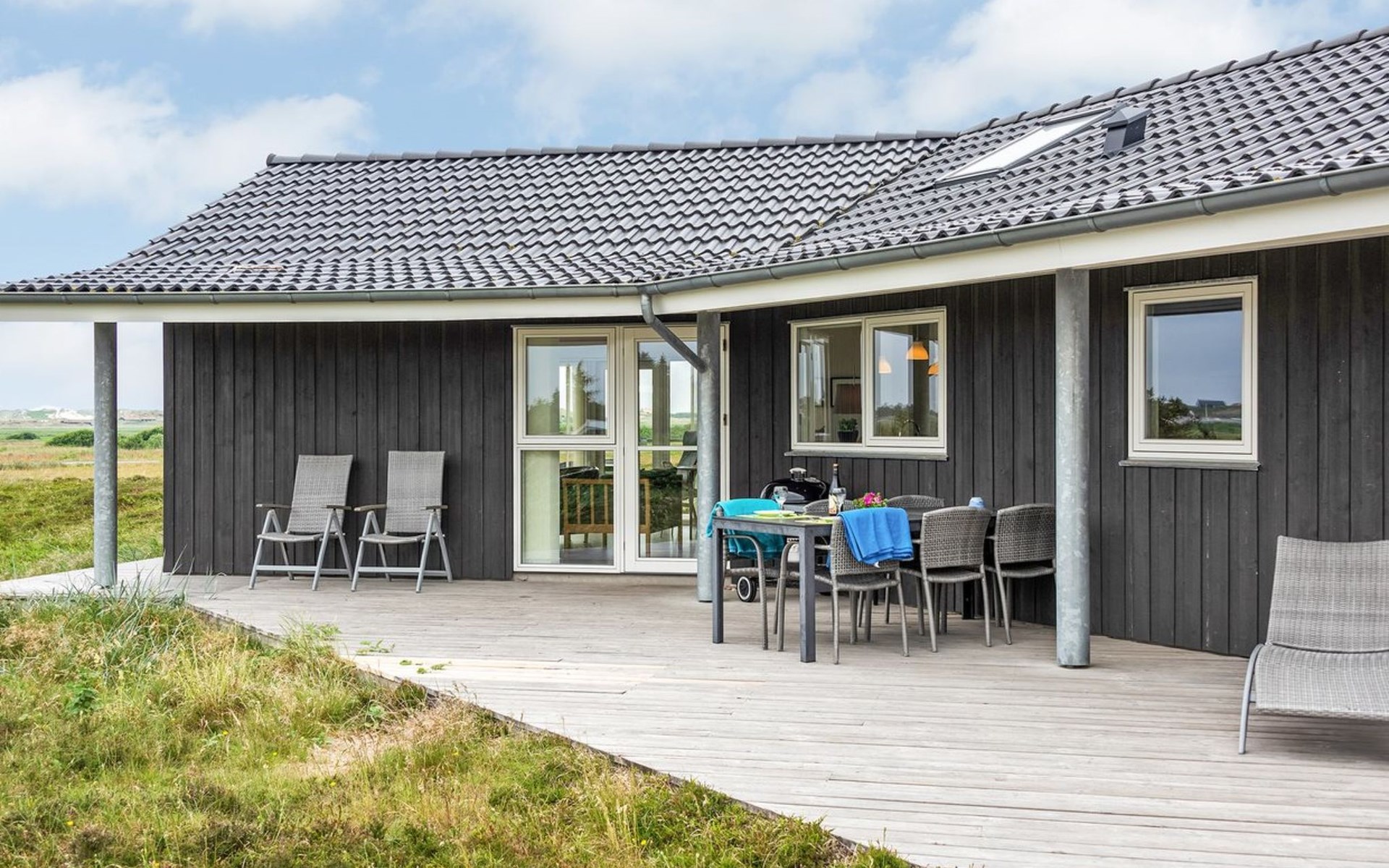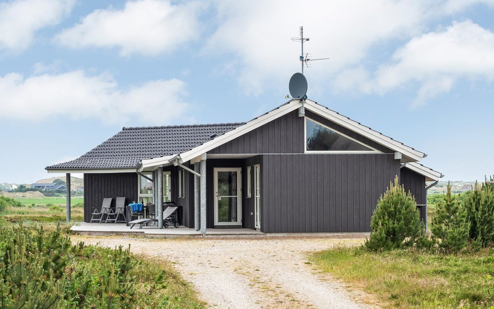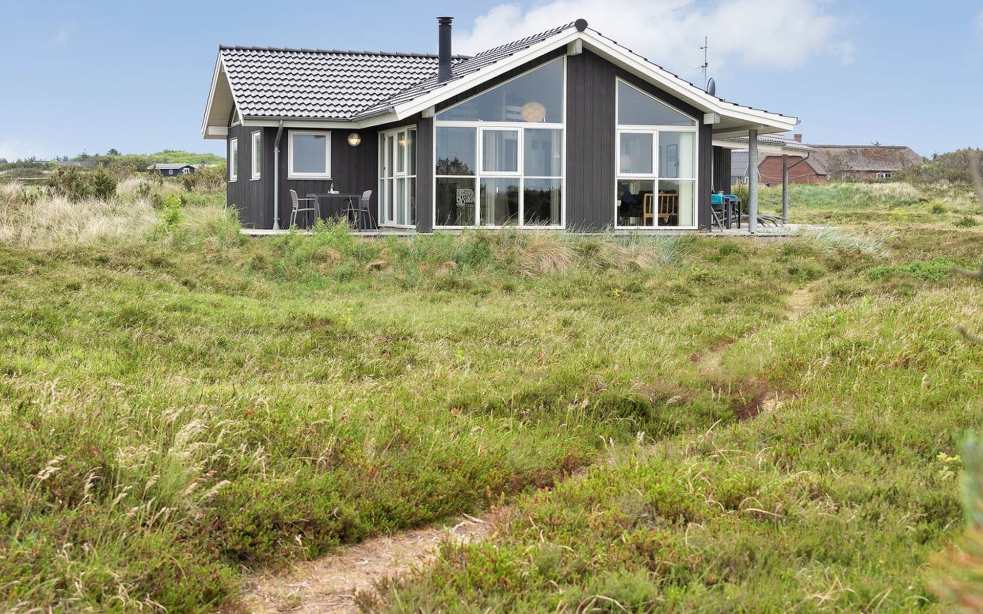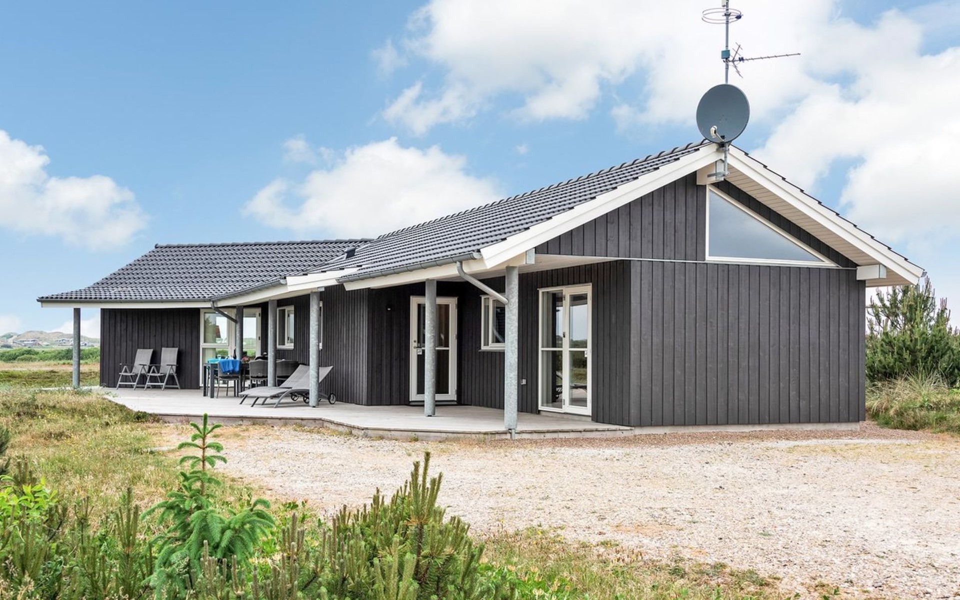 Eengezinswoning, bouwjaar 2012. 1.2 km van zee. Voor alleengebruik: wild terrein 2.050 m2. Terras (60 m2), kinderspeelplaats (schommel). In het huis: sauna, tafelvoetbal, wasmachine, droger. Parkeerplaats bij het huis. Oplaadstation. Levensmiddelenwinkel 1.8 km. Golfterrein 2 km. De eigenaar accepteert geen jeugdgroepen.