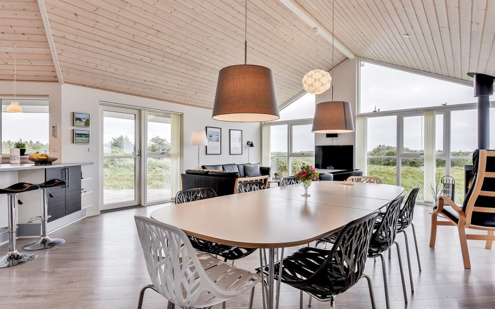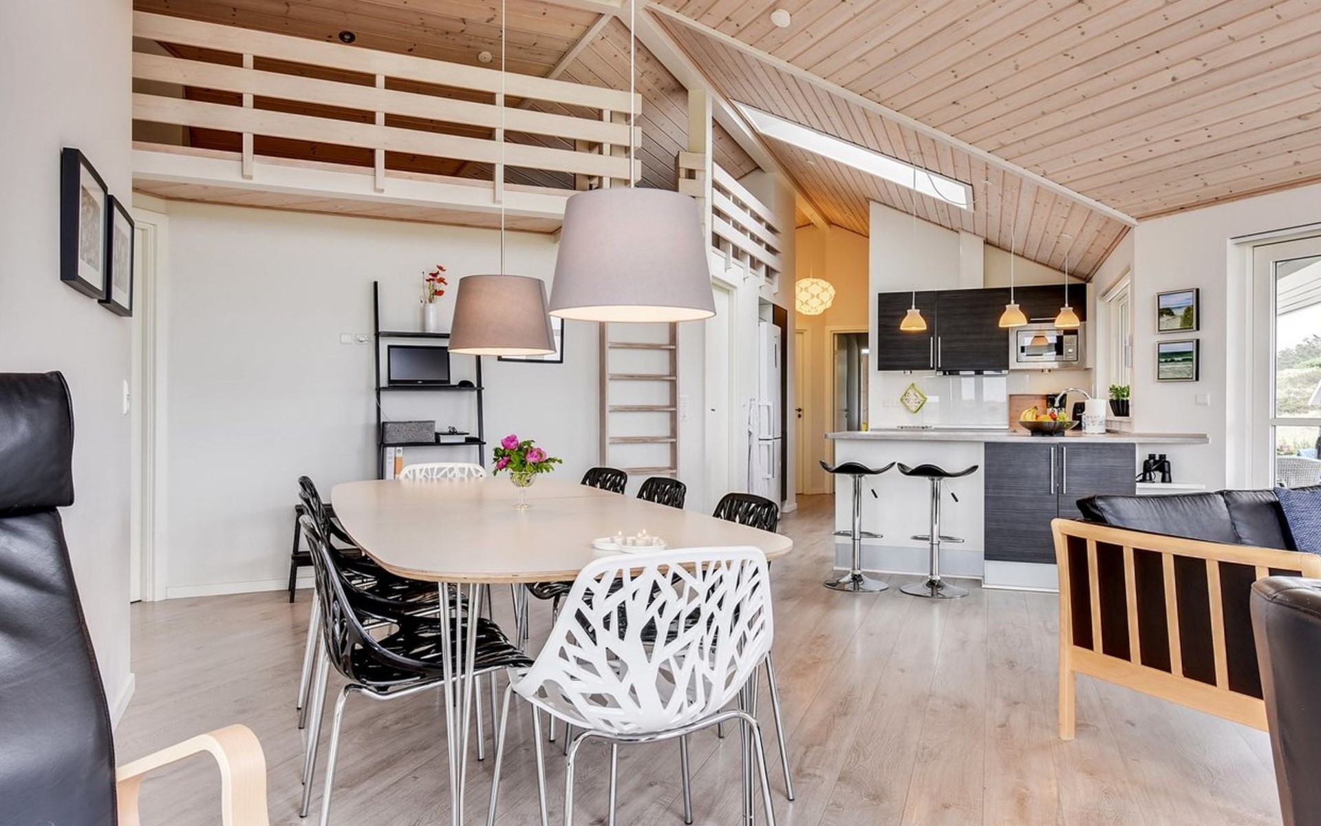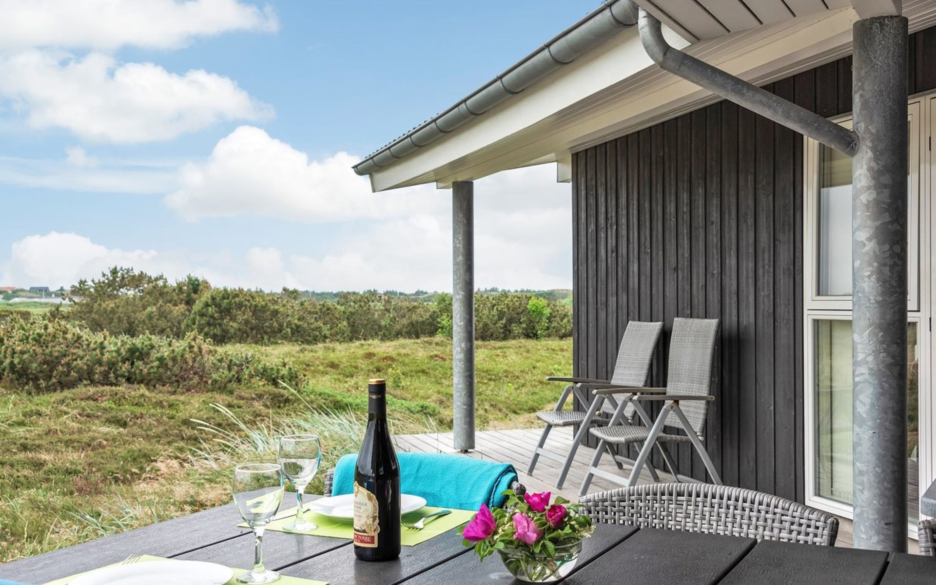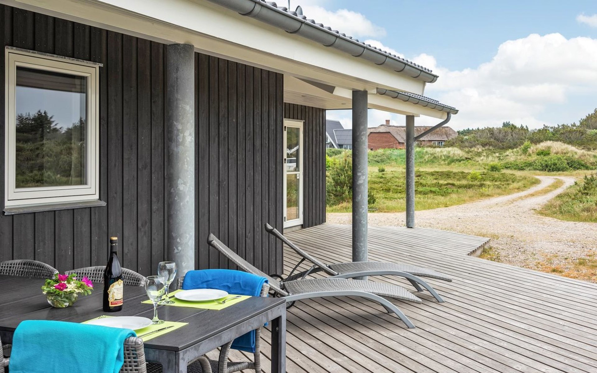 Eengezinswoning, bouwjaar 2012. 1.2 km van zee. Voor alleengebruik: wild terrein 2.050 m2. Terras (60 m2), kinderspeelplaats (schommel). In het huis: sauna, tafelvoetbal, wasmachine, droger. Parkeerplaats bij het huis. Oplaadstation. Levensmiddelenwinkel 1.8 km. Golfterrein 2 km. De eigenaar accepteert geen jeugdgroepen.