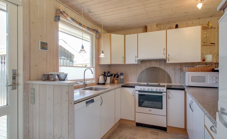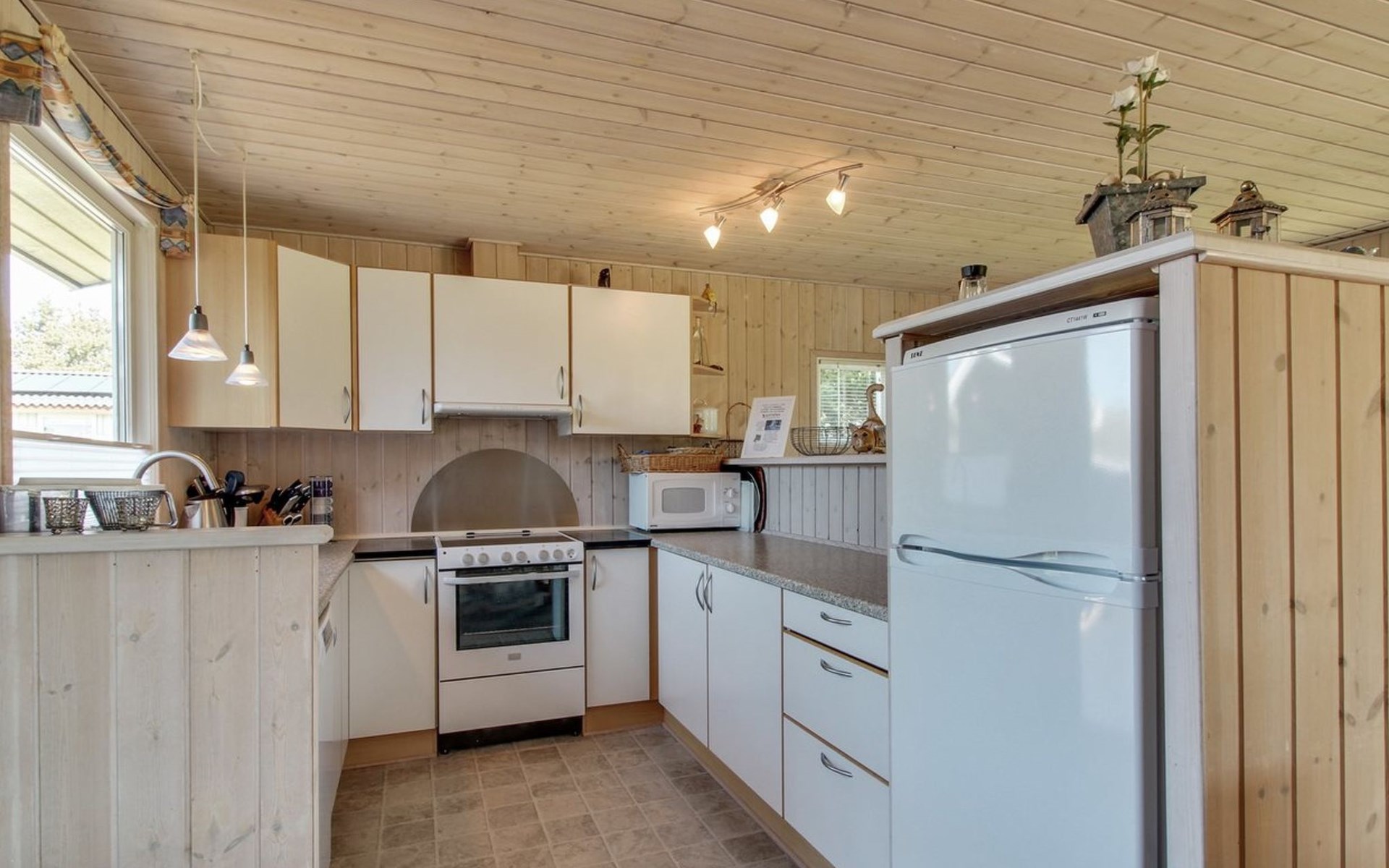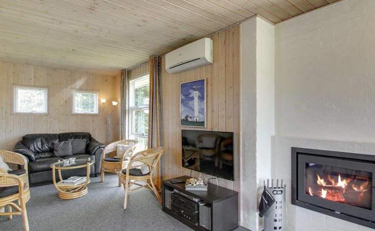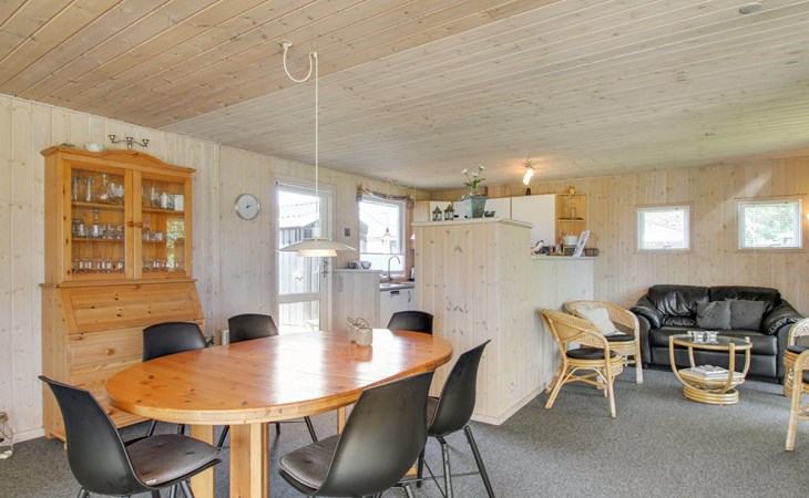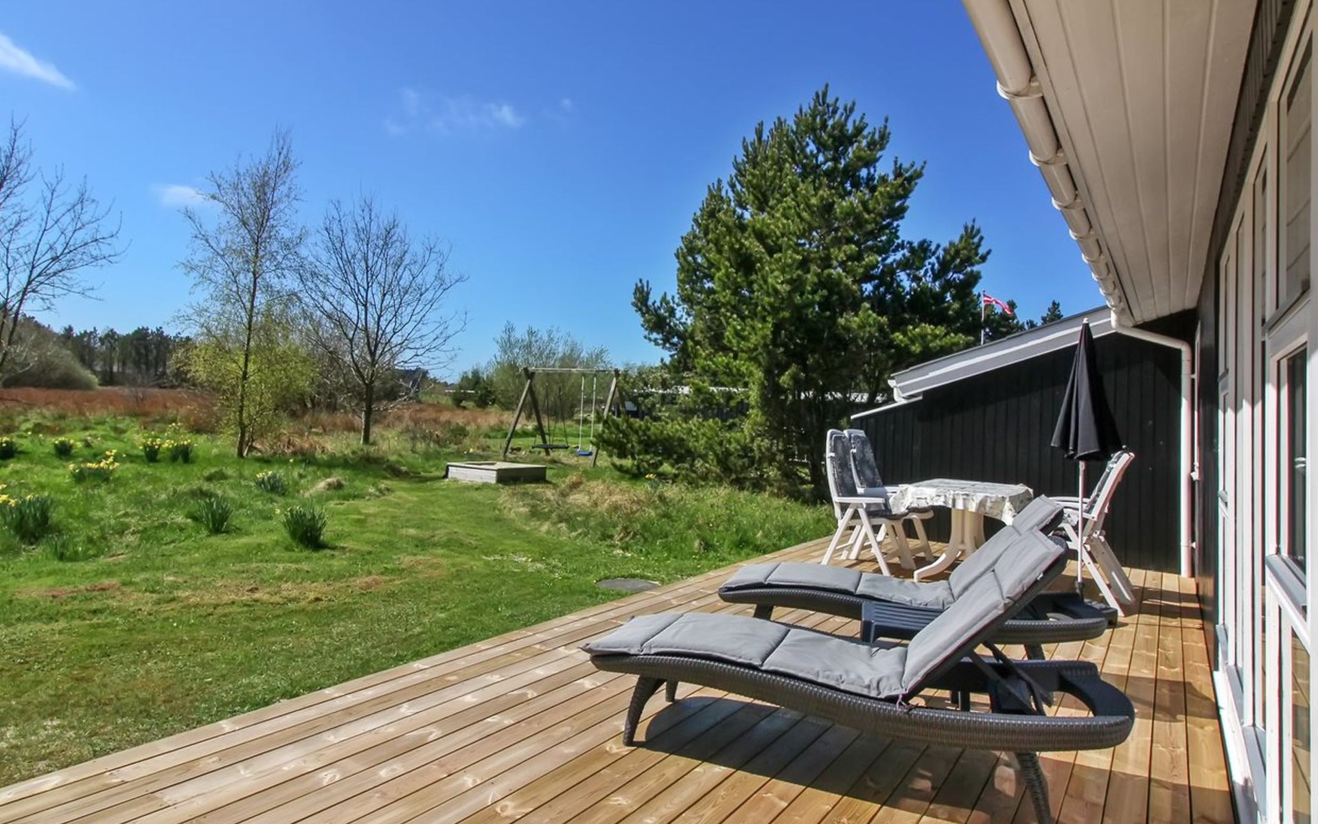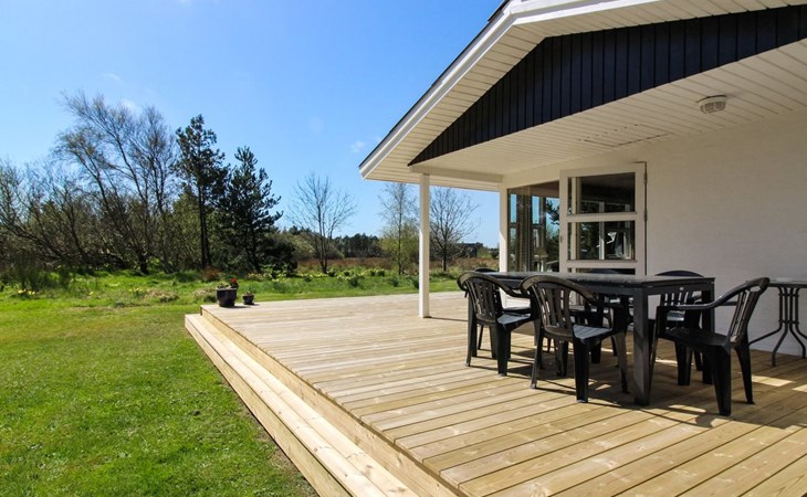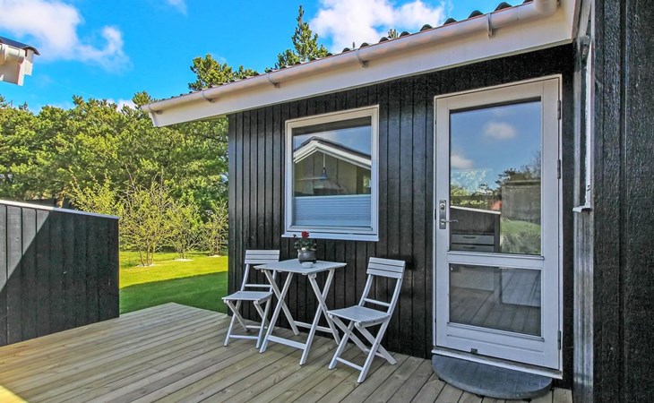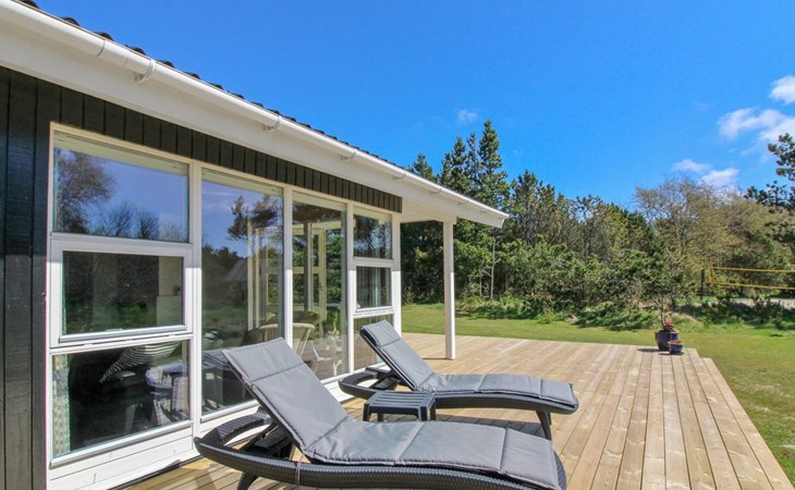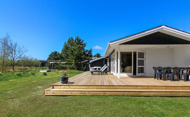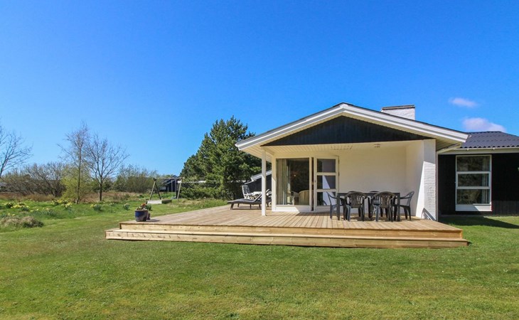Eengezinswoning, bouwjaar 1977. 1.8 km van zee. Voor alleengebruik: wild terrein 1.500 m2. Terras (93 m2), kinderspeelplaats (schommel). In het huis: sauna, wasmachine, droger. Parkeerplaats bij het huis. Levensmiddelenwinkel 800 m. De eigenaar accepteert geen jeugdgroepen.