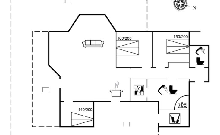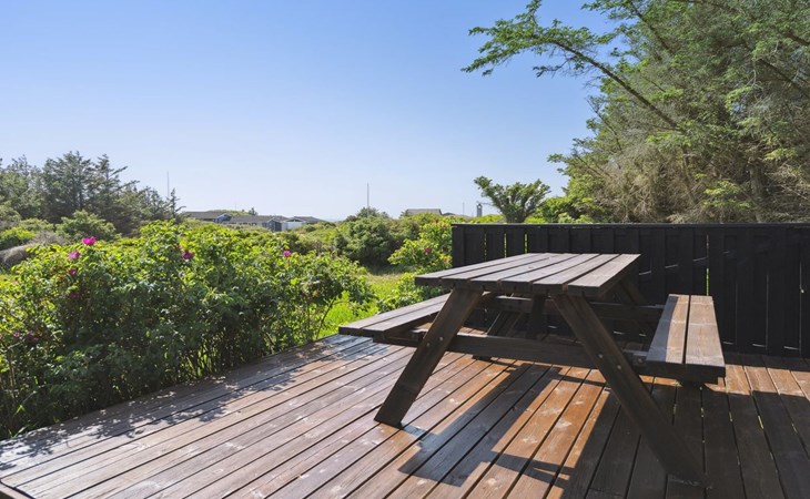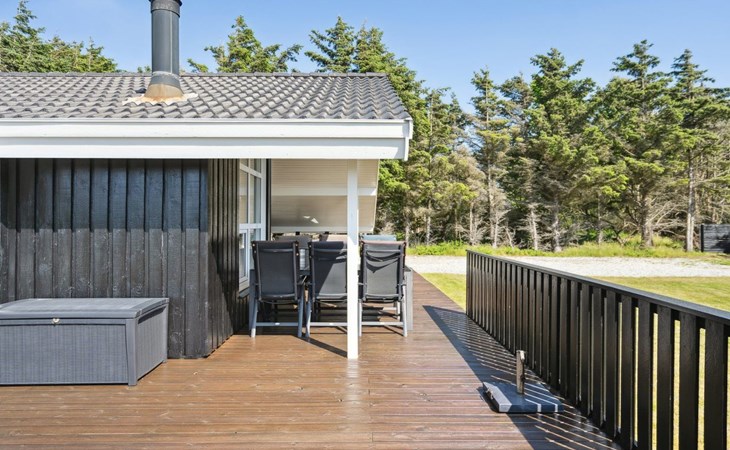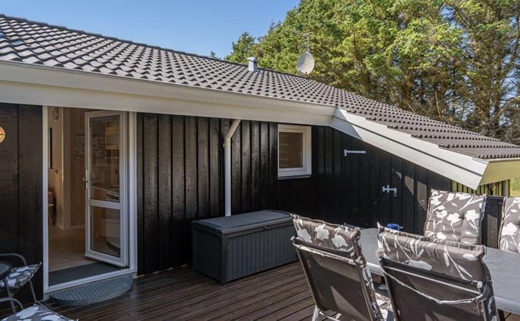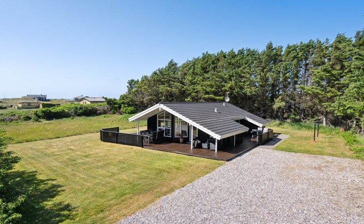 Eengezinswoning, bouwjaar 2000. 375 m van zee. Voor alleengebruik: wild terrein 2.500 m2. Buitendouche, terras (100 m2), kinderspeelplaats (schommel). In het huis: sauna, wasmachine, droger. Parkeerplaats bij het huis. Levensmiddelenwinkel 1.2 km. De eigenaar accepteert geen jeugdgroepen.