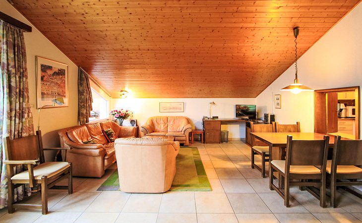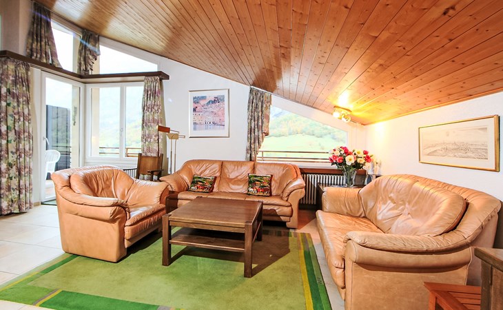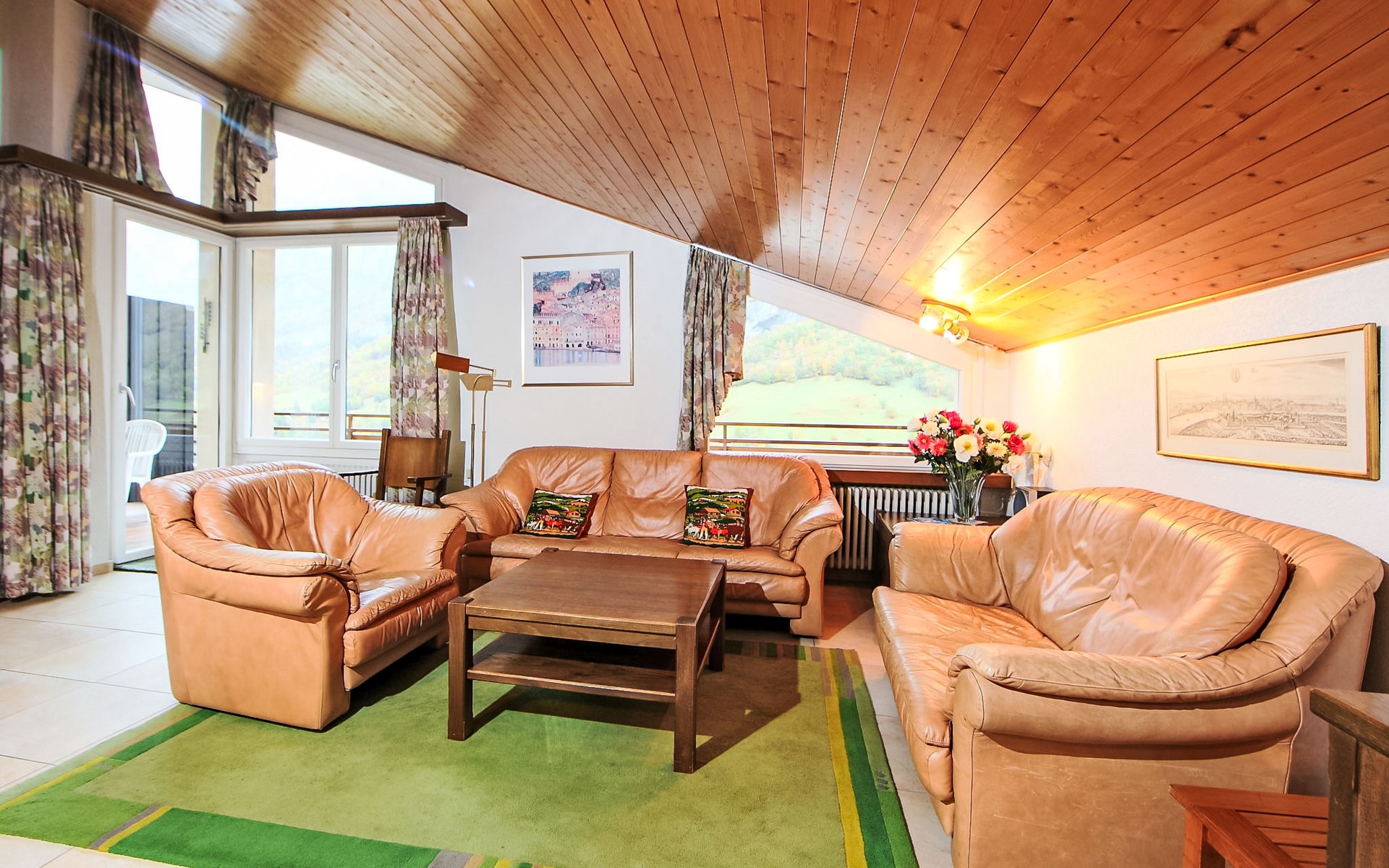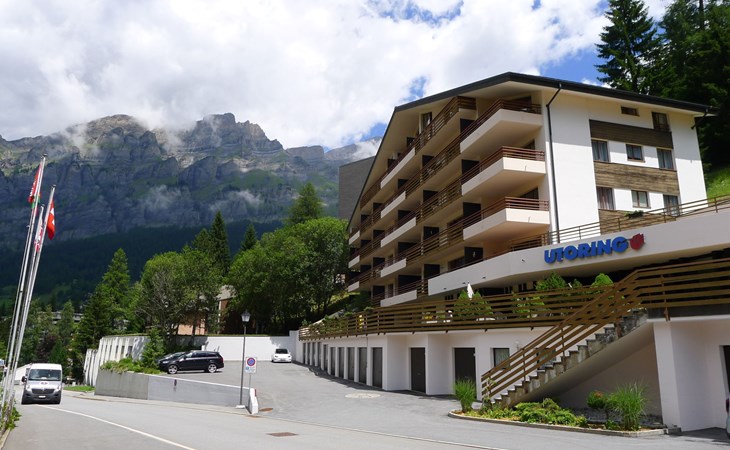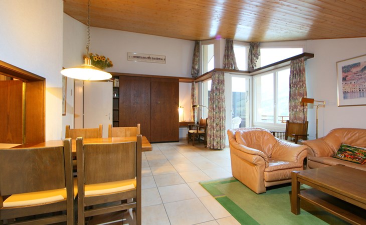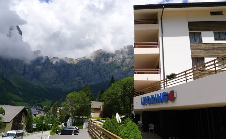 Residentie "Ringstrasse (Utoring)". In de plaats, 500 m van het centrum, 20 m van het skigebied. In het huis: bar, salon, tafeltennis, speelkamer, lift, bergruimte voor fietsen, berging voor ski's, centrale verwarming, wasmachine, droger (extra). Broodjesservice en drankjesservice. Toegangsweg tot aan het huis (bergweg). In de winter sneeuwkettingen aanbevolen, 's winters 4x4 aanbevolen. Parkeerplaats bij het huis, Openbare parkeergarage op 50 m, extra. Levensmiddelenwinkel, supermarkt, restaurant 500 m, bushalte "Leukerbad, Bristol" 250 m, openluchtzwembad 500 m, thermaalbad 300 m. Tennis 500 m, kabelbaan, ski faciliteiten, skipisten 20 m, rodelbaan, langlaufloipe 500 m, ijsbaan 1 km. Bekende skigebieden kunnen gemakkelijk worden bereikt: Leukerbad Torrent. Wandelgebied Gemmi 1 km. Het huis staat op een beboste helling op het zuidwesten, direct naast de Torrent-kabelbanen. Slechts een korte trappenweg scheidt het huis van het dalstation. Parkeermogelijkheid: in de winter parkeerplaats CHF35.00/week, garage CHF 70.00/week, in de zomer parkeerplaats gratis, garage CHF 35.00/week.