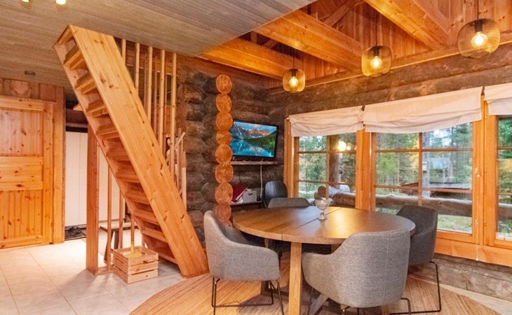 The cabin lies near by all the services, slopes, restaurant, grocery store and Ski Buss stop. Pyhä Ski resort slopes and cross-country skiing tracks can be seen from the windows. Pyhä-Luosto National Park summer trails start only 200 meters away from the cabin.