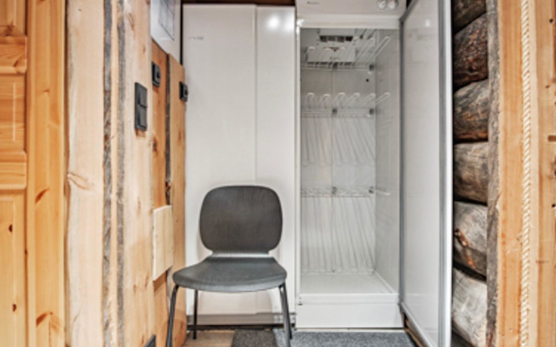 Car parking in front of the cabin and and 1 carport place. Inside the carport there is also a locked space for firewood and skiing equipment.