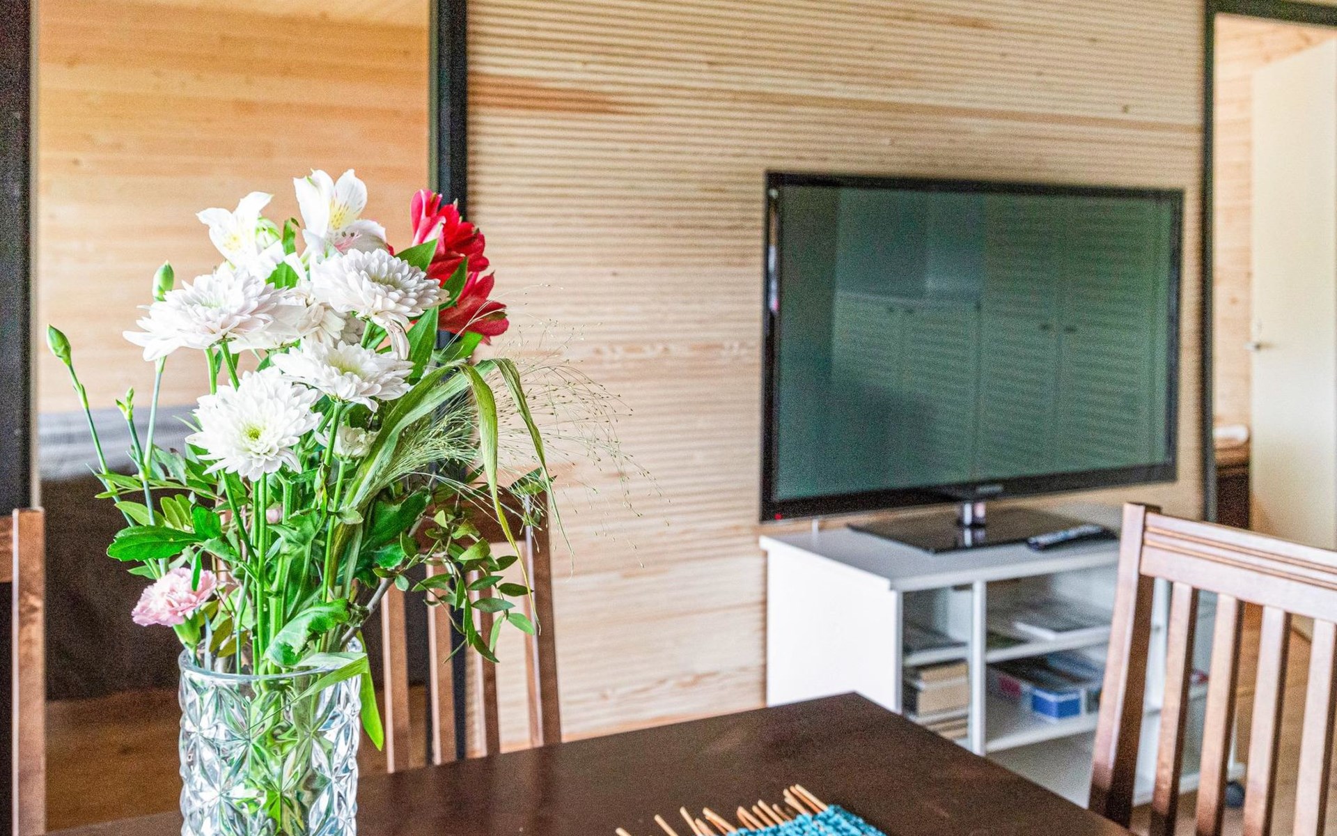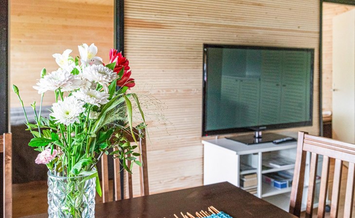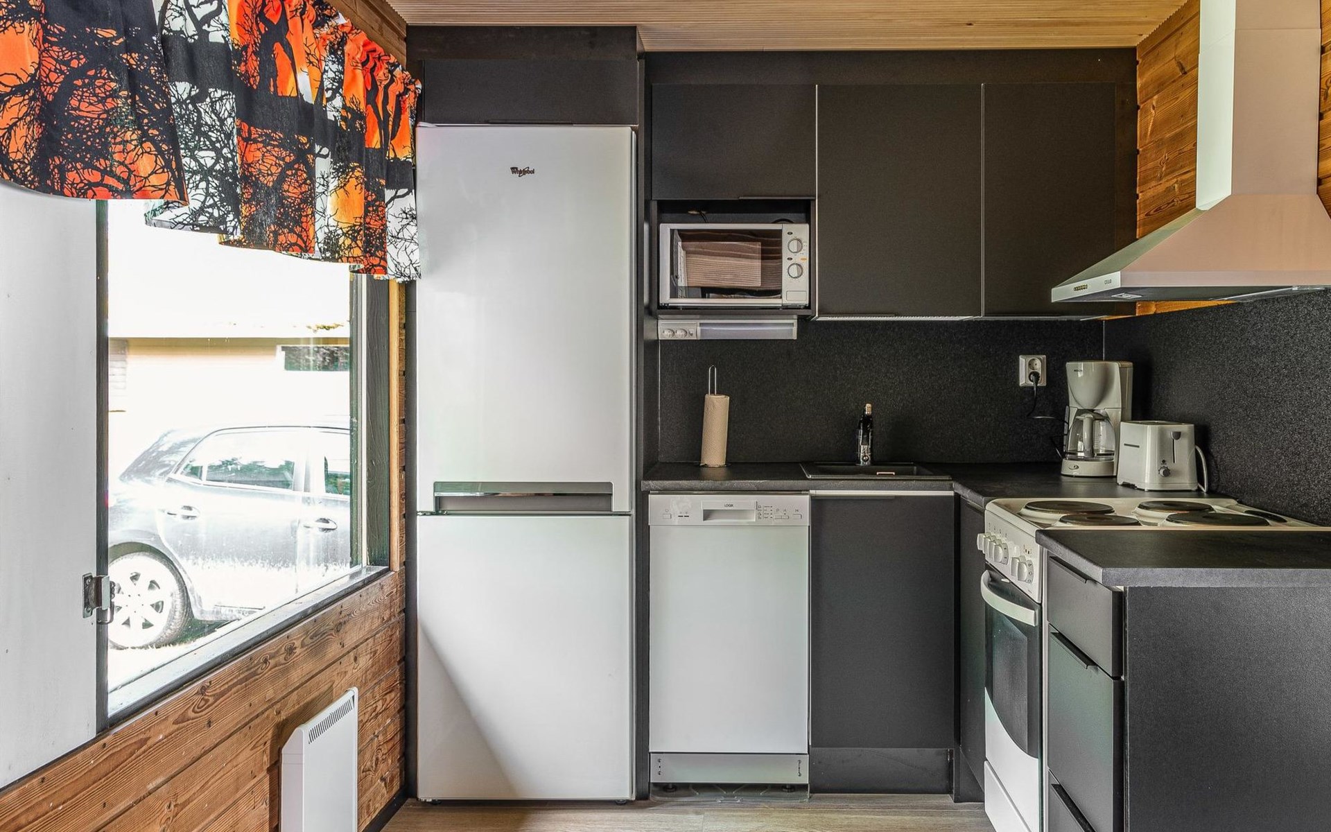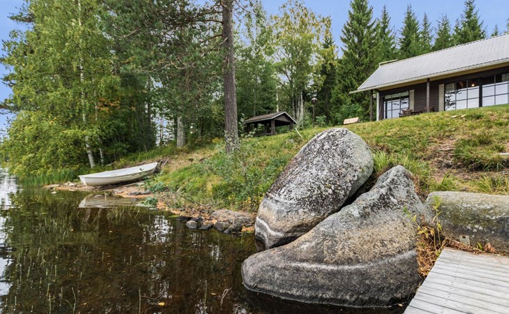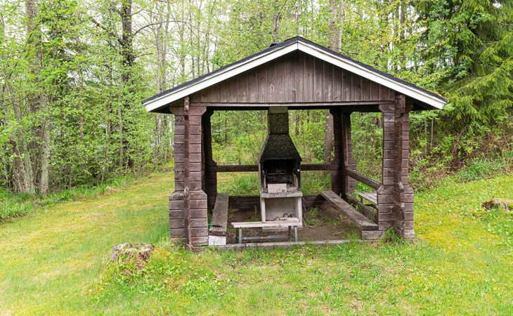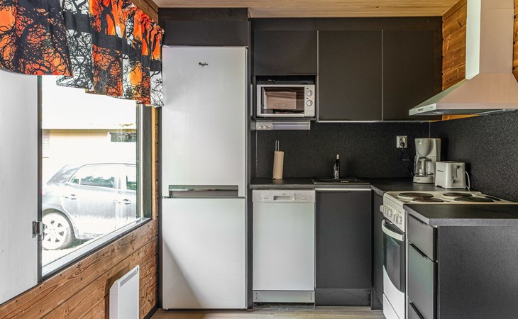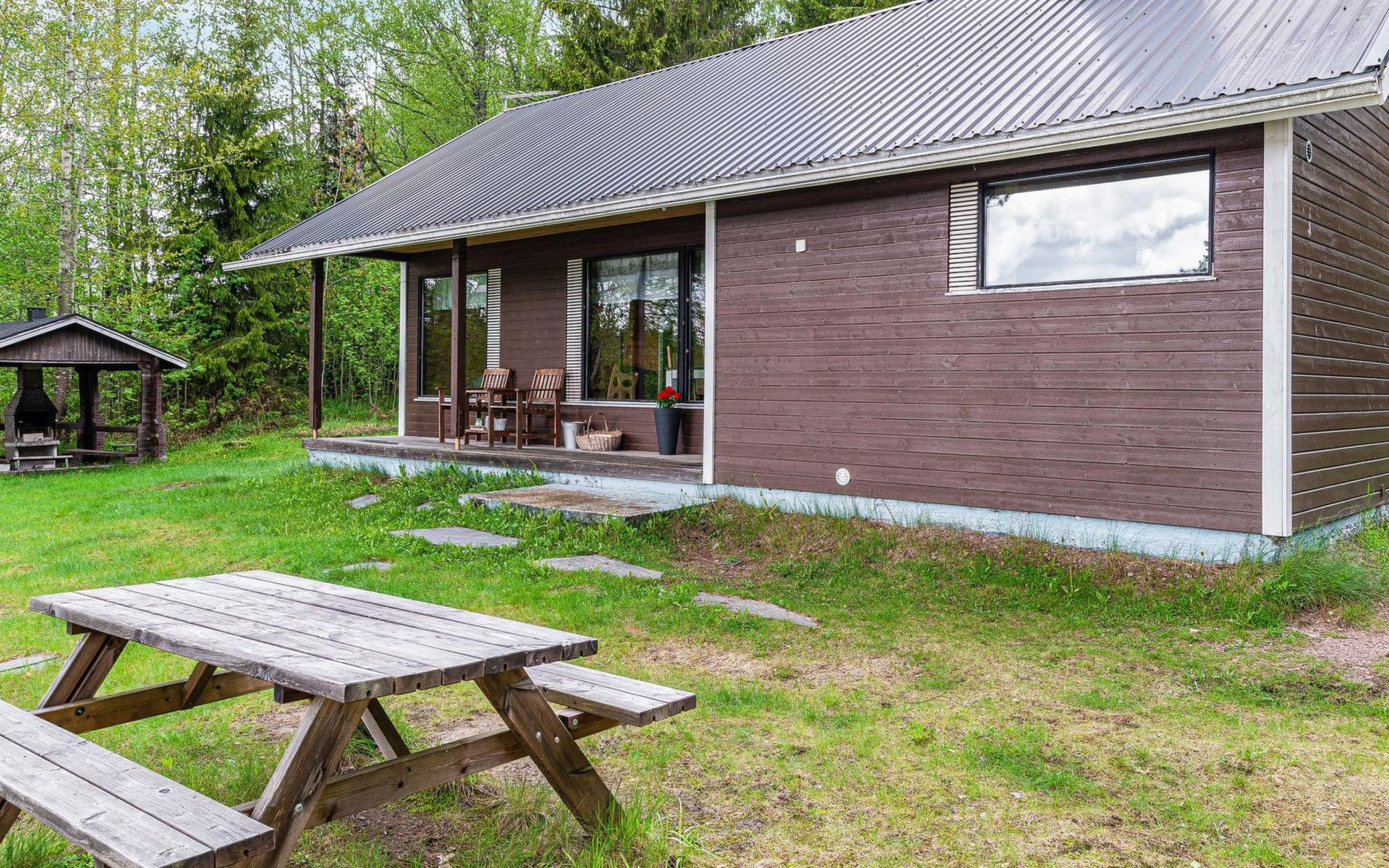 Wooden cabin 1987, renovated 1993 and 2022. Kitchen/living room, 2 bedrooms (one with double bed, another with 2 single beds), sleeping loft with 2 beds, steep stairs, washroom, sauna, open veranda.