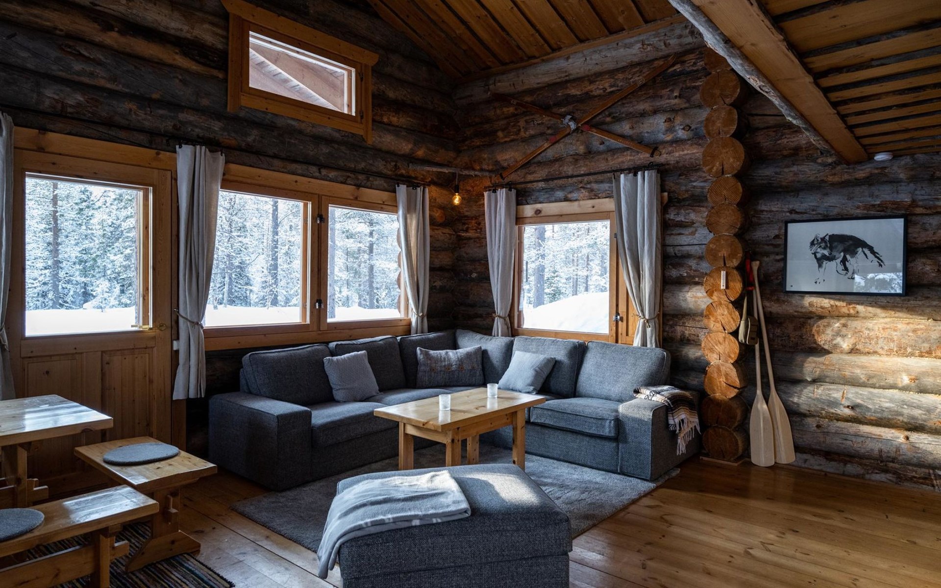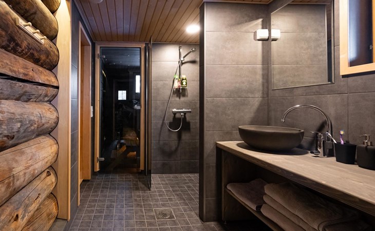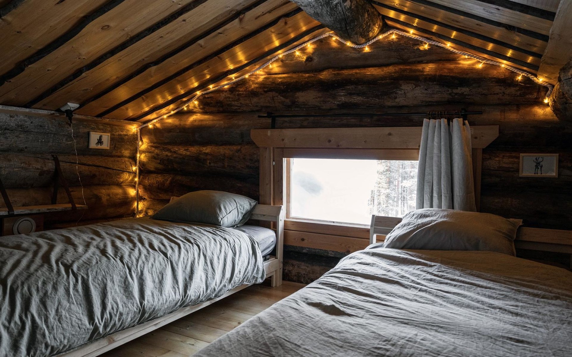 Cabin built of old pine 1993, living room/kitchen, 2 bedrooms, both with two beds, one small bedroom with a bed, low sleeping loft with 2 mattresses. Sauna with electric stove and wash room, terrace. Room for ski maintenance. Drying-washing machine for clothes.