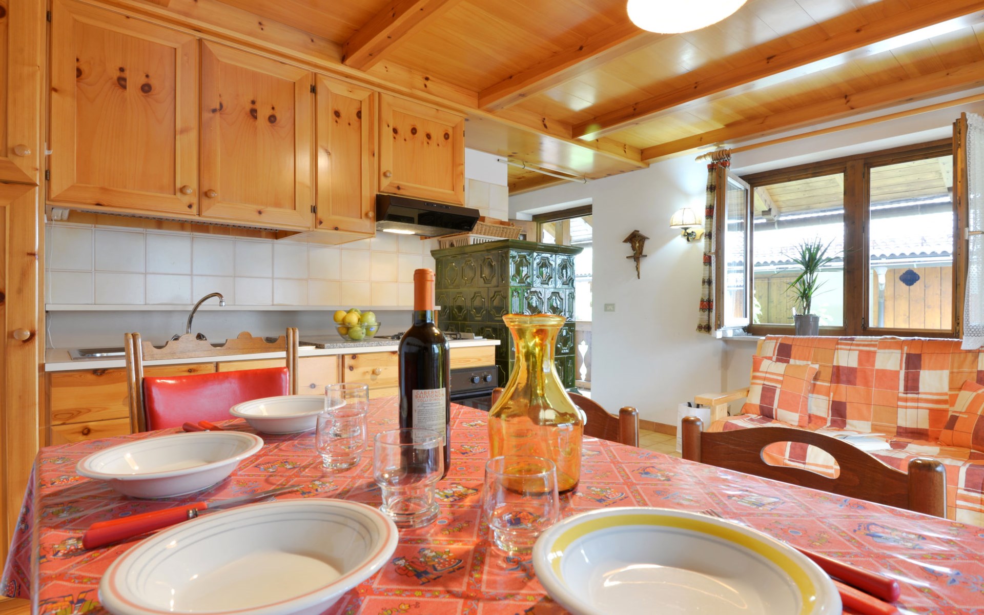 Huis "Villaggio Ladino", omgeven door bomen. In het gehucht Mazzin, 2 km van het centrum van Pera, 3 km van het centrum van Campitello, 5 km van het centrum van Canazei, rustige, zonnige ligging, direct aan de bosrand, 2 km van het skigebied, op het zuiden. Voor medegebruik: tuin. In het huis: centrale verwarming, verwarming alleen beschikbaar van 01.Dec. - 01.Mei.. Winkel 300 m, supermarkt 500 m, restaurant, bar, café 300 m, bushalte 200 m. Skilift 3 km, stoeltjeslift 2 km, skibushalte 200 m. Attracties in de buurt: Sella Ronda 4.5 km, Lago di Carezza 18 km.