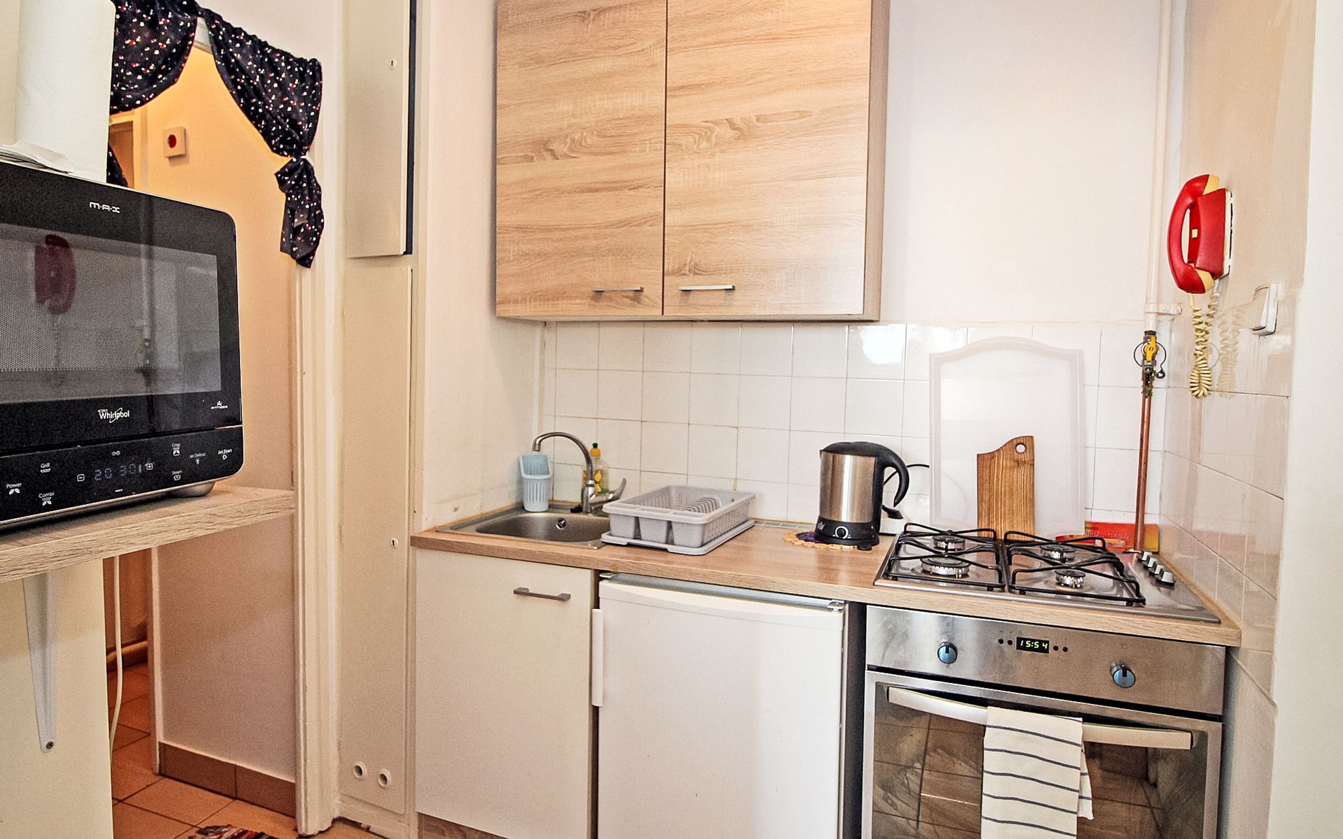 8th district: Groot flatgebouw "Prater". In de plaats, 2 km van het centrum, centrale, rustige ligging, 2 km van de rivier. In het huis: lift, centrale verwarming. Openbare parkeerplaatsen in de straat. Supermarkt 100 m, restaurant 300 m, bar, centrum te voet bereikbaar in 22 minuten, bushalte "9,83 Muzsikus cigányok parkja" 300 m, station "Budapest Keleti" 2 km, metrostation "M3 Klinikak" 600 m, park "Kálvária tér" 500 m. Kinderspeelplaats 150 m. Attracties in de buurt: market hall Vásárcsarnok 2 km, vaci utca - city center 2 km, Liberty statue Szabadság szobor 3.5 km, chain bridge Széchenyi Lánchíd 3.5 km.