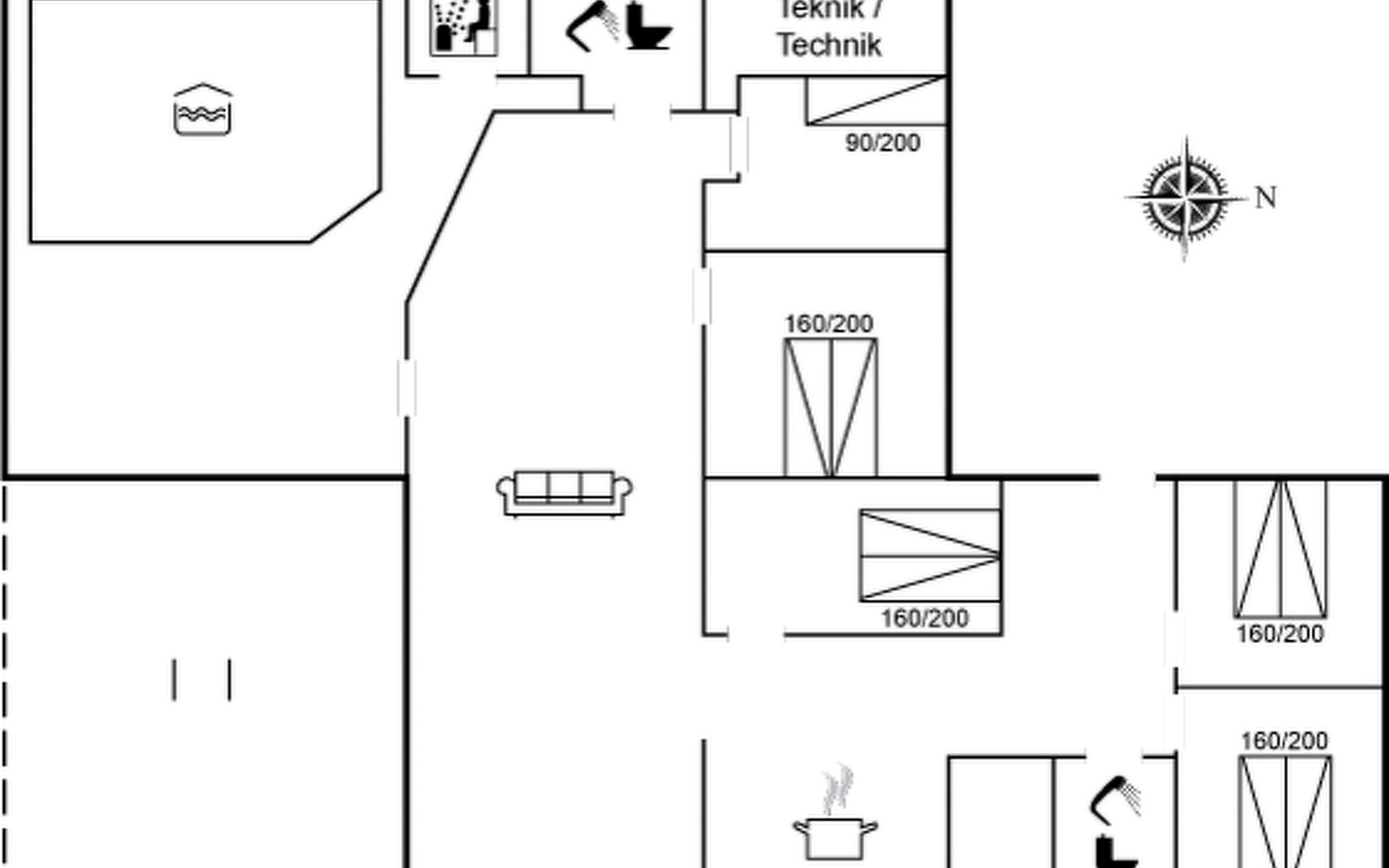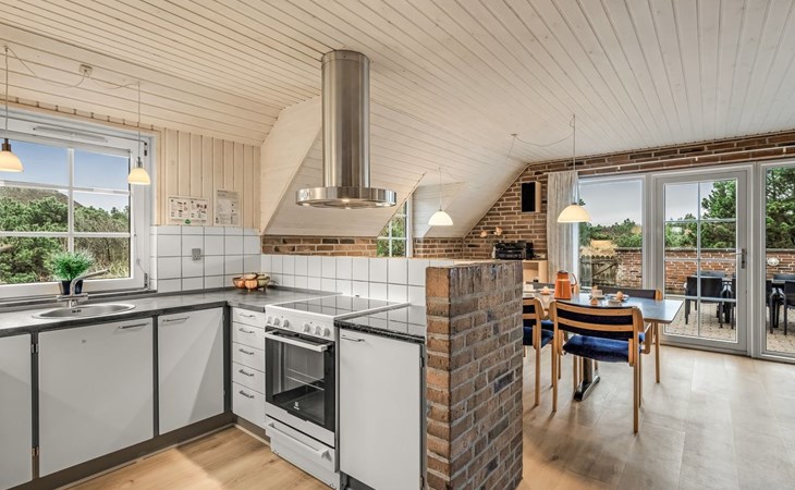 Eengezinswoning, bouwjaar 1992. 700 m van zee. Voor alleengebruik: wild terrein 2.001 m2, overdekt zwembad (3 x 5 m, 1.8.5 m2, 140 - 140 cm diepte). Kinderspeelplaats (schommel). In het huis: sauna, wasmachine, droger. Parkeerplaats bij het huis. Levensmiddelenwinkel 6 km. Golfterrein 7 km. De eigenaar accepteert geen jeugdgroepen.