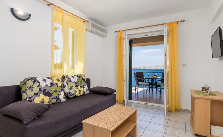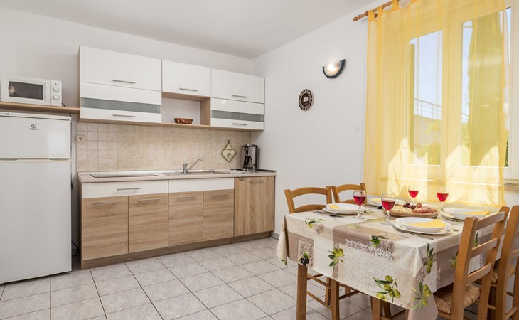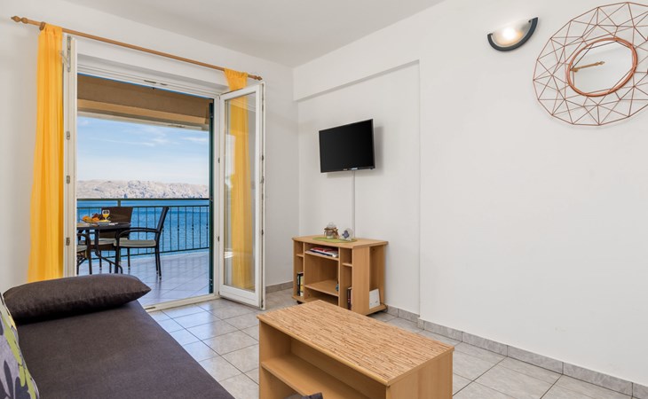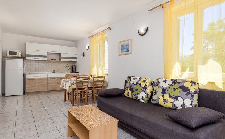 Appartementencomplex "Marina". 1.2 km van het centrum van Senj, 13 km van het centrum van Klenovica, 20 km van het centrum van Novi Vinodolski, 50 m van zee, 50 m van het strand. Voor medegebruik: terrein 600 m2, openluchtzwembad (10 x 3 m, 150 cm diepte, seizoensgebonden beschikbaarheid: 15.Mrt. - 15.Nov.). Buitendouche, terras, tuinmeubelen, barbecue, onderhoud zwembad door de eigenaar/tuinman. In het huis: internetaansluiting, wasmachine (voor medegebruik, extra). Parkeerplaats. Winkel 700 m, restaurant 400 m, bushalte, kiezelstrand 300 m, rotsstrand 50 m.