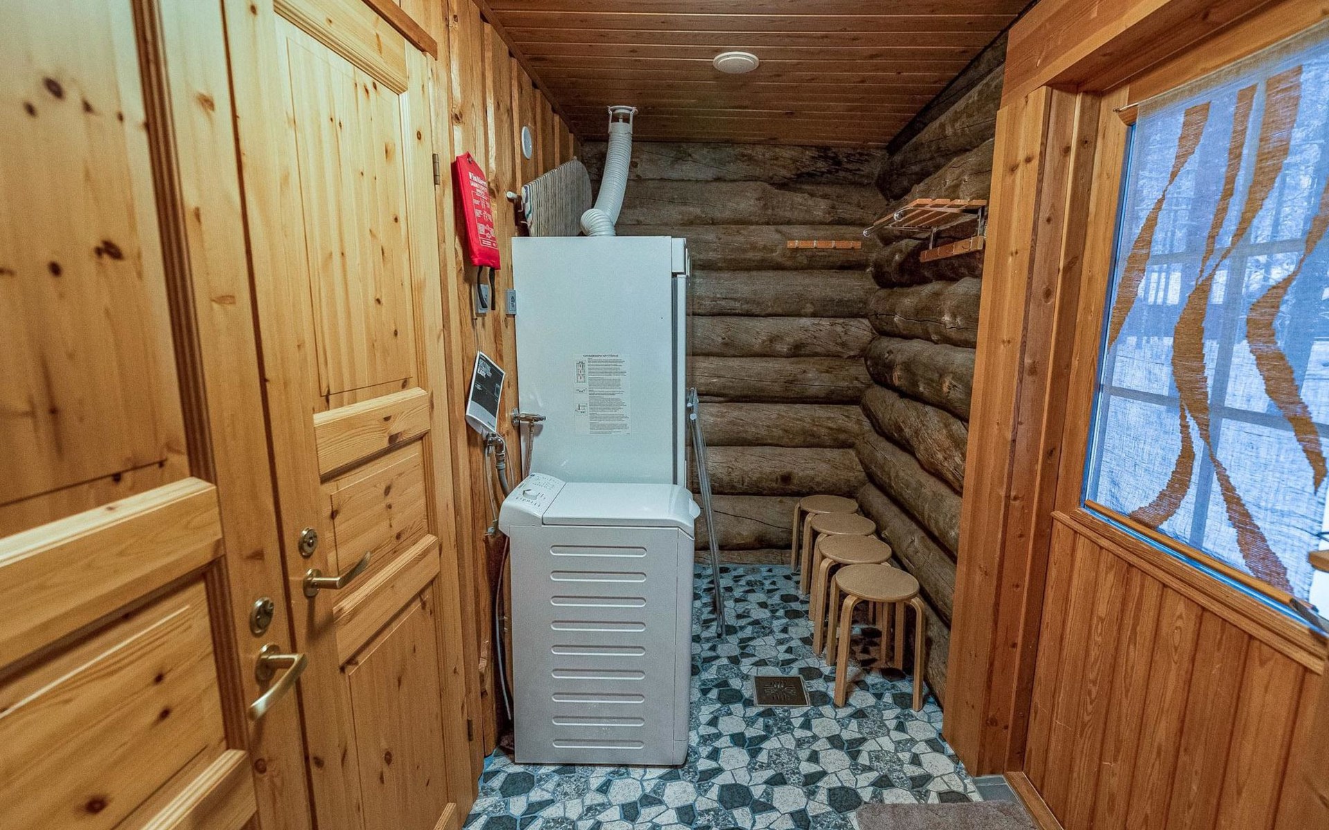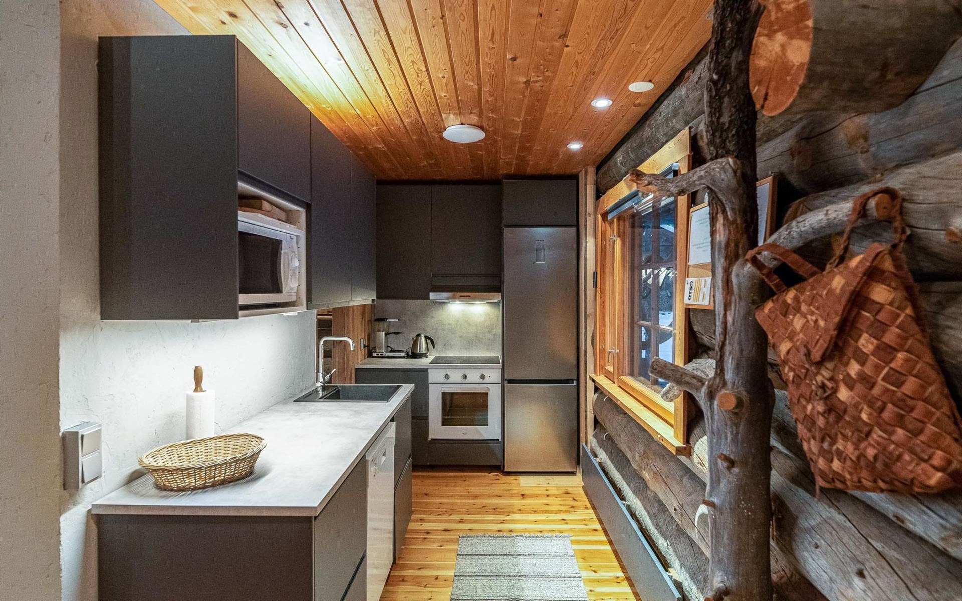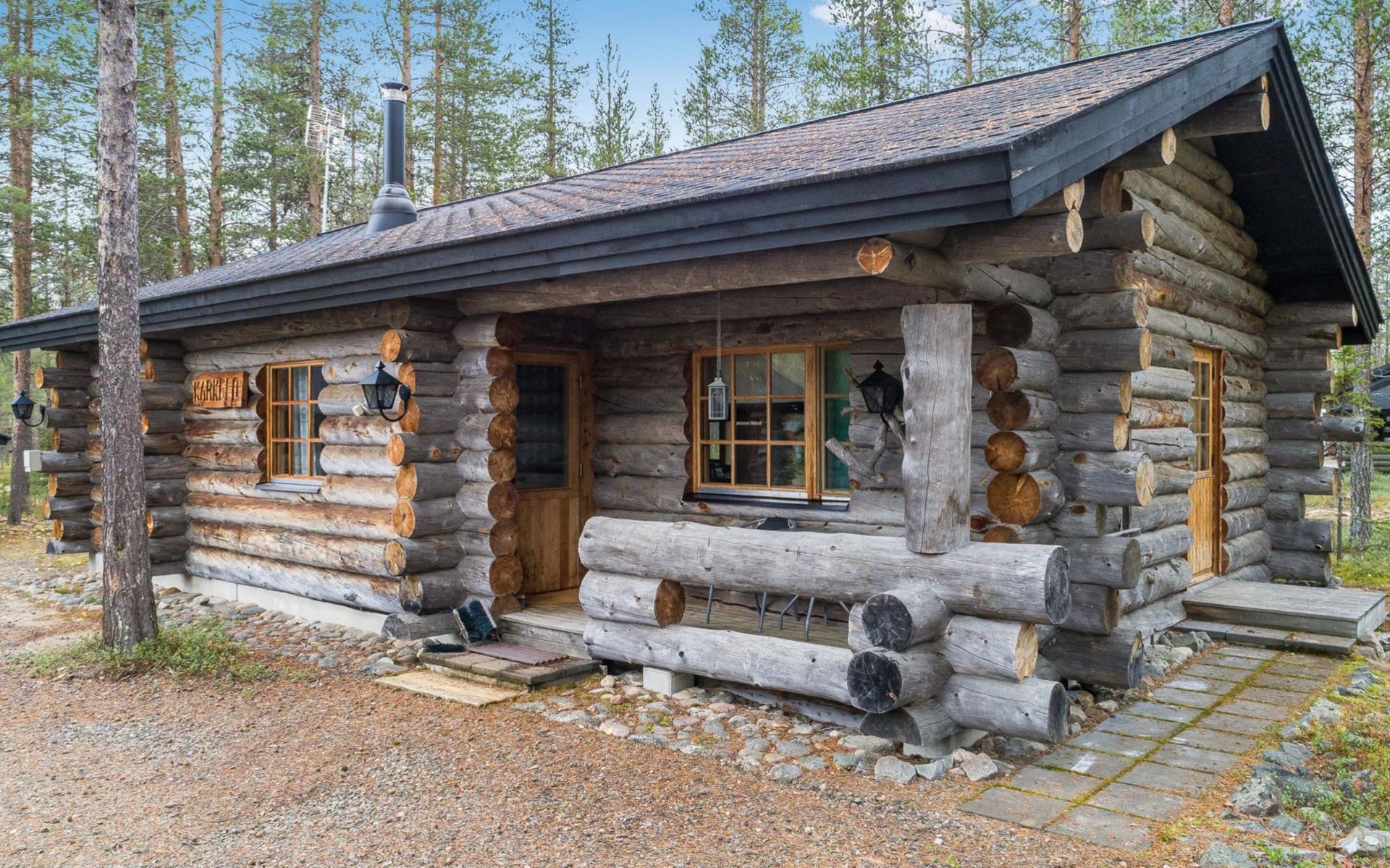 Originally built in 1990 using a traditional technique from full sized kelo logs, this cabin has been fully renovated between 2019-2025. The heart of the cottage is a warm living room equipped with an enchanting soapstone fireplace. This air conditioned cottage has a modern well-equipped kitchen, flat screen TV, Bluetooth audio and wi-fi with fast 5G connection. Charging of an electric car (3.6kw/h) possible.