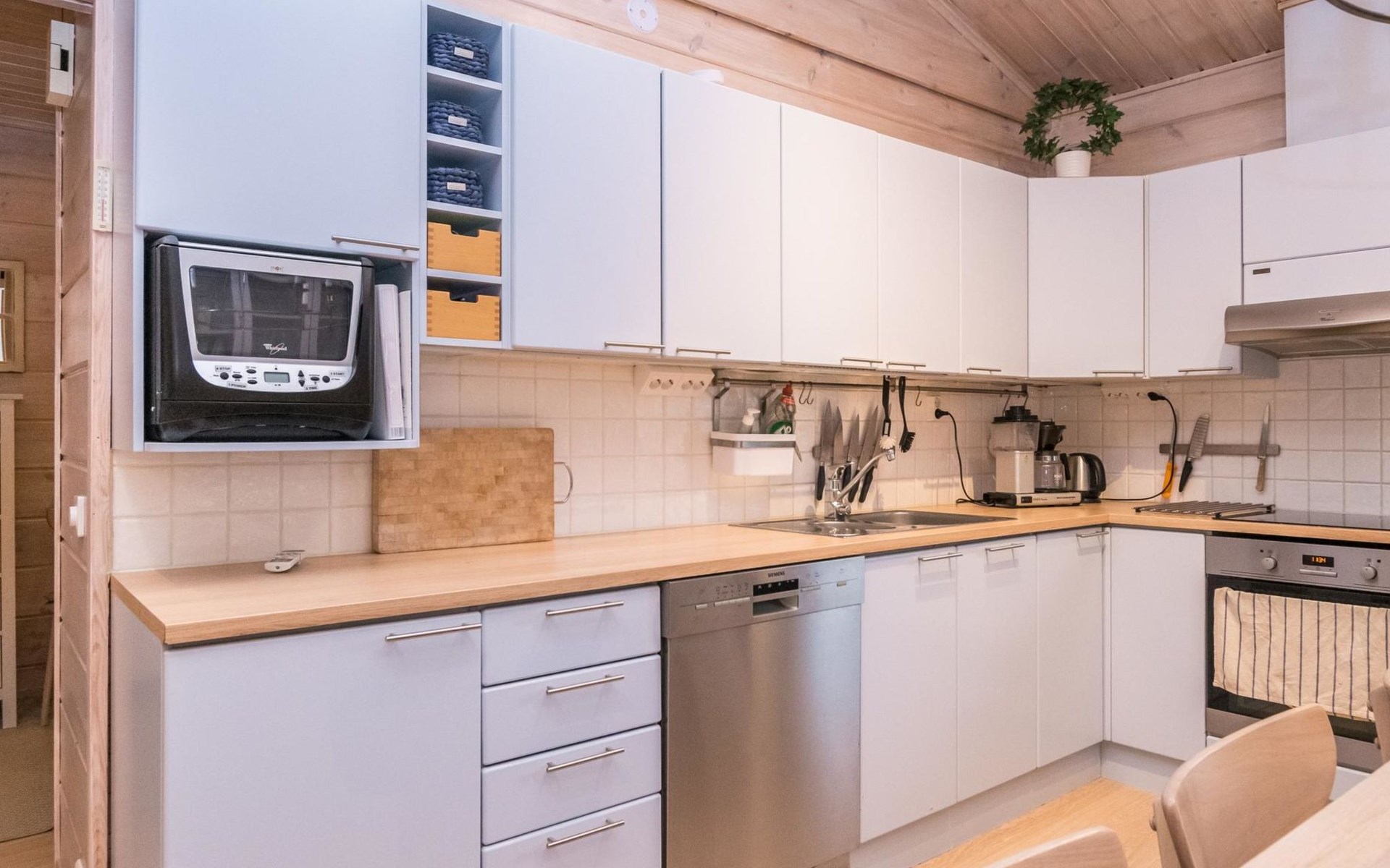 The kitchen of this cabin is extremely good for cooking. There are for example pasta machine, raclette pan, ice cube machine and a big variety of glasses and other dishes in the cabin. Also a Nespresso machine, but remember to bring your own capsules.