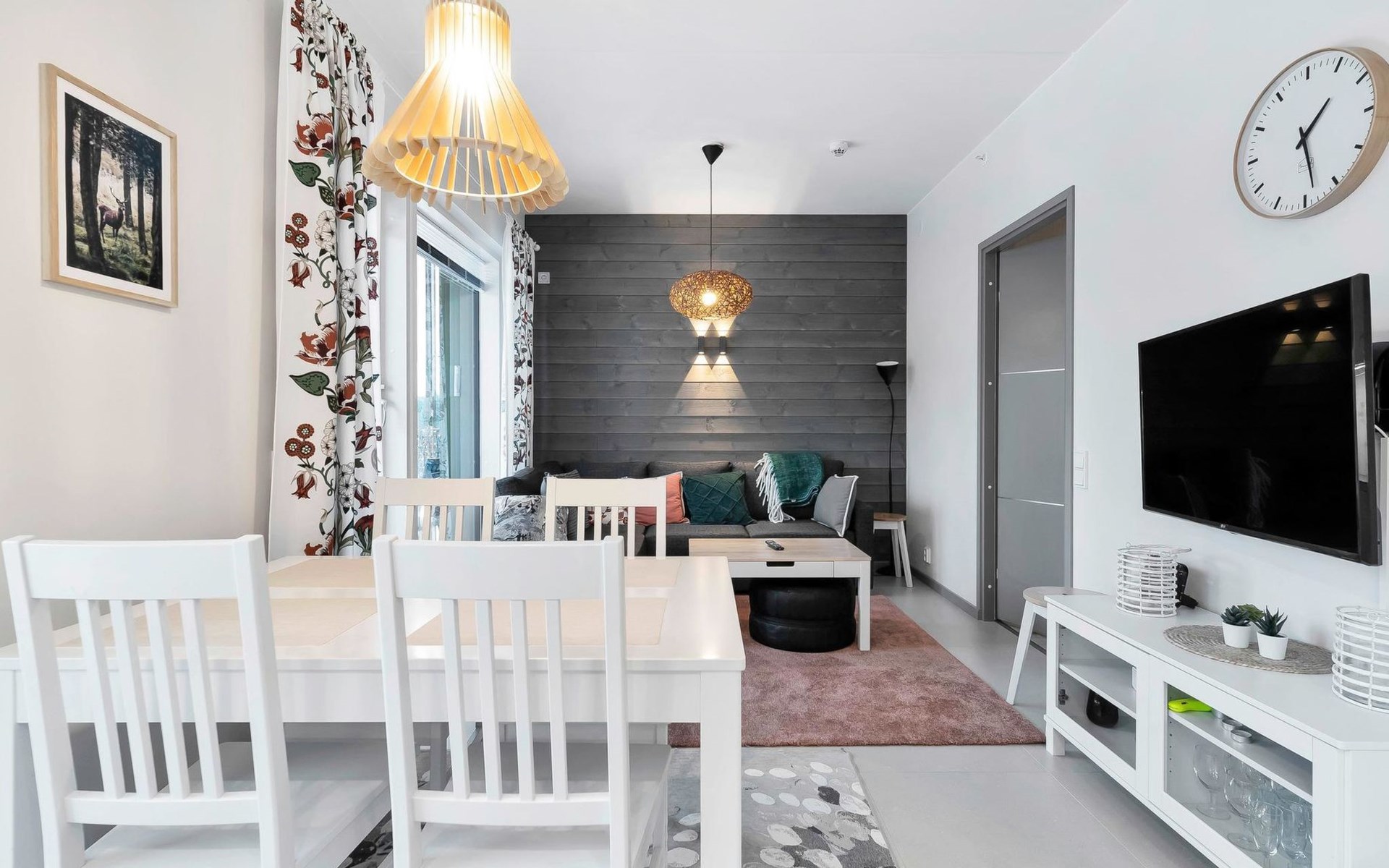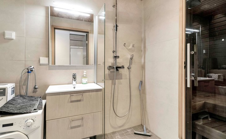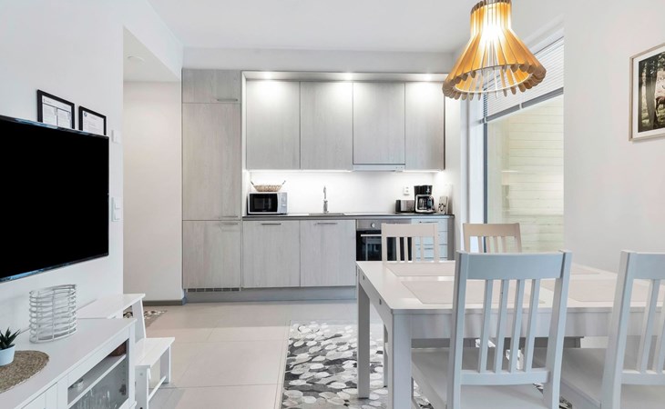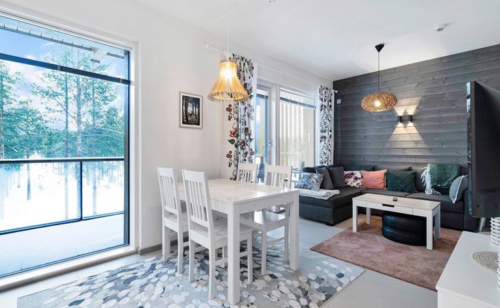 In this fresh and practical apartment you will spend a successful holiday. Both, outdoor activities and services of Levi tourist center are just around the corner. Own car is not necessary while making holiday in Tunturinlaita, since distance to the ski slopes and numerous services of Levi tourist center is walkable in a minute. The cross-country ski trail and the outdoor trail (during snow-free season) literally run next to the apartment.
