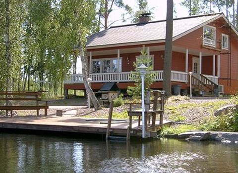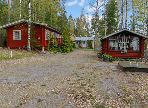 Kelo log cabin, built in 1990. The cabin has three bedrooms, two of them with a bunk bed (lower bed 160 cm, upper bed 140 cm wide), the third with a double bed (140 cm). Living room kitchen, sauna (wood sauna stove), washroom/WC and covered terrace.