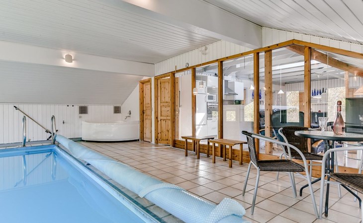 Eengezinswoning, bouwjaar 1977. 3.1 km van zee. Voor alleengebruik: wild terrein 3.000 m2, overdekt zwembad (3 x 5 m, 1.9.5 m2, 120 - 120 cm diepte). Terras (30 m2), kinderspeelplaats. In het huis: sauna, trampoline, wasmachine, droger. Parkeerplaats bij het huis. Levensmiddelenwinkel 3.4 km. De eigenaar accepteert geen jeugdgroepen.