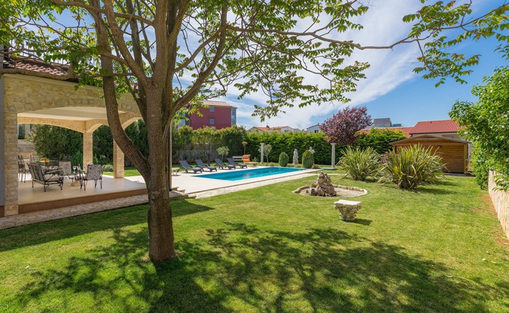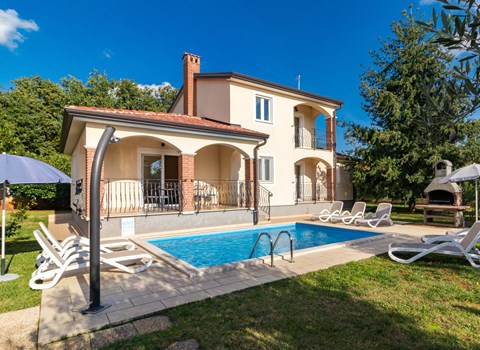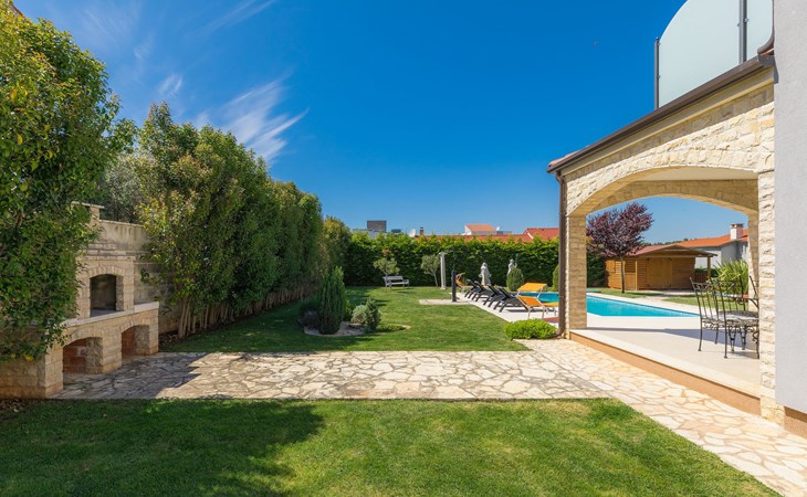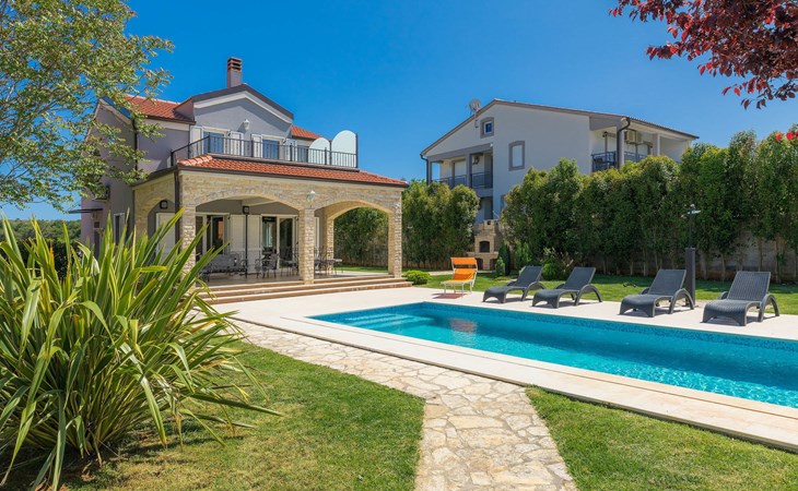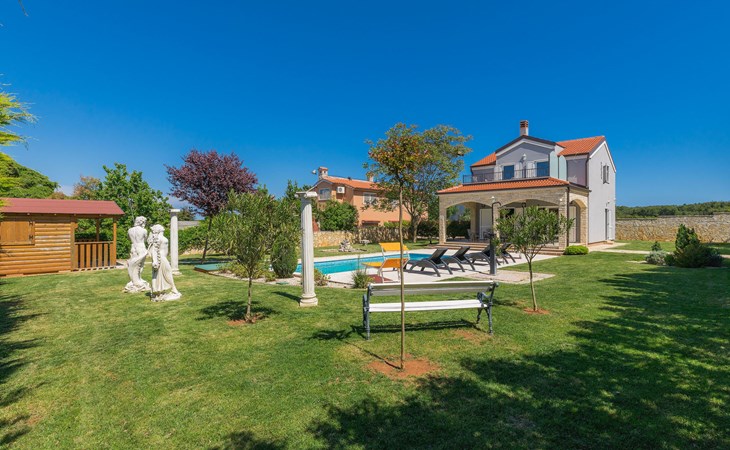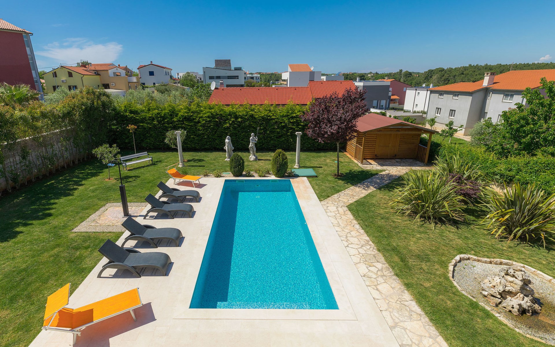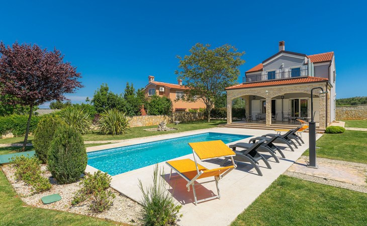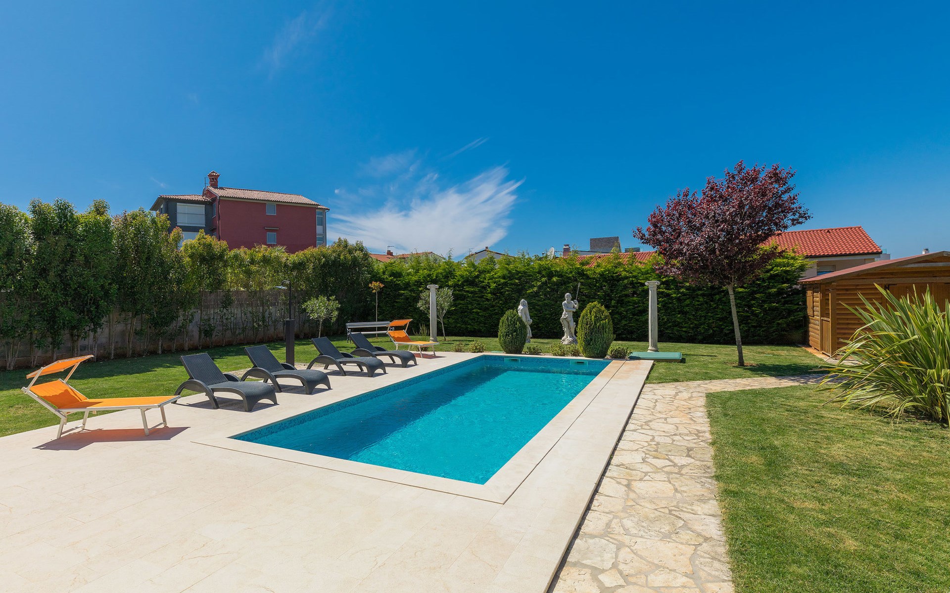 Eengezinswoning "Libera", van 2 verdiepingen, bouwjaar 2016. 5 km van het centrum van Pula, 4 km van het centrum van Premantura, 500 m van zee, 2 km van het strand. Voor alleengebruik: terrein 900 m2 (omheind) met gazon, openluchtzwembad hoekig (9 x 3 m, 31 m2, 150 cm diepte, seizoensgebonden beschikbaarheid: 01.Mei. - 01.Okt.) met trap. Buitendouche, terras, barbecue. In het huis: internetaansluiting, alarmsysteem, wasmachine. Parkeerplaats (voor 2 auto's) op het terrein. Supermarkt 1 km, restaurant 5 km, bushalte 750 m, kiezelstrand 2 km.