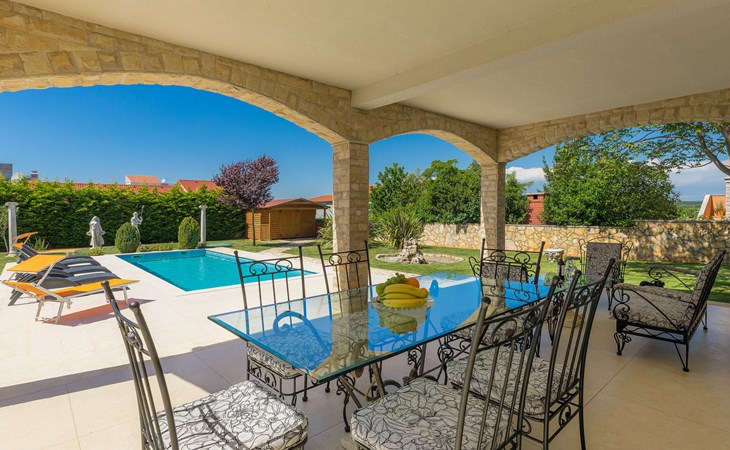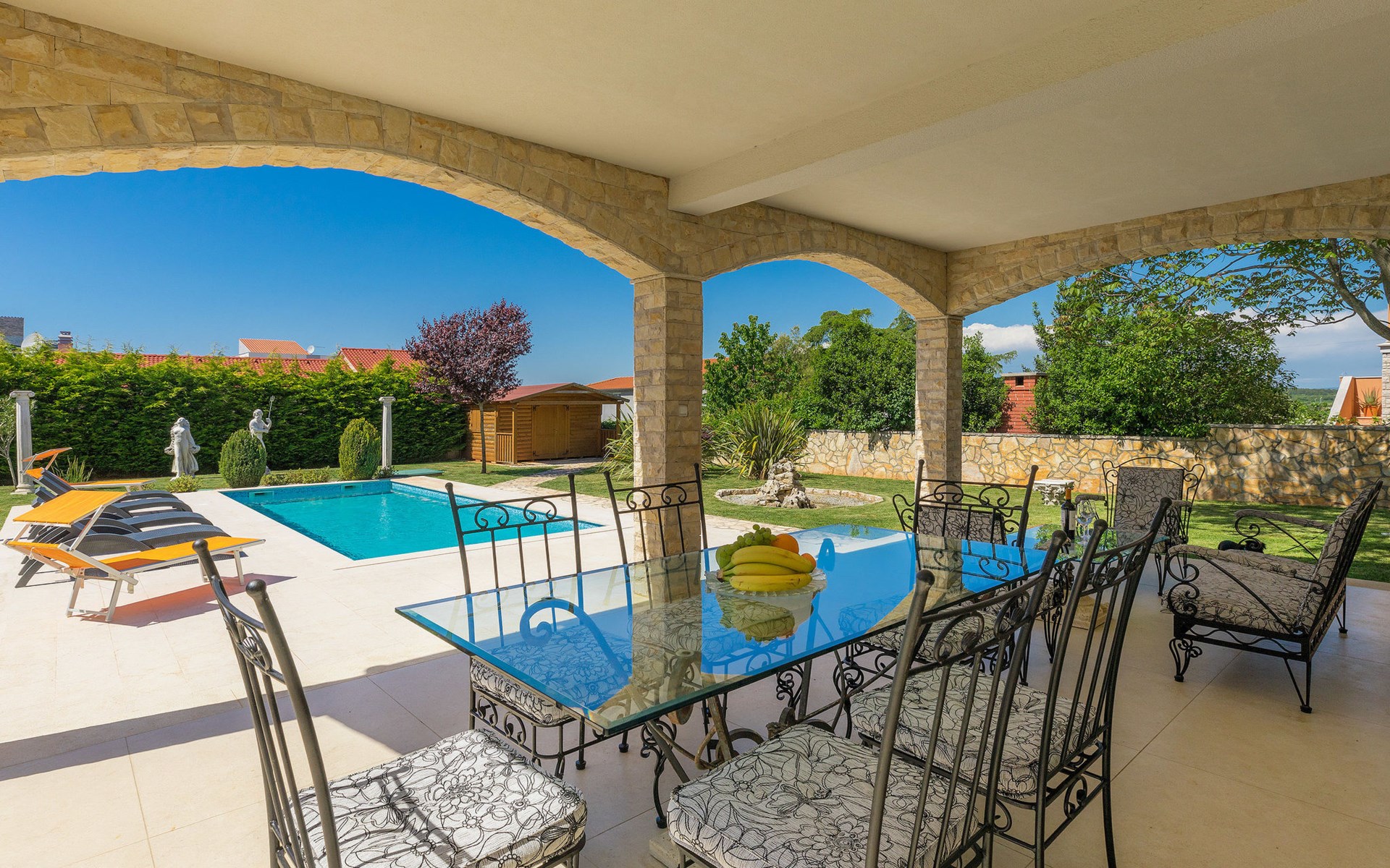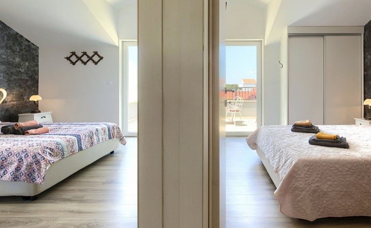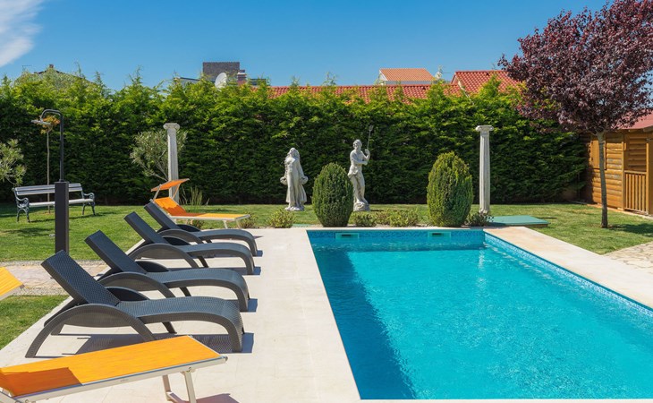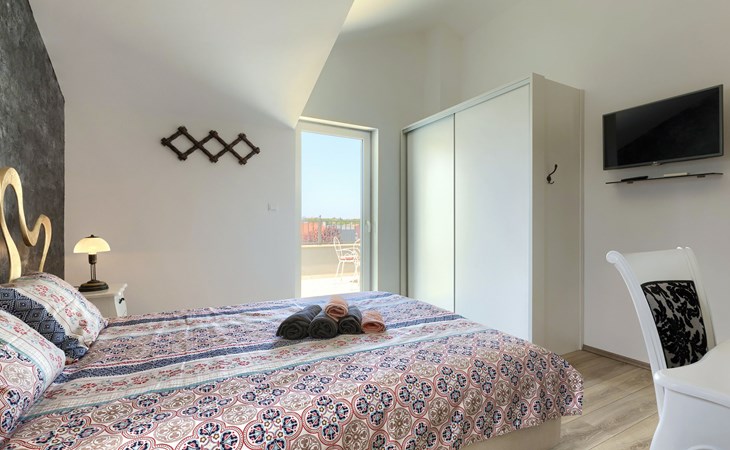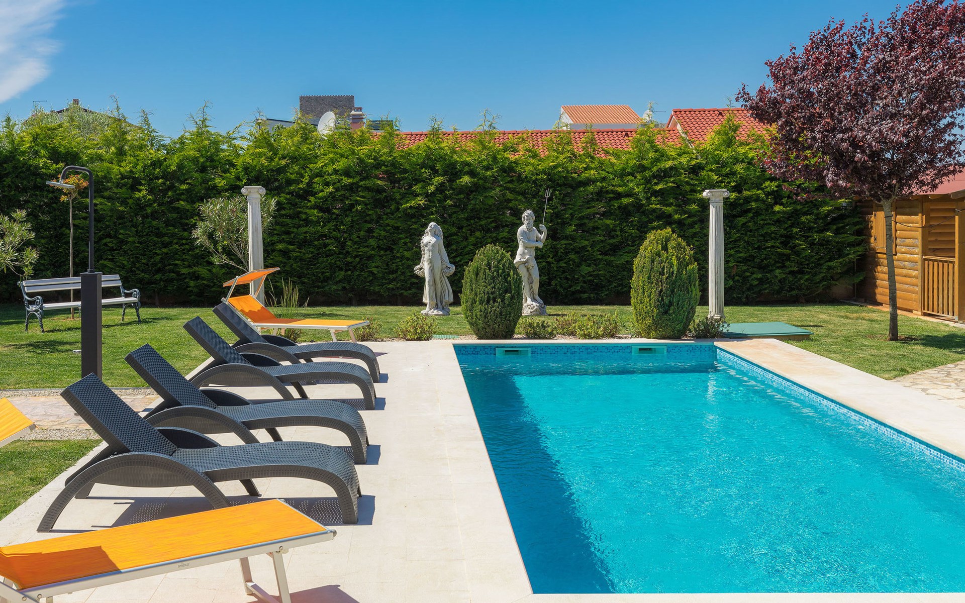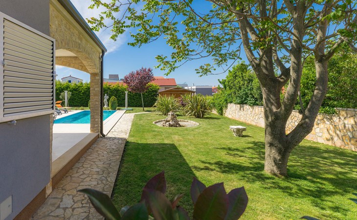 Eengezinswoning "Libera", van 2 verdiepingen, bouwjaar 2016. 5 km van het centrum van Pula, 4 km van het centrum van Premantura, 500 m van zee, 2 km van het strand. Voor alleengebruik: terrein 900 m2 (omheind) met gazon, openluchtzwembad hoekig (9 x 3 m, 31 m2, 150 cm diepte, seizoensgebonden beschikbaarheid: 01.Mei. - 01.Okt.) met trap. Buitendouche, terras, barbecue. In het huis: internetaansluiting, alarmsysteem, wasmachine. Parkeerplaats (voor 2 auto's) op het terrein. Supermarkt 1 km, restaurant 5 km, bushalte 750 m, kiezelstrand 2 km.