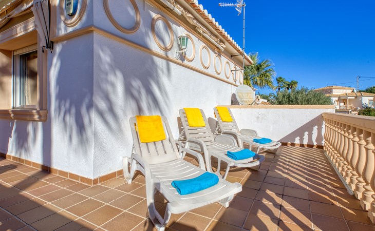 Zeer groot, zeer mooi, zeer comfortabele villa "Villa Toscana", van 3 verdiepingen. In de plaats, 2.5 km van het centrum van Denia, rustige, zonnige ligging, 2 km van zee, 2 km van het strand. Voor alleengebruik: terrein 380 m2, groot, mooie, verzorgde tuin met planten en bomen, openluchtzwembad (3 x 7 m, 110 - 180 cm diepte, seizoensgebonden beschikbaarheid: 01.Jan. - 31.Dec.) met trap. Buitendouche, hot tub, patio, prieel, grill, overdekte parkeerplaats op het terrein. Supermarkt 1.5 km, restaurant 650 m, bar, café 550 m, bushalte 2.8 km, station 2.8 km, veerboot 4.4 km, zandstrand "Marineta Casiana" 2 km. Jachthaven 2 km, surfschool 2 km, zeilschool 2 km. De eigenaar accepteert geen jeugdgroepen.