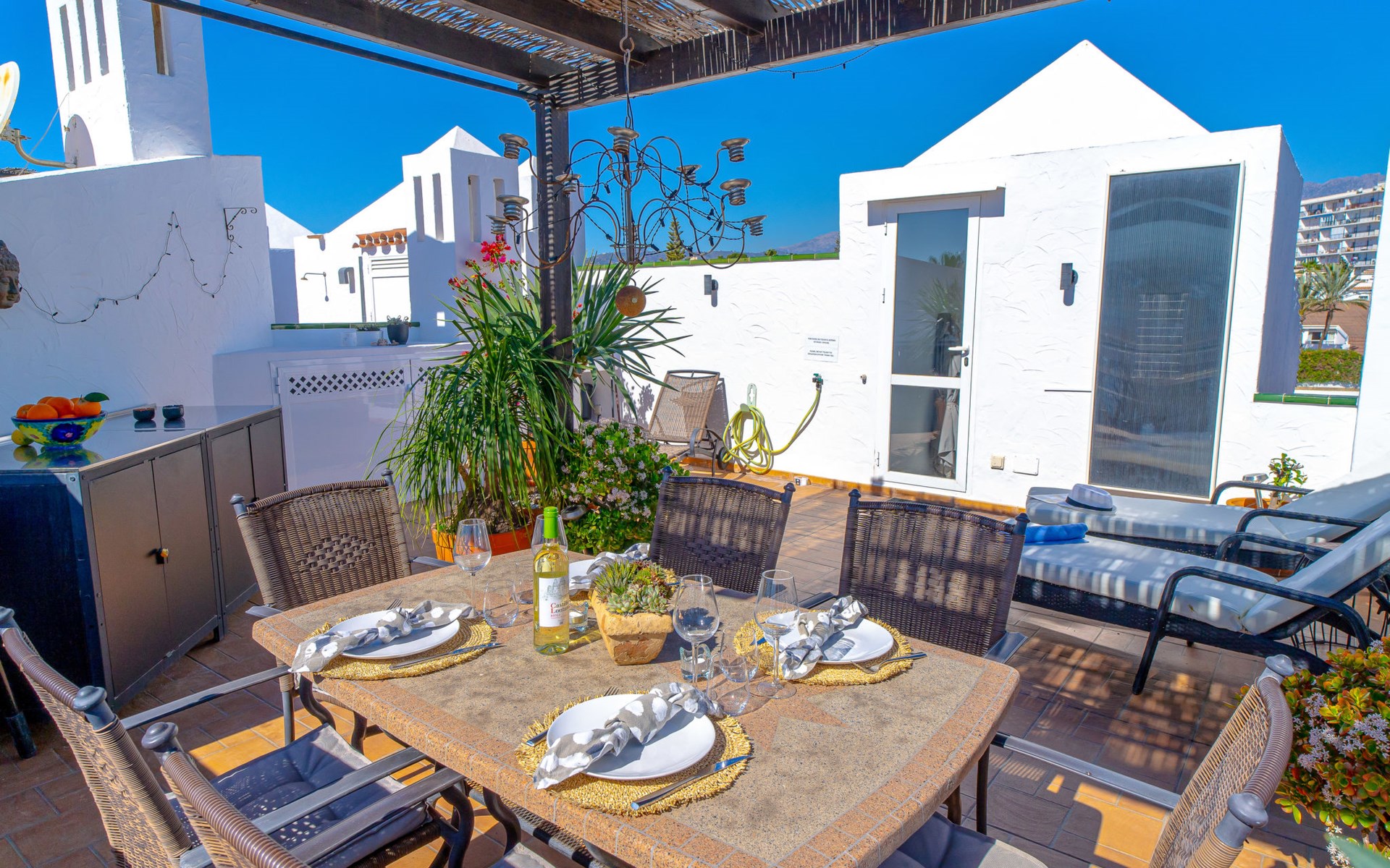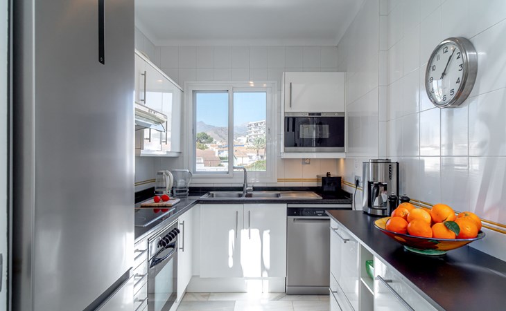 Nerja: Flatgebouw "Casa Magni in Parador Hotel area". Centrale, rustige ligging, van zee, 100 m van het strand. Voor medegebruik: openluchtzwembad niervormig (10 x 5 m, 100 - 175 cm diepte, seizoensgebonden beschikbaarheid: 01.Mrt. - 31.Dec.). Douche/WC bij het zwembad. Winkel 50 m, supermarkt, winkelcentrum 23 km, restaurant 50 m, bar, bakkerij 50 m, café, voetgangersgebied 250 m, fietsverhuur 100 m, bushalte "Nerja" 1 km, station "Málaga" 52 km, veerboot "Málaga" 52 km, zandstrand "Burriana" 100 m, duikschool 300 m. Jachthaven 17 km, jachthaven 17 km, golfterrein (18 holes) 23 km, surfschool 45 km, zeilschool 17 km, tennis 1.5 km. Attracties in de buurt: Frigiliana, La Herradura, Malaga, Competa, Maro, Almuñecar. Bekende skigebieden kunnen gemakkelijk worden bereikt: Sierra Nevada. Wandelgebied Sierra Almijara, Sierra Tejeda. Geen lift. De eigenaar accepteert geen jeugdgroepen. Laden en lossen van de baggage is mogelijk bij het huis.