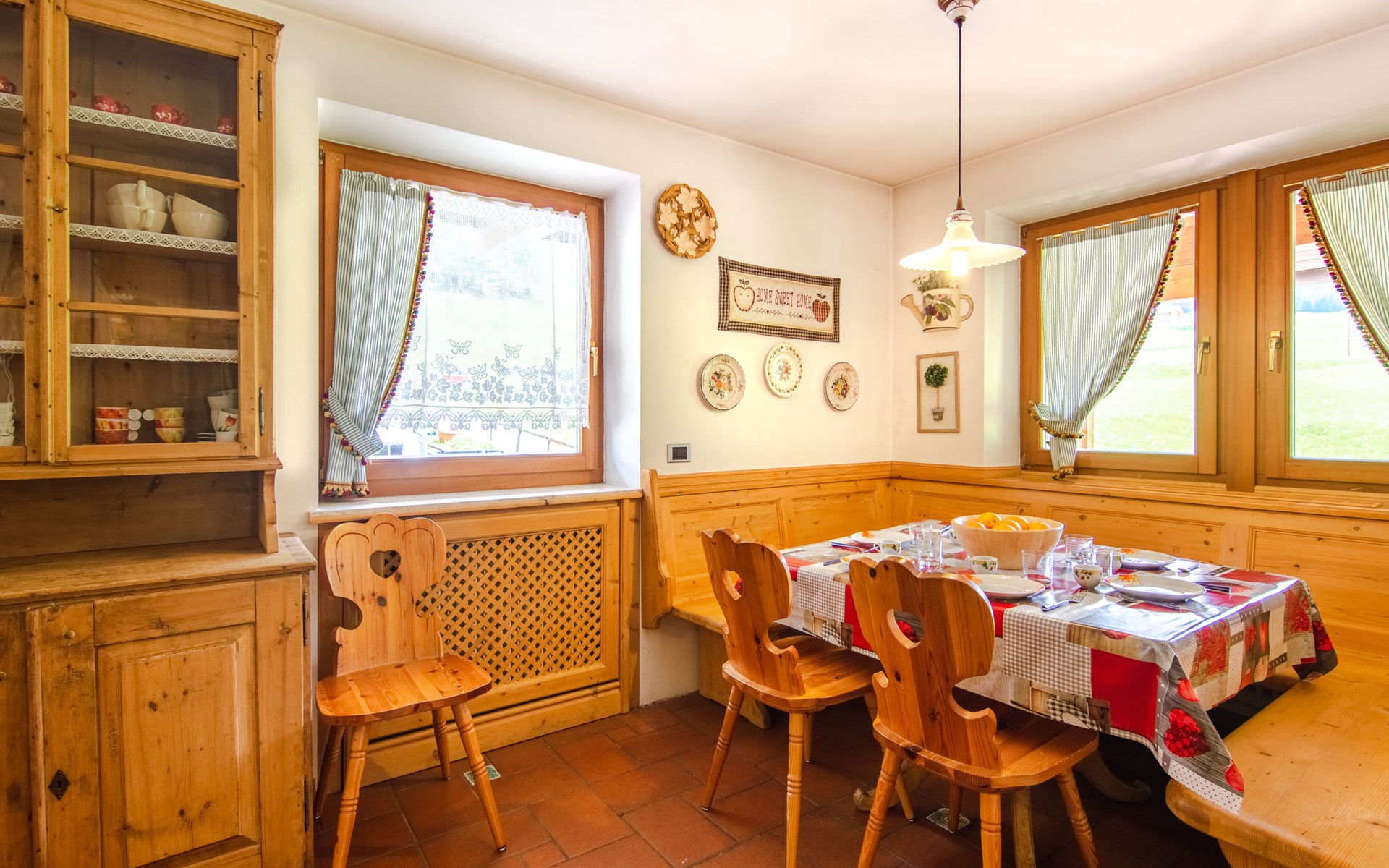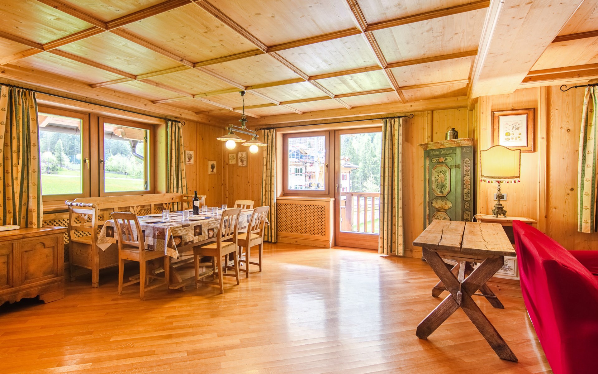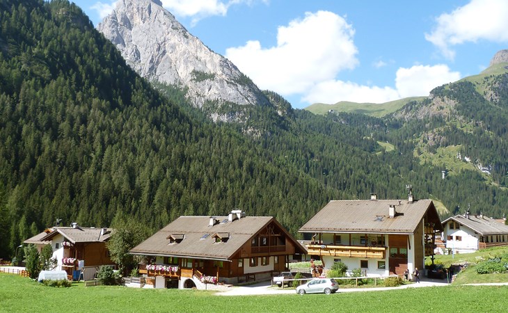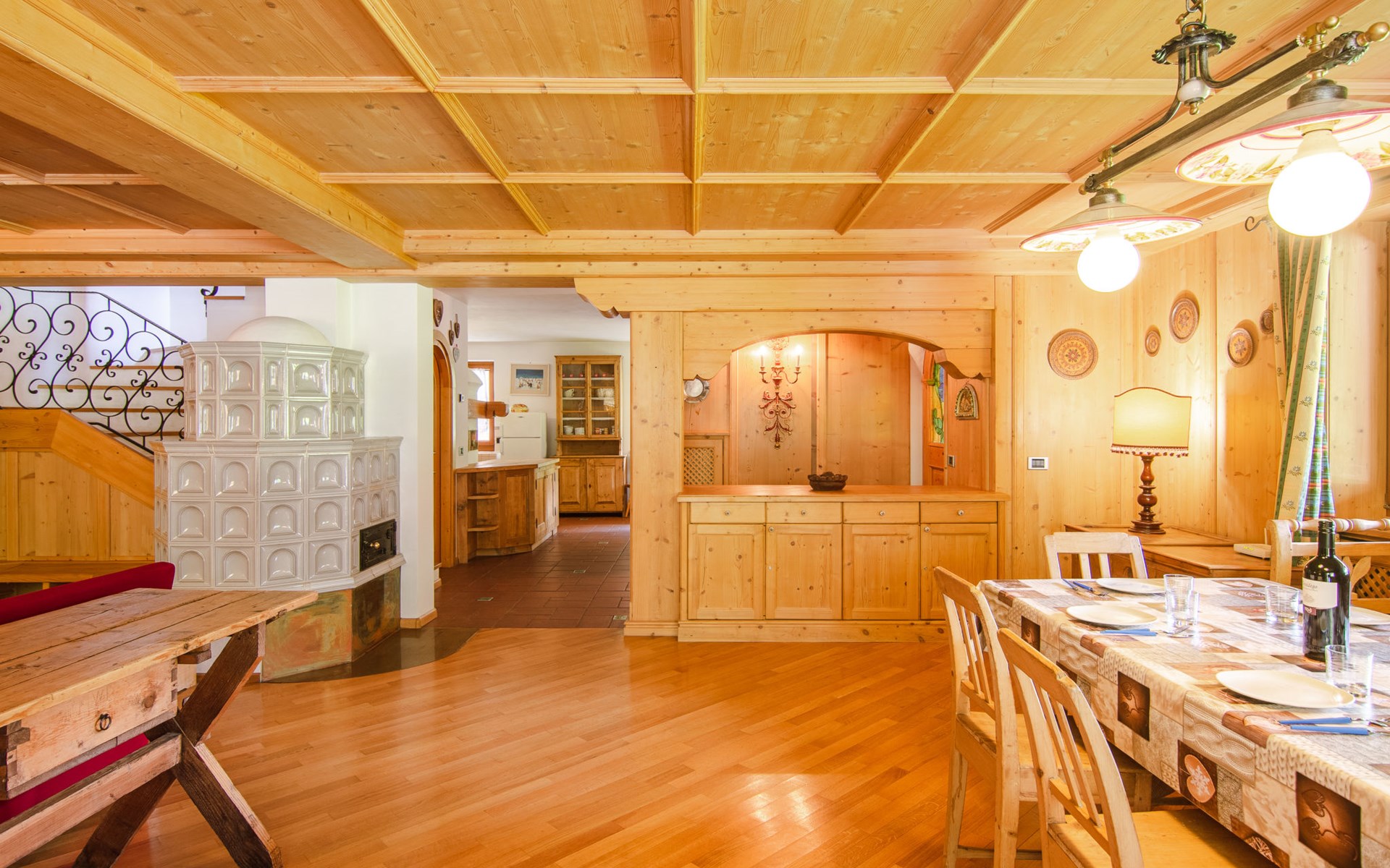 Penia 3 km van Canazei: Kindvriendelijk, comfortabel chalet "Cesa Galadriel", 1.555 m boven zeeniveau, van 2 verdiepingen. 3 appartementen in de woning. In het gehucht Penia, 1.5 km van het centrum van Alba, 3.5 km van het centrum van Canazei, rustige ligging, 1 km van het skigebied, op het zuidwesten. In het huis: centrale verwarming, verwarming alleen beschikbaar van 01.Dec. - 01.Mei.. Parkeerplaats (beperkt aantal) op het terrein, openbare parkeerplaatsen 500 m in de straat. Winkel 300 m, levensmiddelenwinkel 100 m, restaurant, bushalte 100 m. Bergtrein 1 km. Auto noodzakelijk. Bij goede skicondities is het huis bereikbaar per ski.