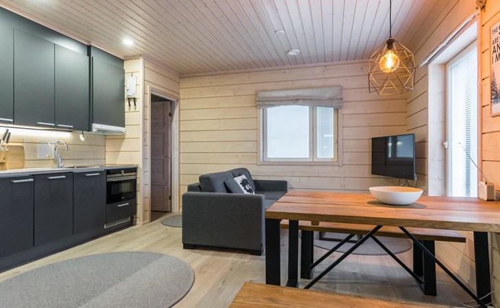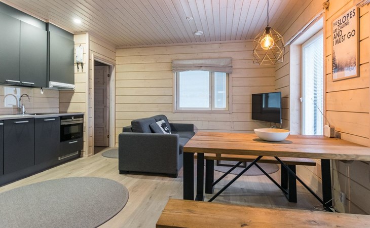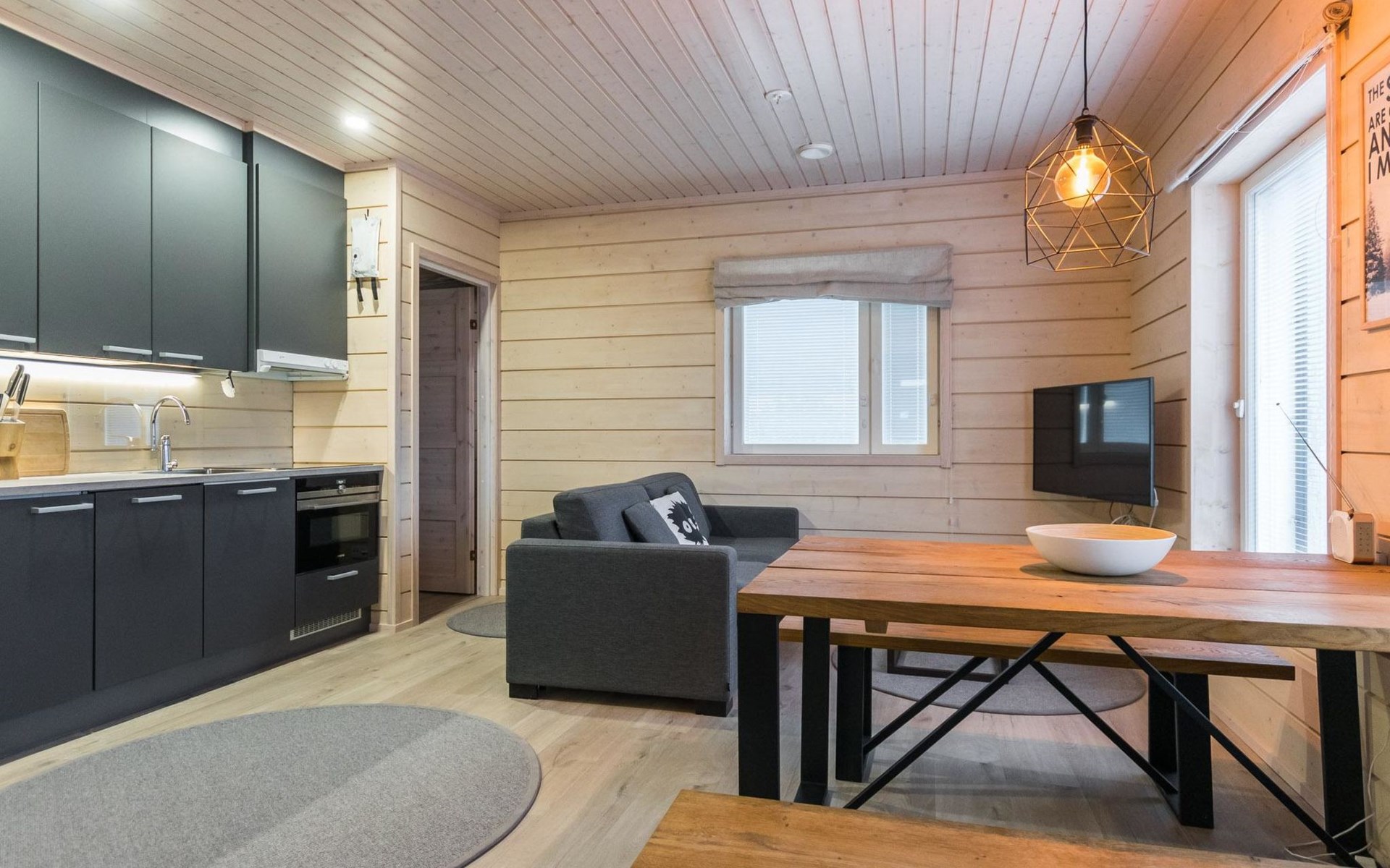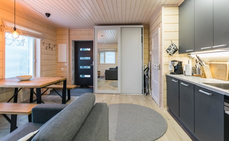 Cabin is located in Pyhä ski resort and only short walk away from ski slopes. Apartment is on the hill and there is a beautiful view to the Lapland forest landscape. The apartment is connected to a bigger cabin, but it is it's own separate apartment, located in the garage building. There is a large cabin in same yard, but it's not including in the booking.