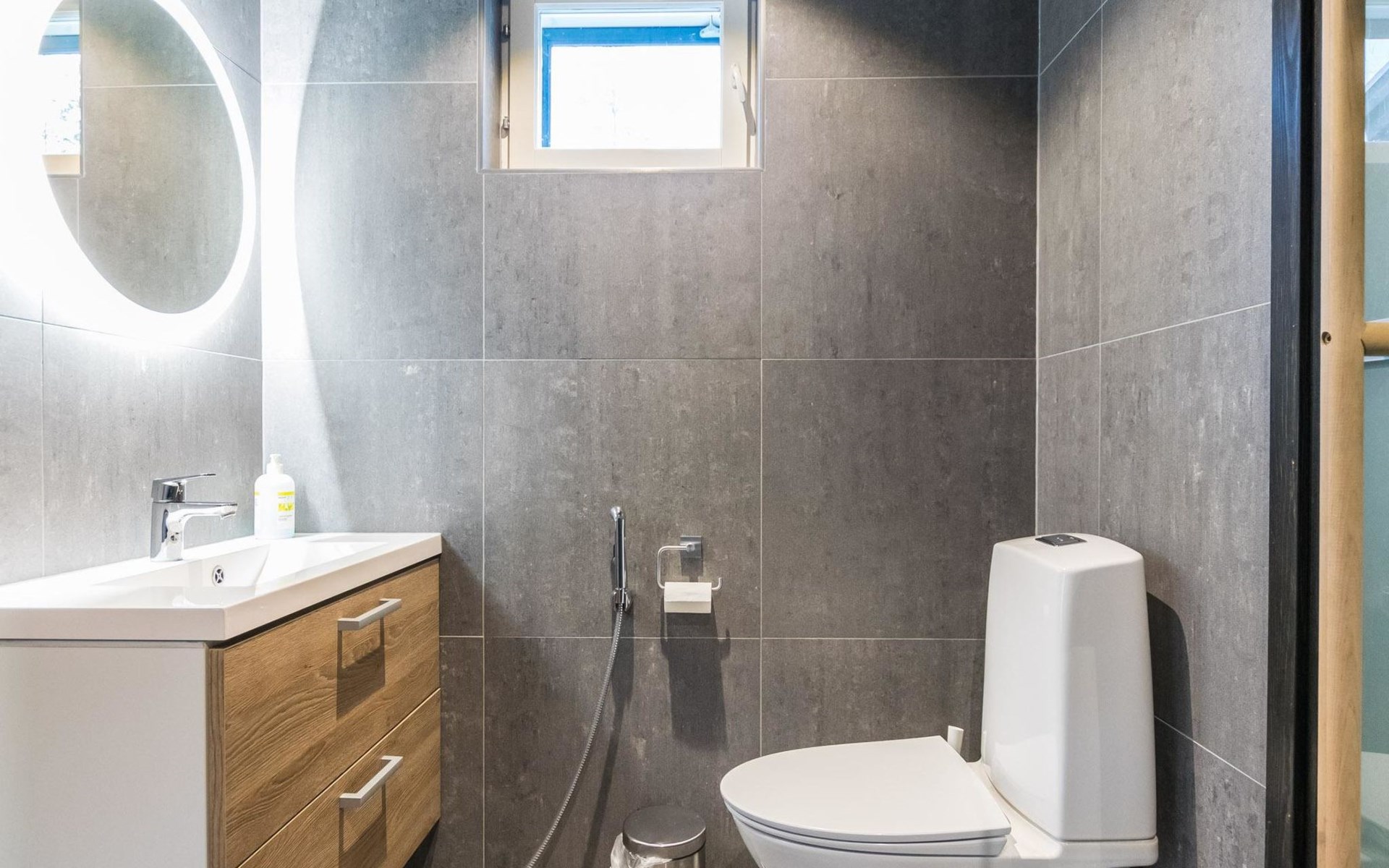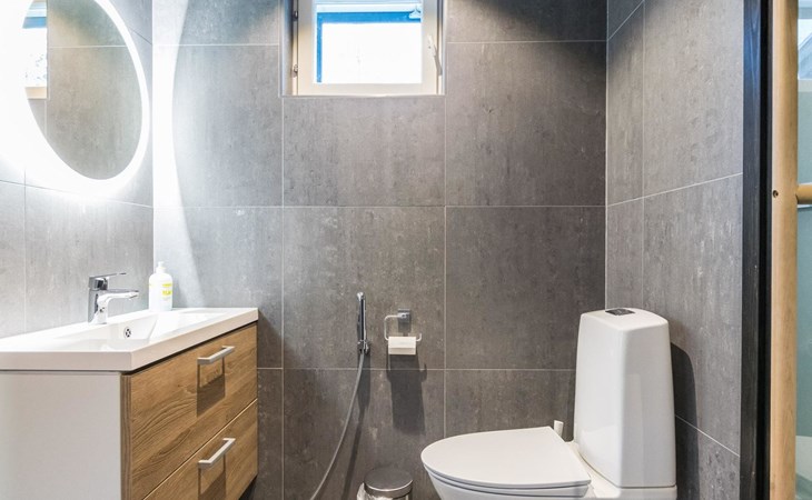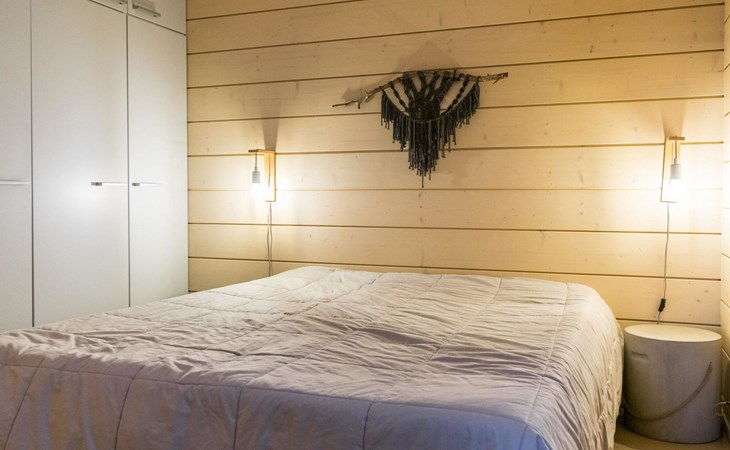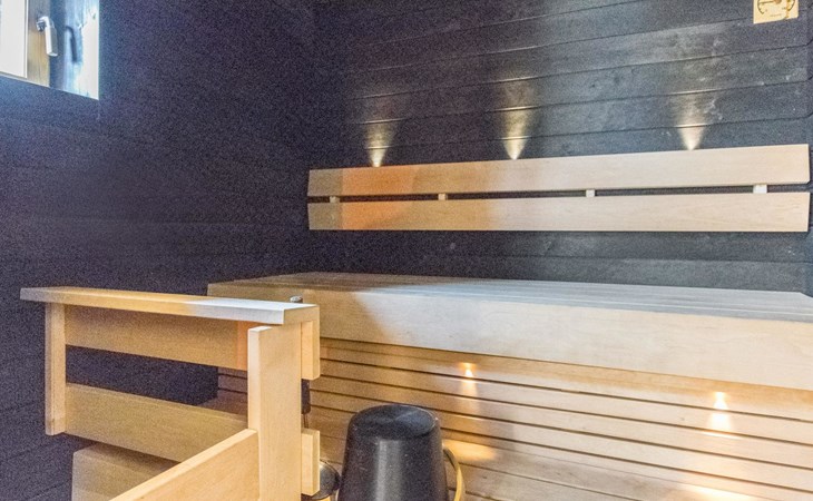 There is a kitchen, bedroom with a 160cm double bed, sofa-bed 140cm wide, toilet, shower and sauna. One garage parking space included.