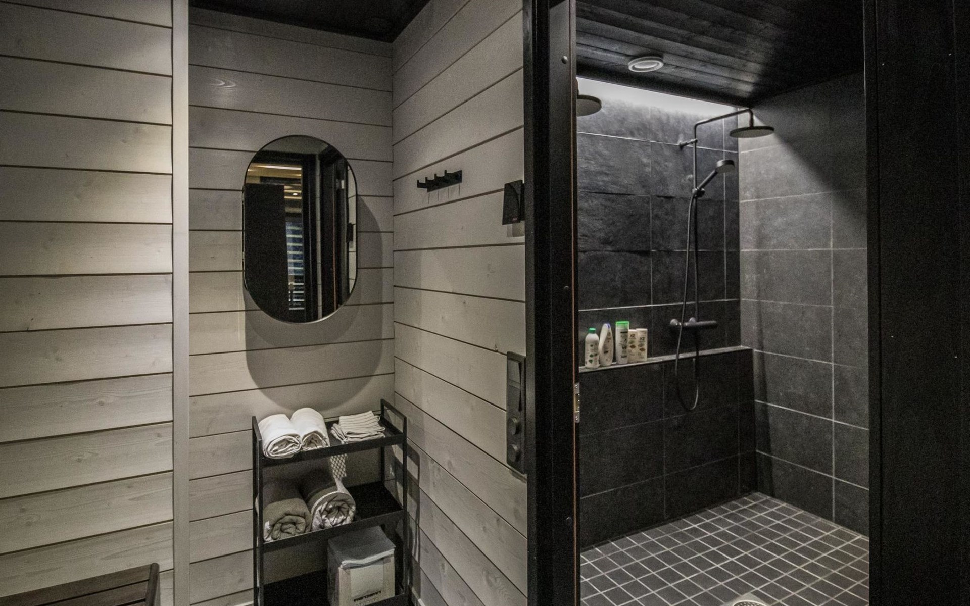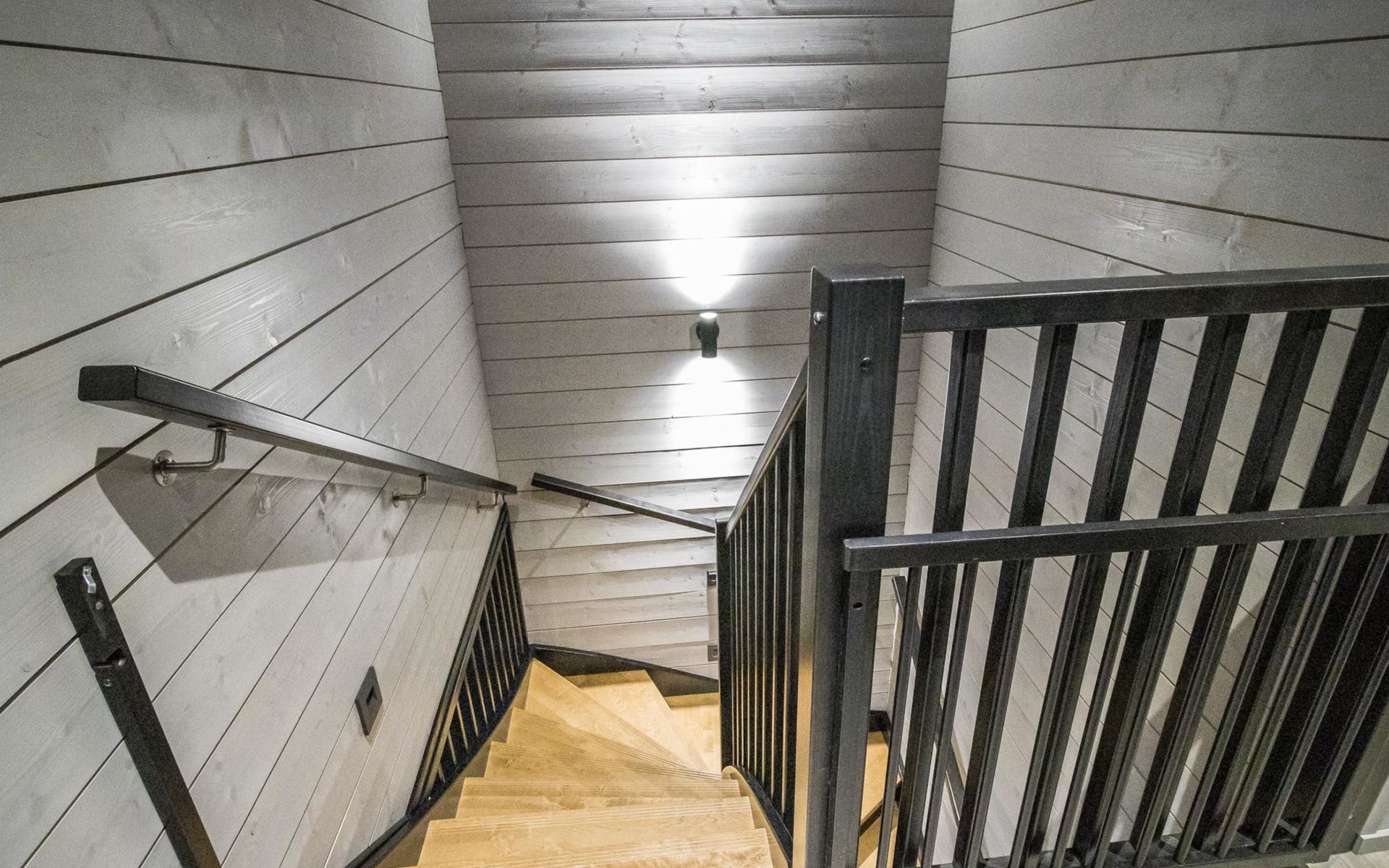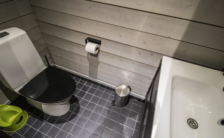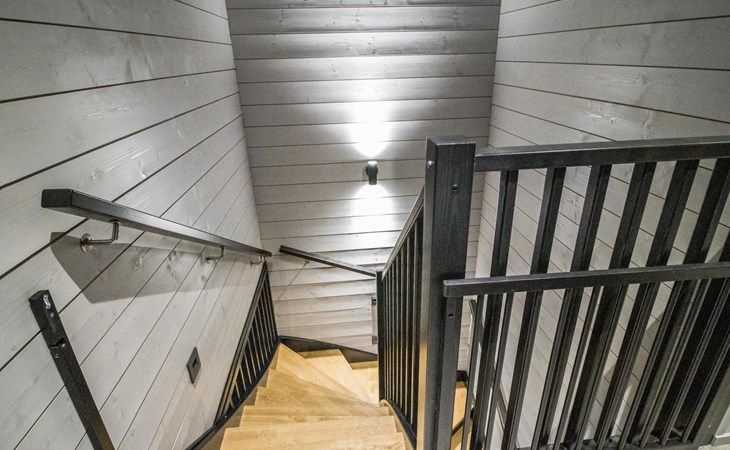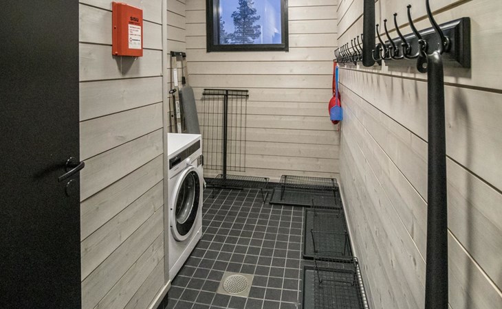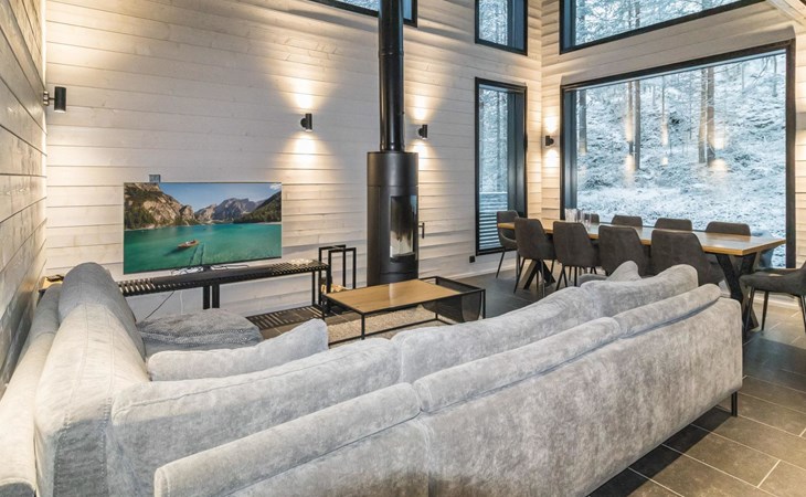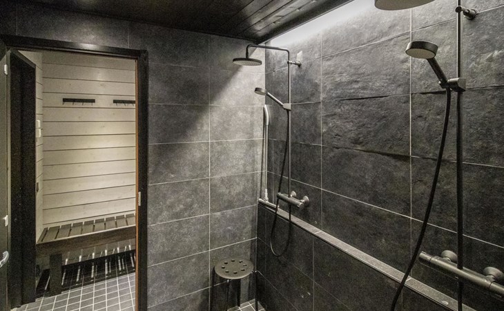 Large living room/kitchen with fireplace. 4 bedrooms, three of them have two box spring beds and the fourth has three box spring beds. Space for 9 people. The third bedroom has two additional beds suitable for children. The extra beds are pulled out from under the box spring beds. 2 WCs, sauna, washroom with two showers and dressing room. Large room for drying and storing clothes and sport equipment. Large 3 0m² terrace with terrace furniture. Air source heat pumps in both floors.
