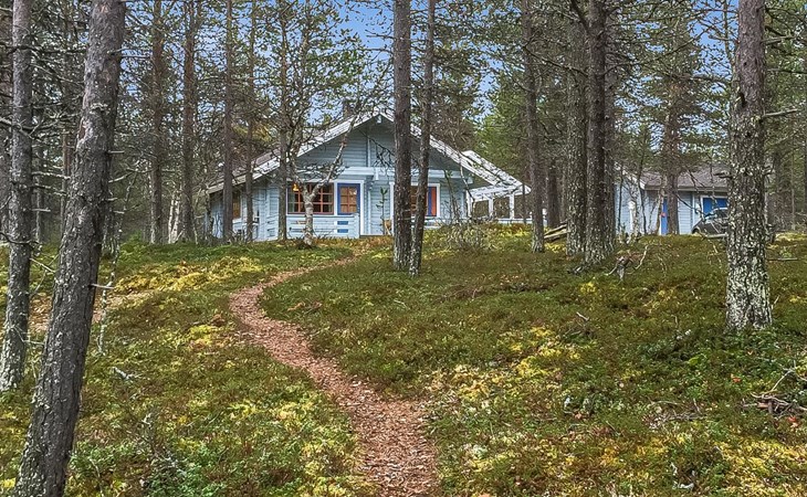 The airport bus stop is 1.6 km away (using the pedestrian bridge, the distance is shorter), Saariselkä tourist center 12 km, Kiilopää 7.5 km. Illuminated ski trail 200 m (access to Kiilopää and Saariselkä -trails). Distance to the border of the Urho Kekkonen National Park is 6 km, hiking trails nearby.