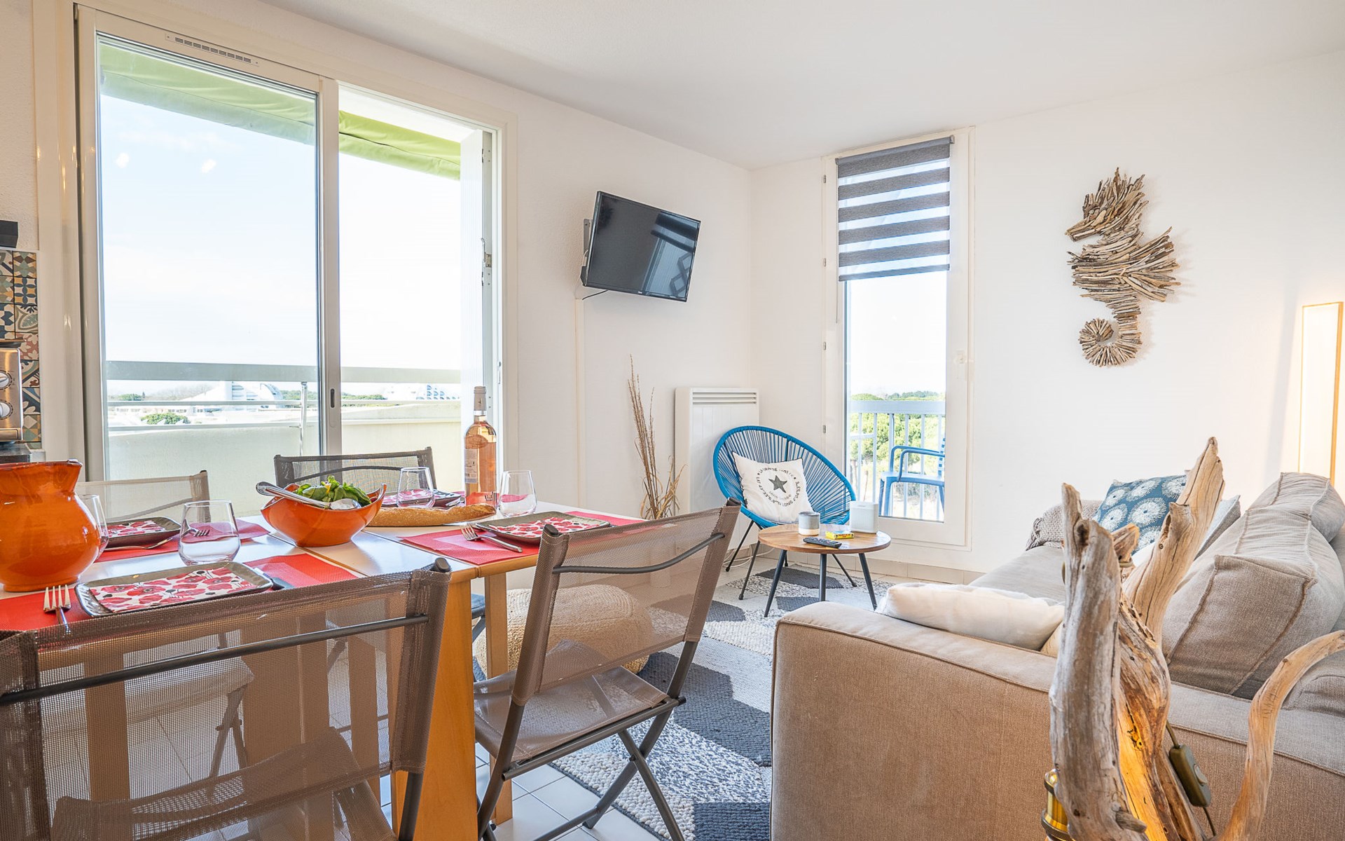 Residentie "Bali", van 7 verdiepingen. In de wijk La Motte du Couchant, 350 m van zee. In het complex: lift. Parkeerplaats. Bakkerij 150 m, bushalte 150 m, station "Montpellier" 25 km, zandstrand 300 m, park "public" 20 m, overdekt zwembad 3.4 km, thermaalbad "Thalasso Spa" 3.7 km. Jachthaven 1.4 km, golfterrein (18 holes) 3.5 km, zeilschool 1.3 km, tennis 3.4 km, manege 1.6 km, kinderspeelplaats 20 m. Attracties in de buurt: Le Seaquarium du Grau Du Roi 10 km, Les Remparts d'Aigues Mortes 12 km, Les Saintes Maries de la Mer 40 km.